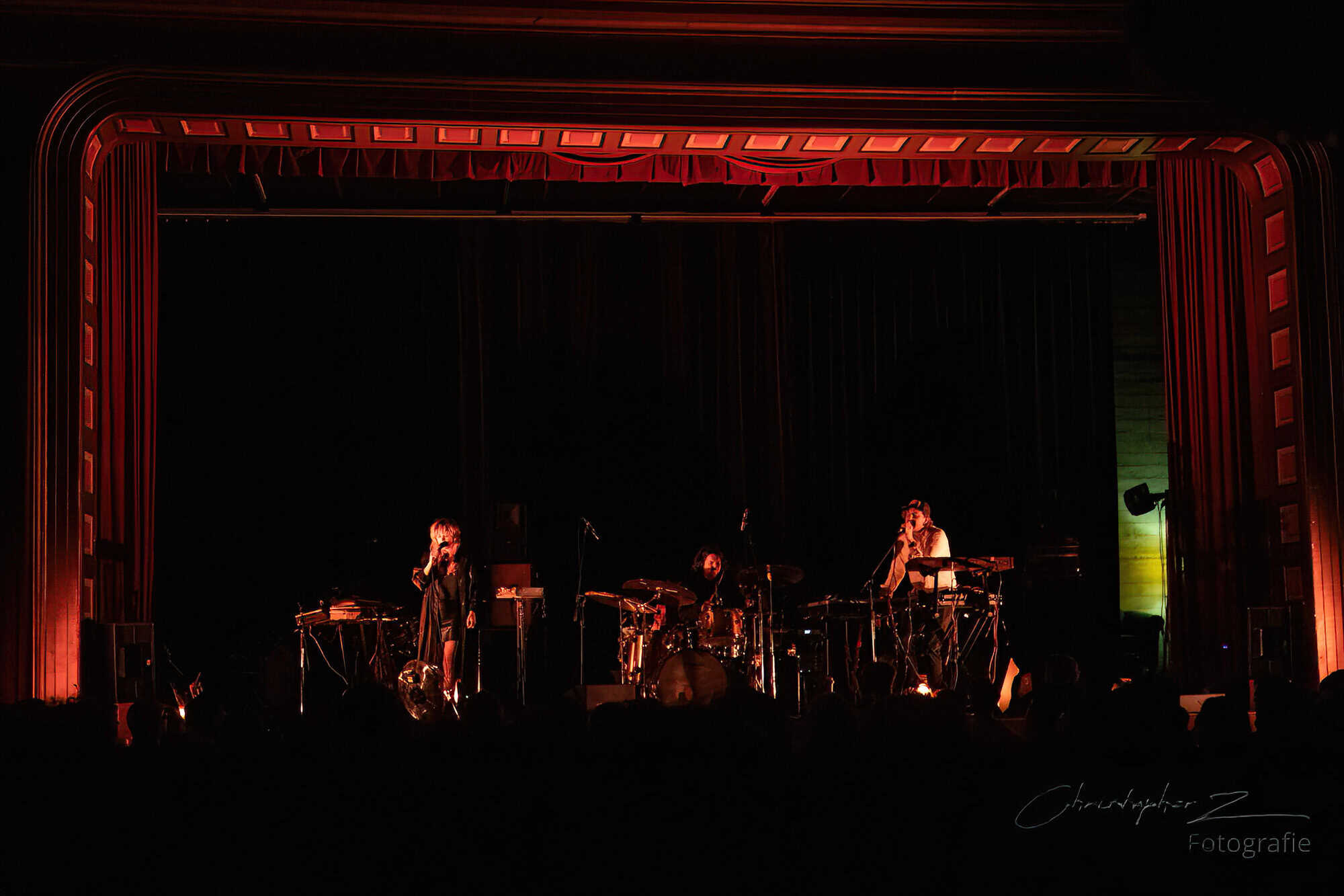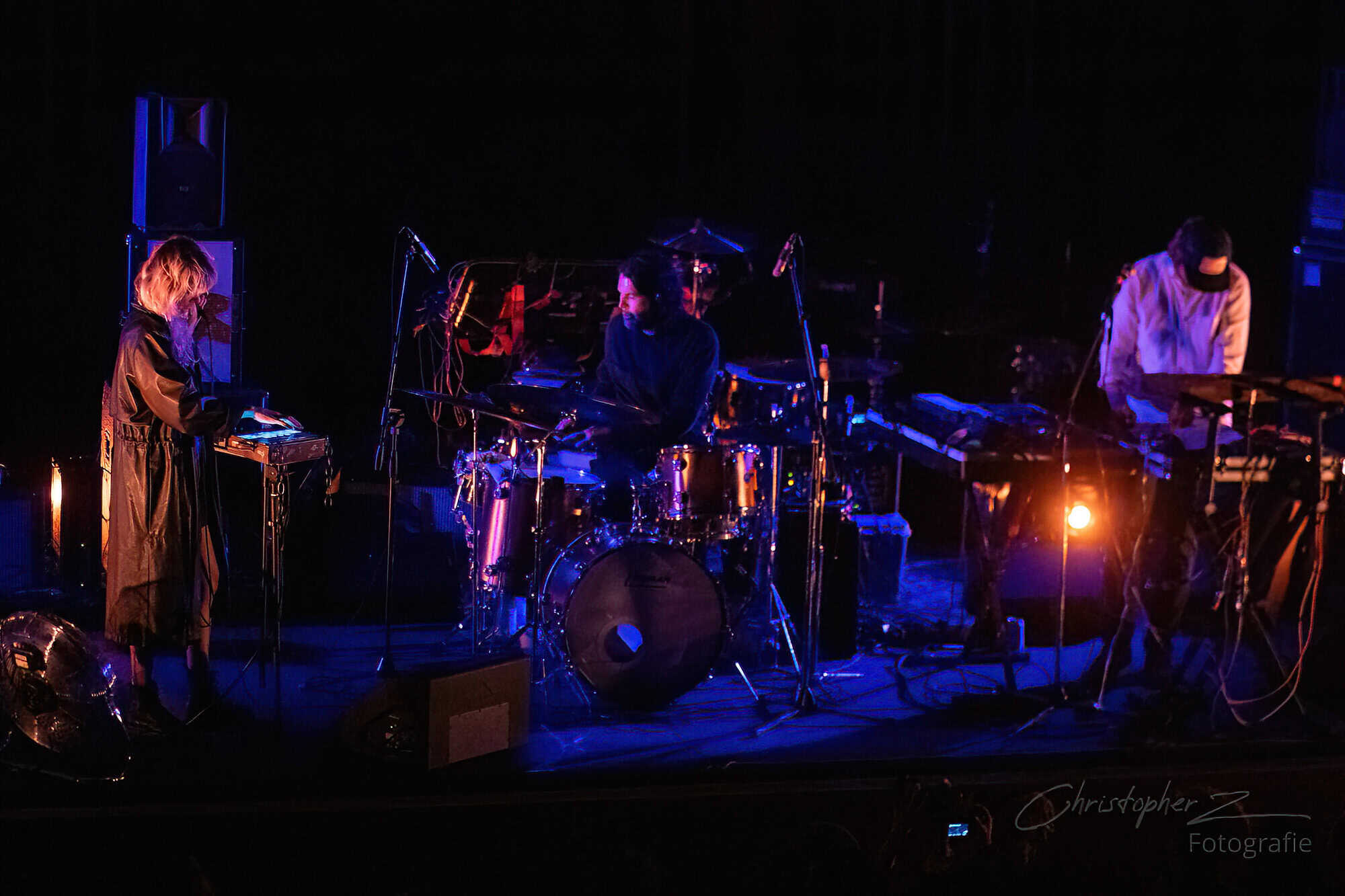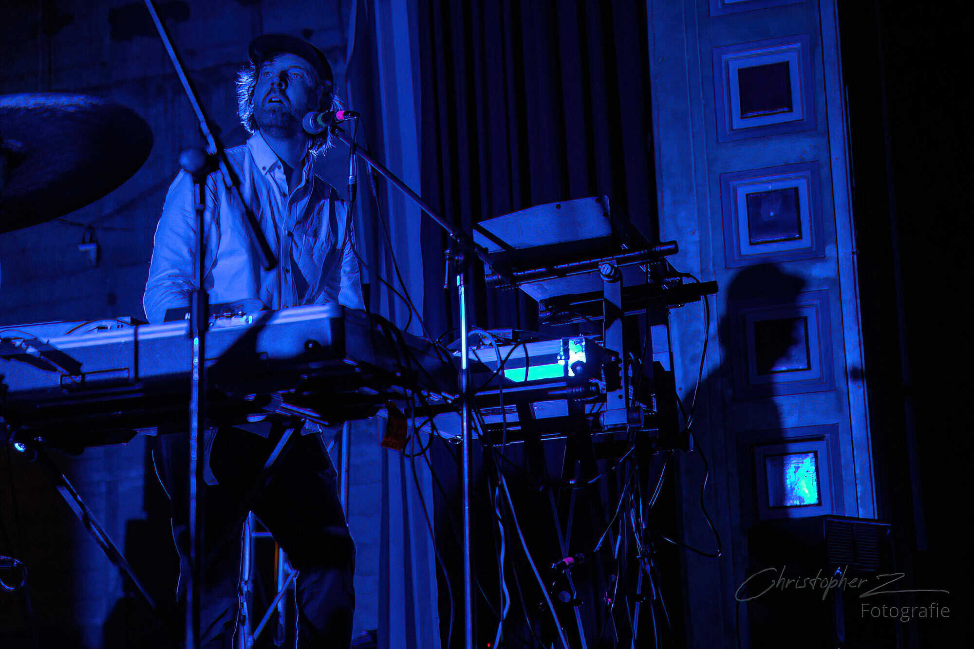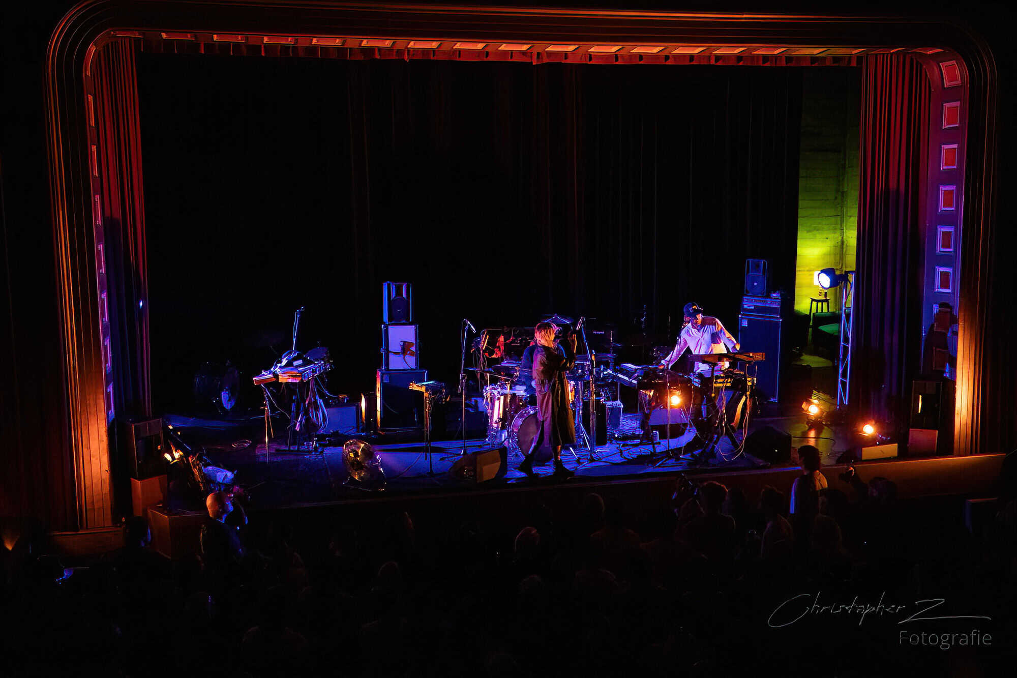 Half-Hexagon have two Bandcamp EPs out (the latest dropped about a week ago), polished, unblemished, perfected. live, this evening, realism adds elements of error and ornament. In a filled room, a theatre of past glories, as the sun sets, Half-Hexagon are harsher, gloriously a little more dangerous. Like the Berlin club scene from Wim Wenders ‘Wings Of Desire’, there is fascination, fascination created as the trio synthesised post-goth, krautrock, and synthed electronic beats, and the people danced.