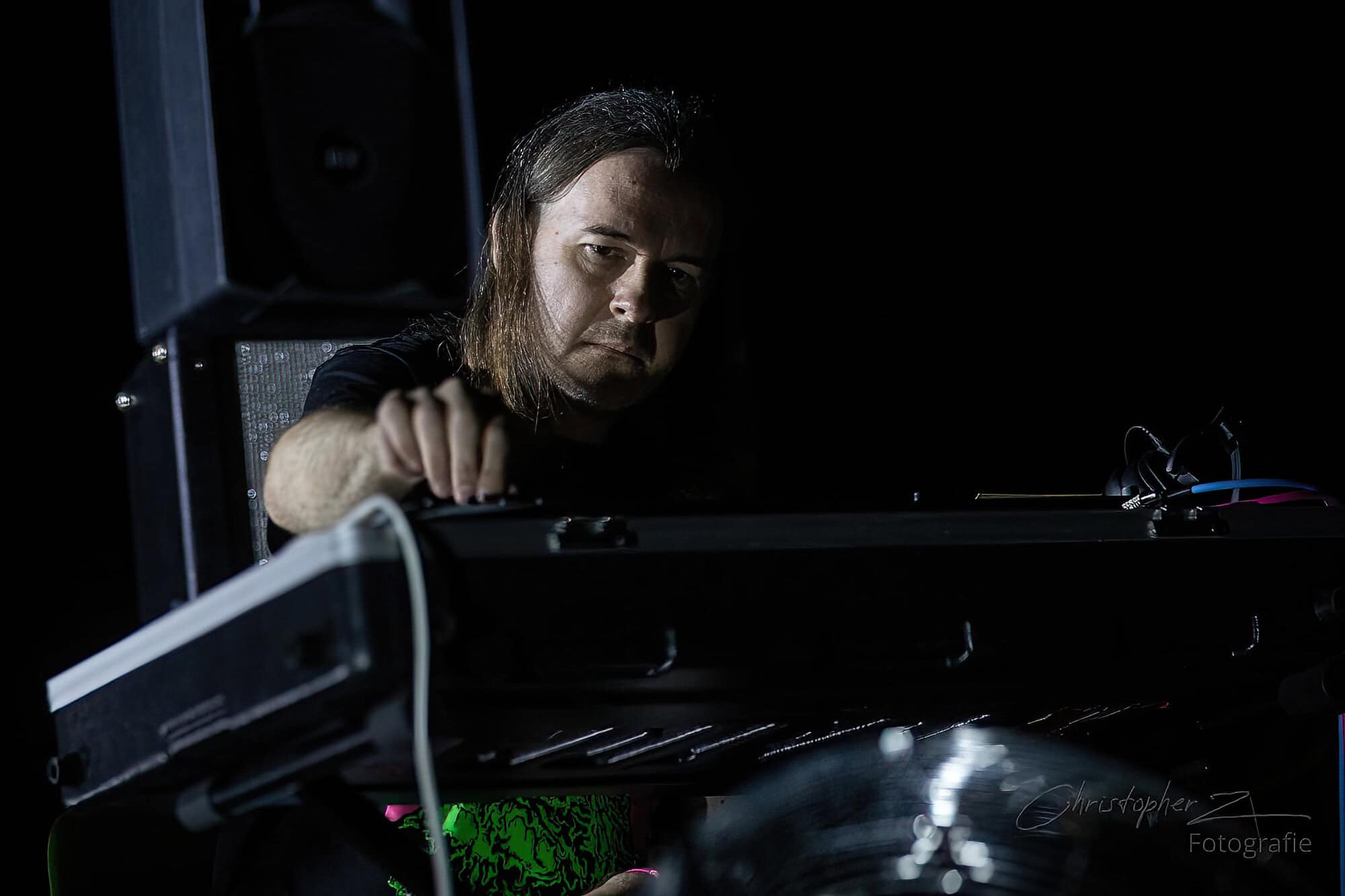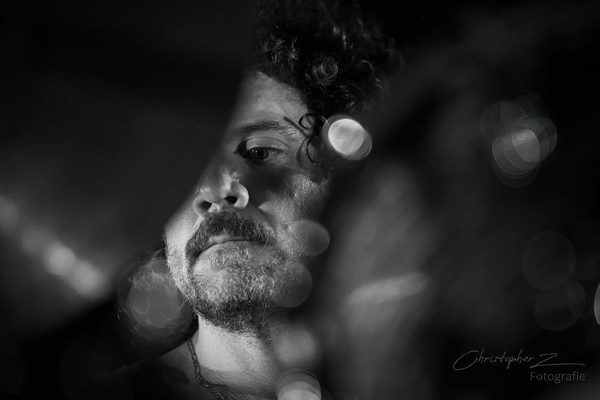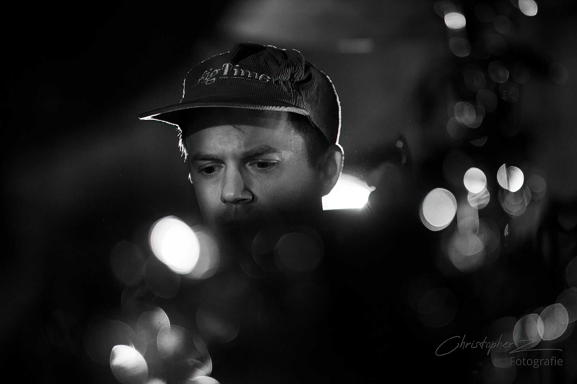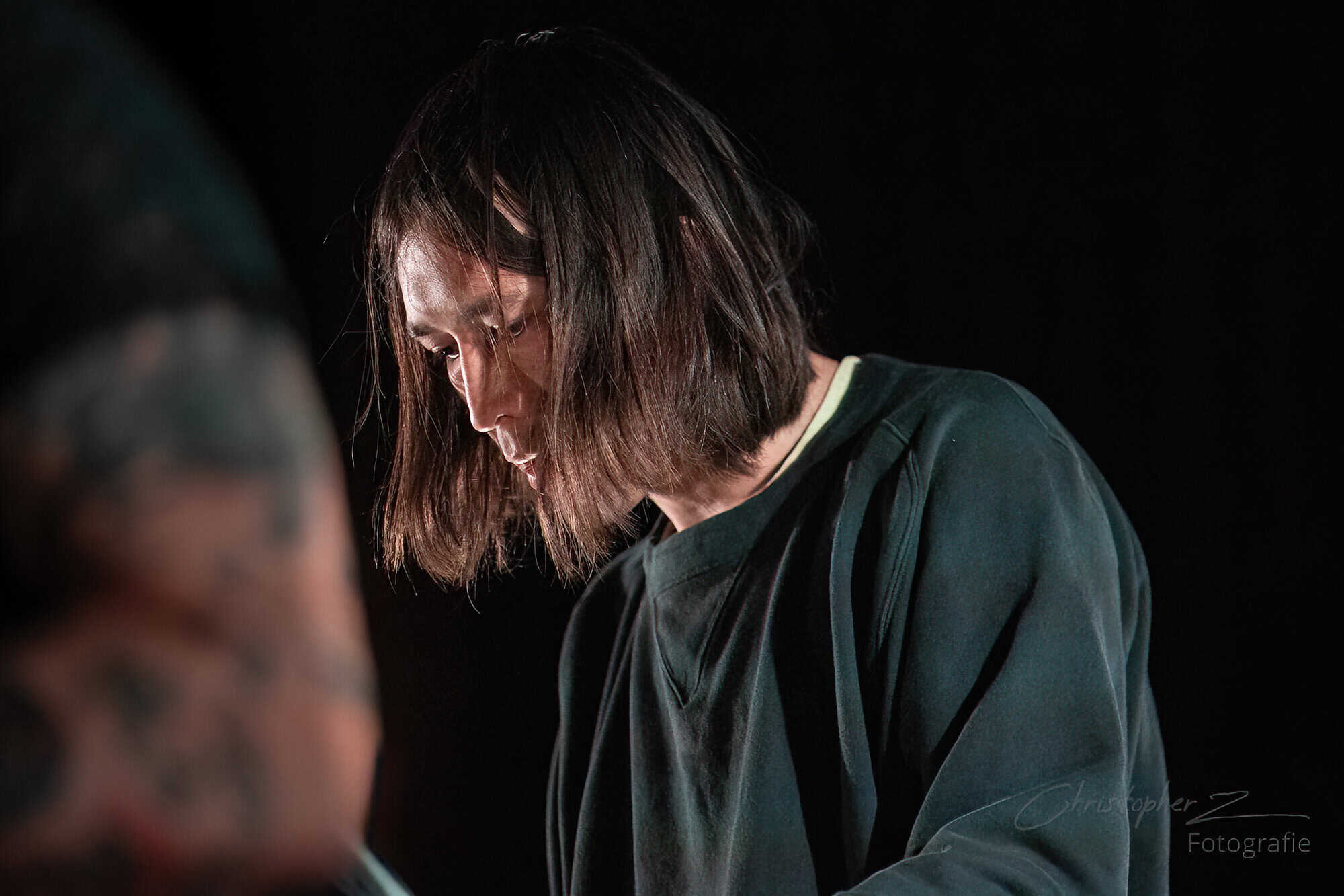 Is one person, Kraus, Pat Kraus or Prince Krauss, (he/Him) who claims that he makes music for freaks, outsiders, losers and weirdos. Kraus performs not just as himself, but also in a multitude of bands that inhabit the fringes of art. Tonight he sits alone, with a table of trinkets (some home crafted) creating an eclectic neo-electronica composites some of which may or may not feature in his 20+ releases. Kraus quietly offers a soundtrack for a filling room, for those in anticipation, via hypnotic rhythms, constructed sounds and ambient electronica. You could try and dance to Kraus’s mahi, but your outer inhibitions might override your inner circadian flamboyants.