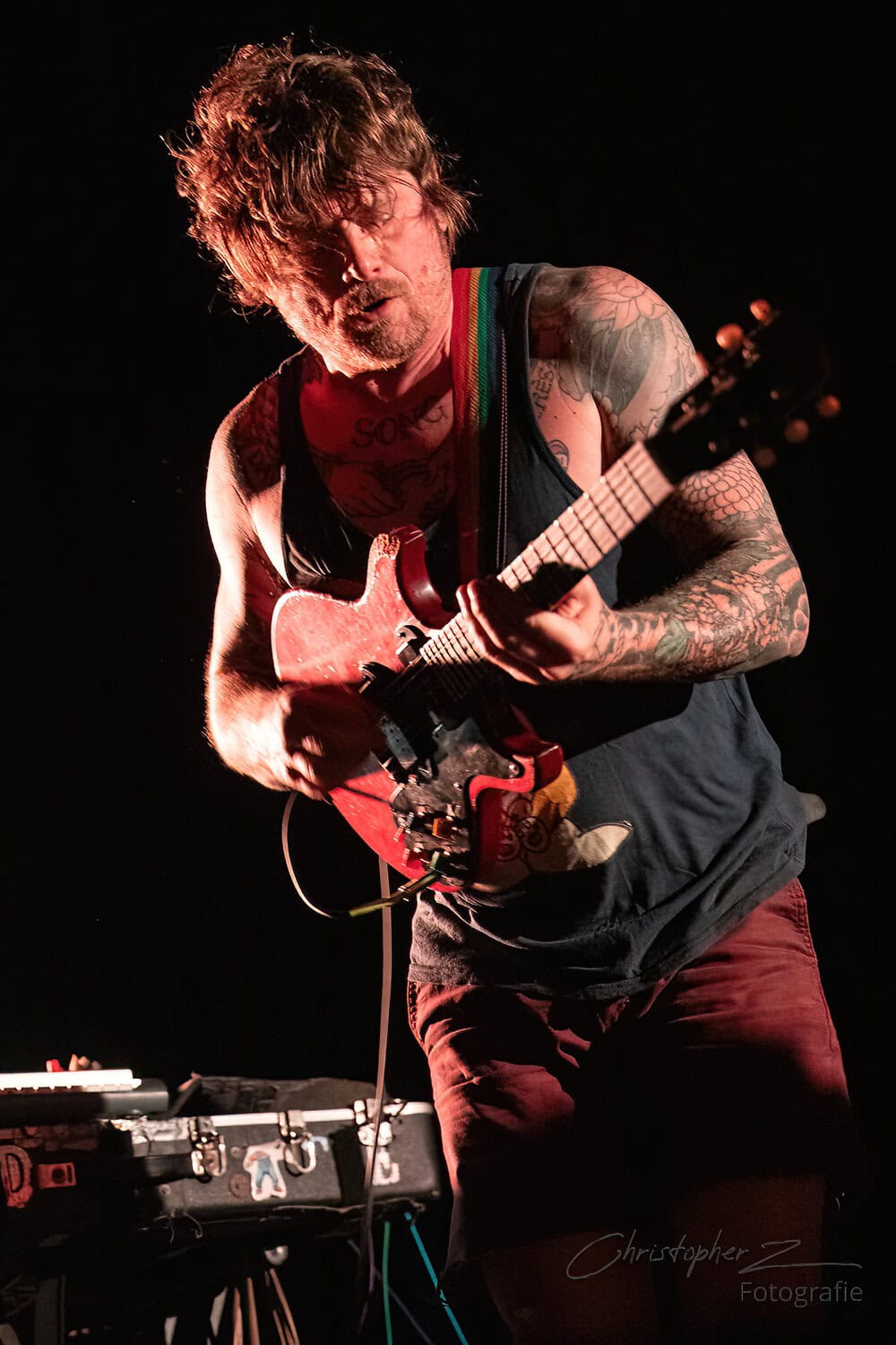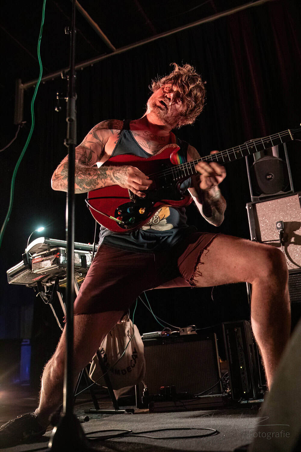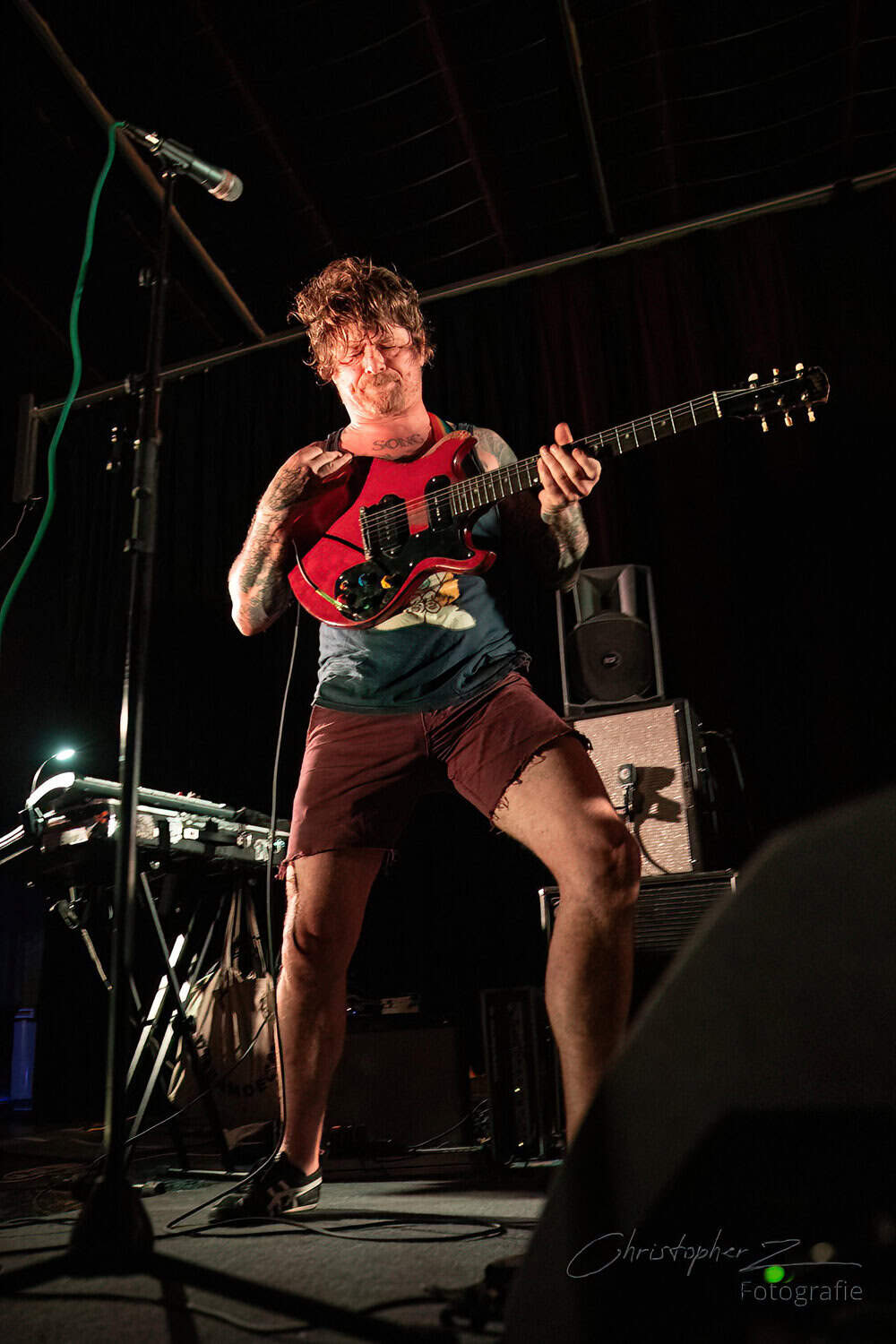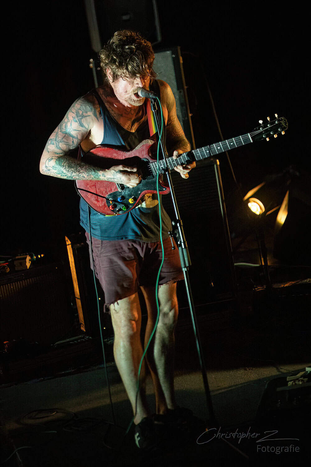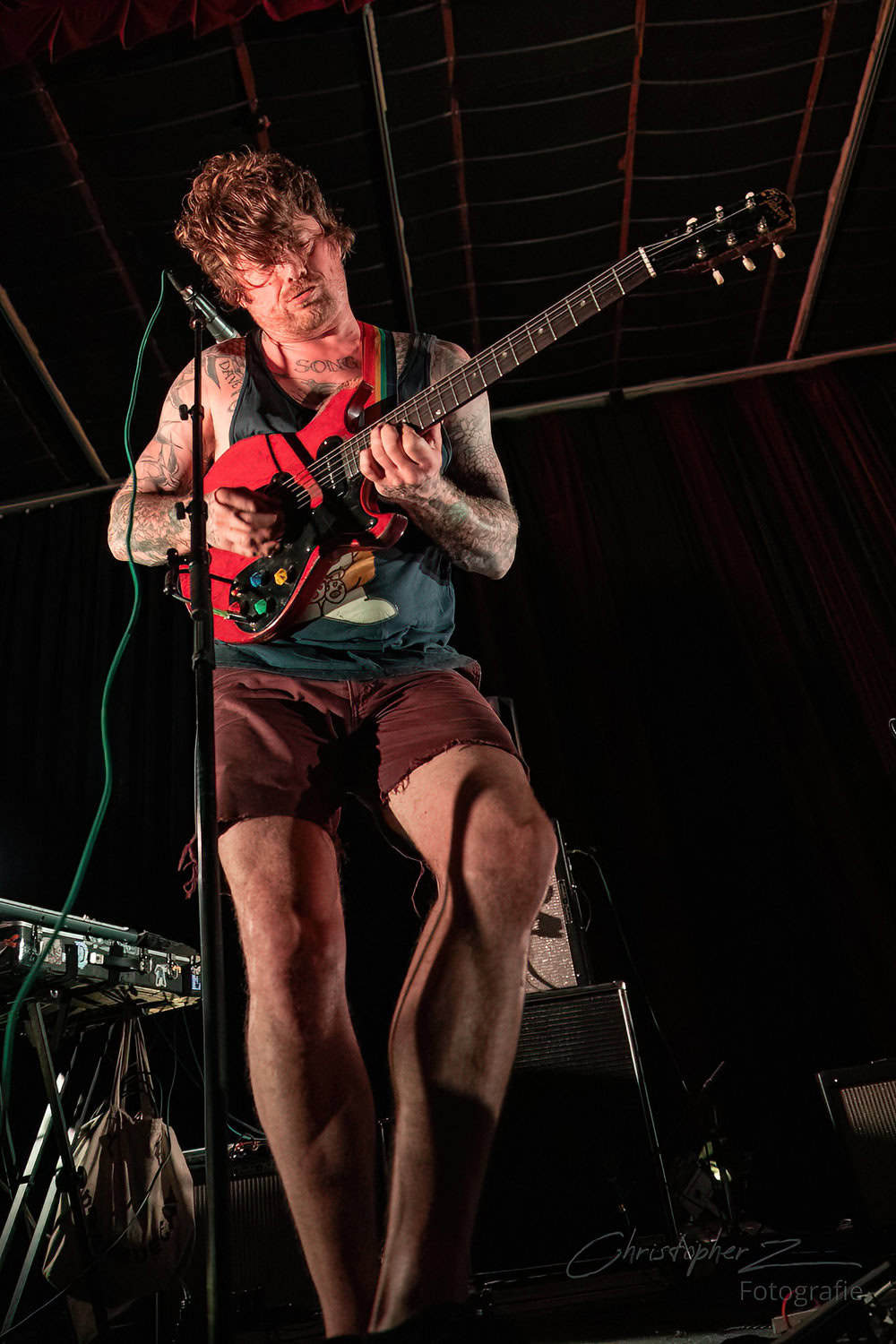 A trip that seems to never-end, as Dwyer goes off stage and brings beers back, carefully placing them by his bandmates, he’s in this for the long hall. As psychedelia fades, the harshness of hardcore and eclecticism of experimental returns, Some songs work, others don’t, but we, the passengers don’t care (Sex Pistols reference) as no-one is wanting to get off the Osees Freedom Bus while the devil in a blue singlet, John Dwyer, is in the driving seat.