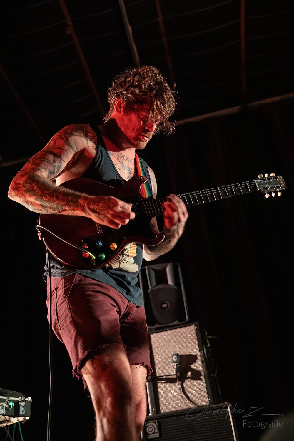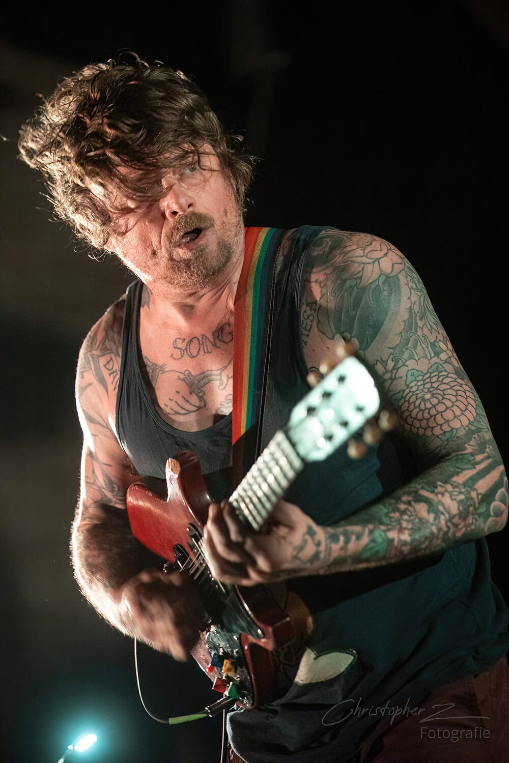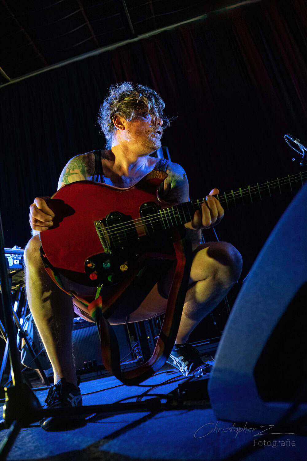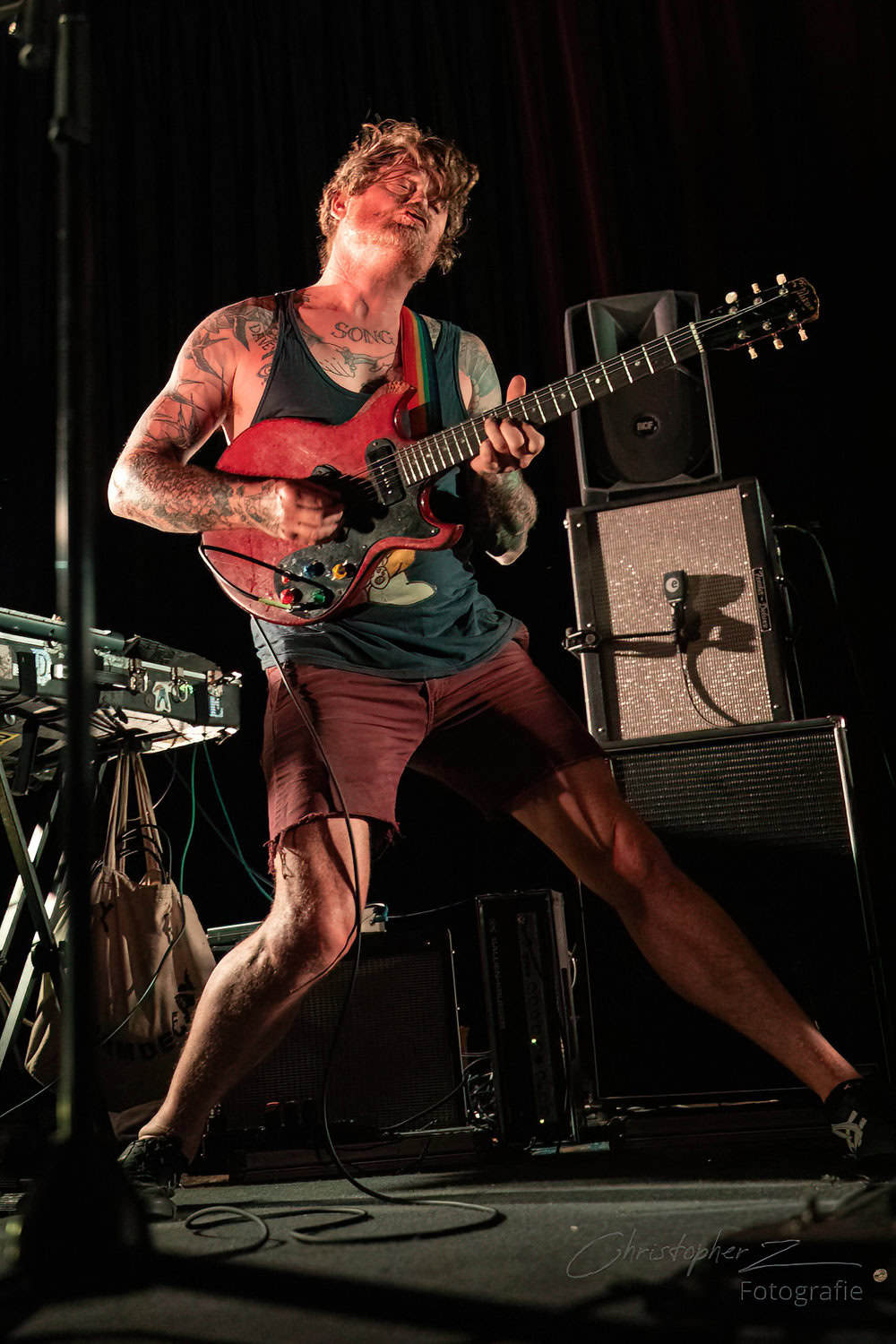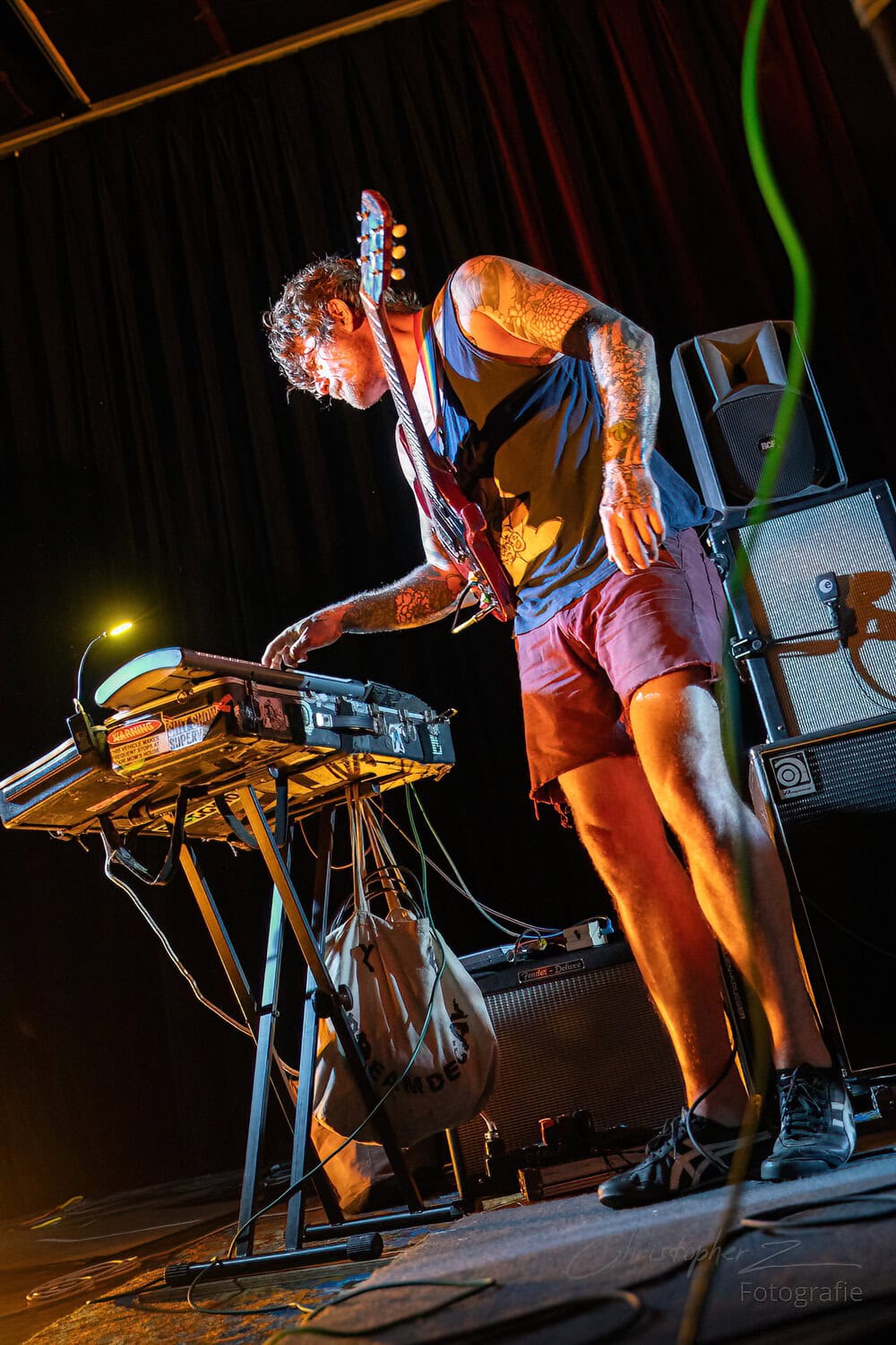A trip that seems to never-end, as Dwyer goes off stage and brings beers back, carefully placing them by his bandmates, he’s in this for the long hall. As psychedelia fades, the harshness of hardcore and eclecticism of experimental returns, Some songs work, others don’t, but we, the passengers don’t care (Sex Pistols reference) as no-one is wanting to get off the Osees Freedom Bus while the devil in a blue singlet, John Dwyer, is in the driving seat.
