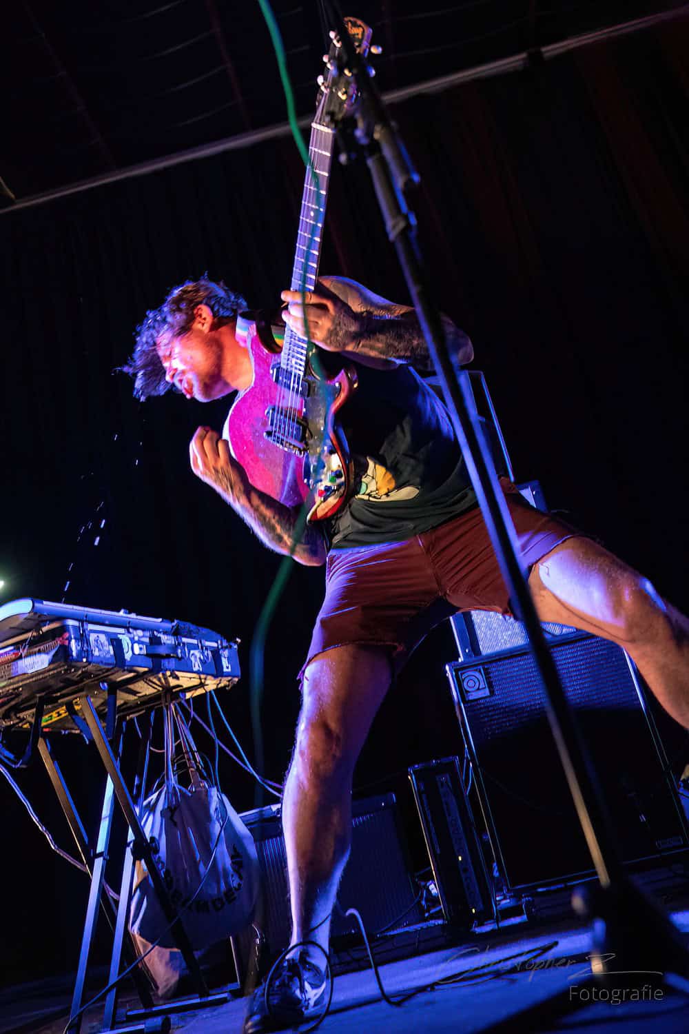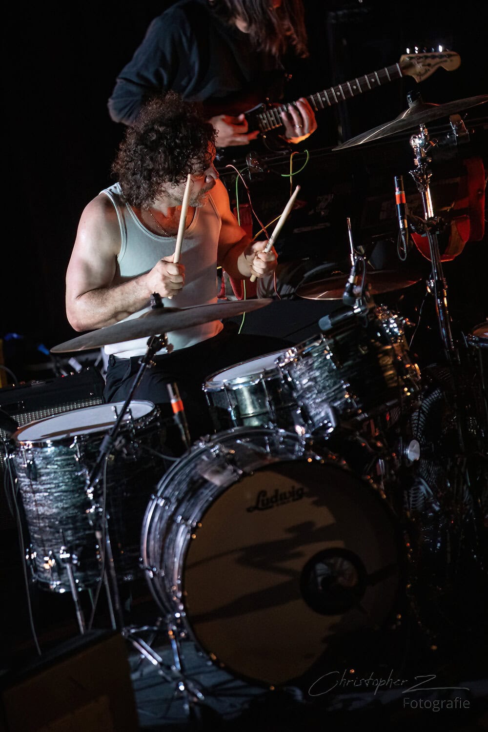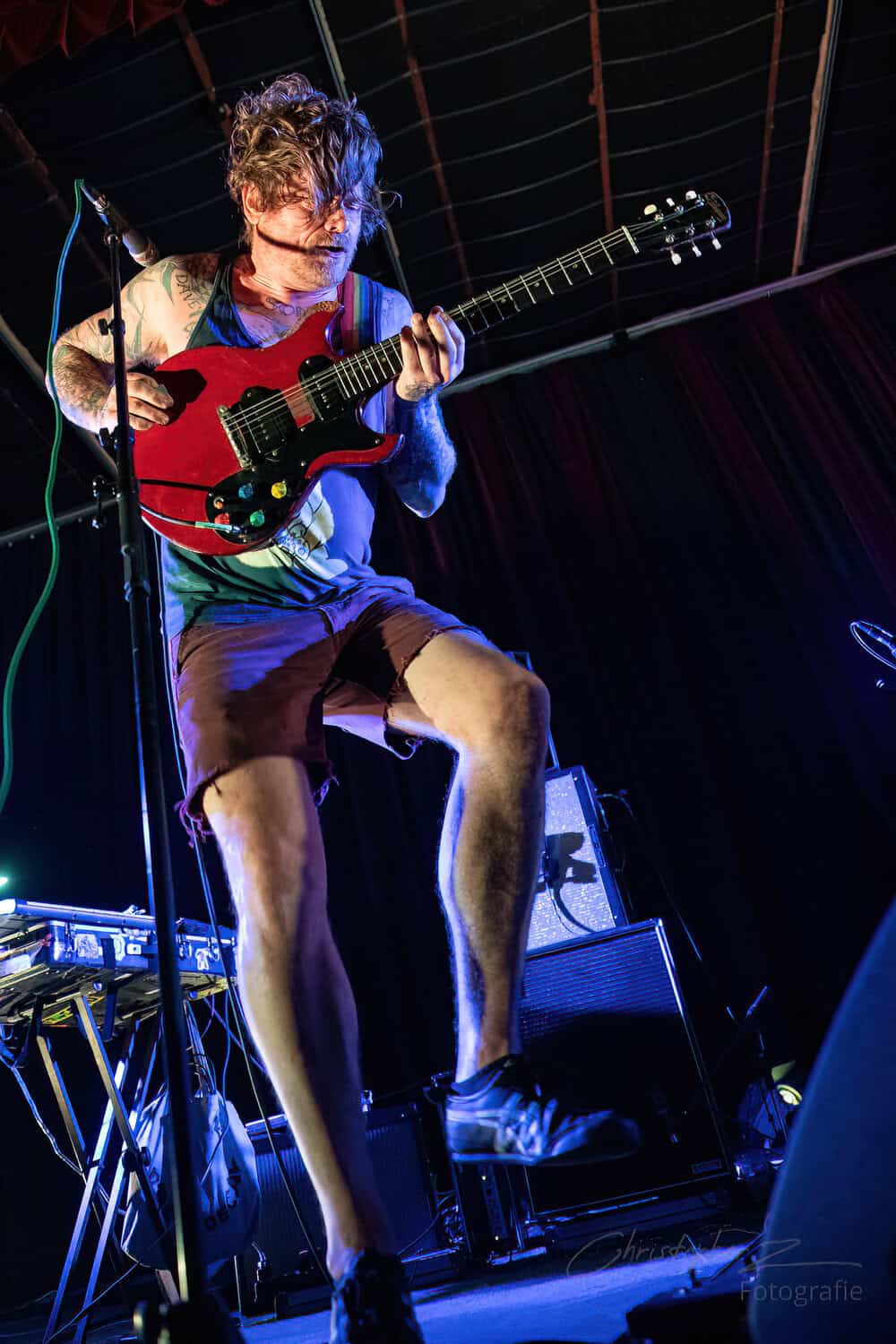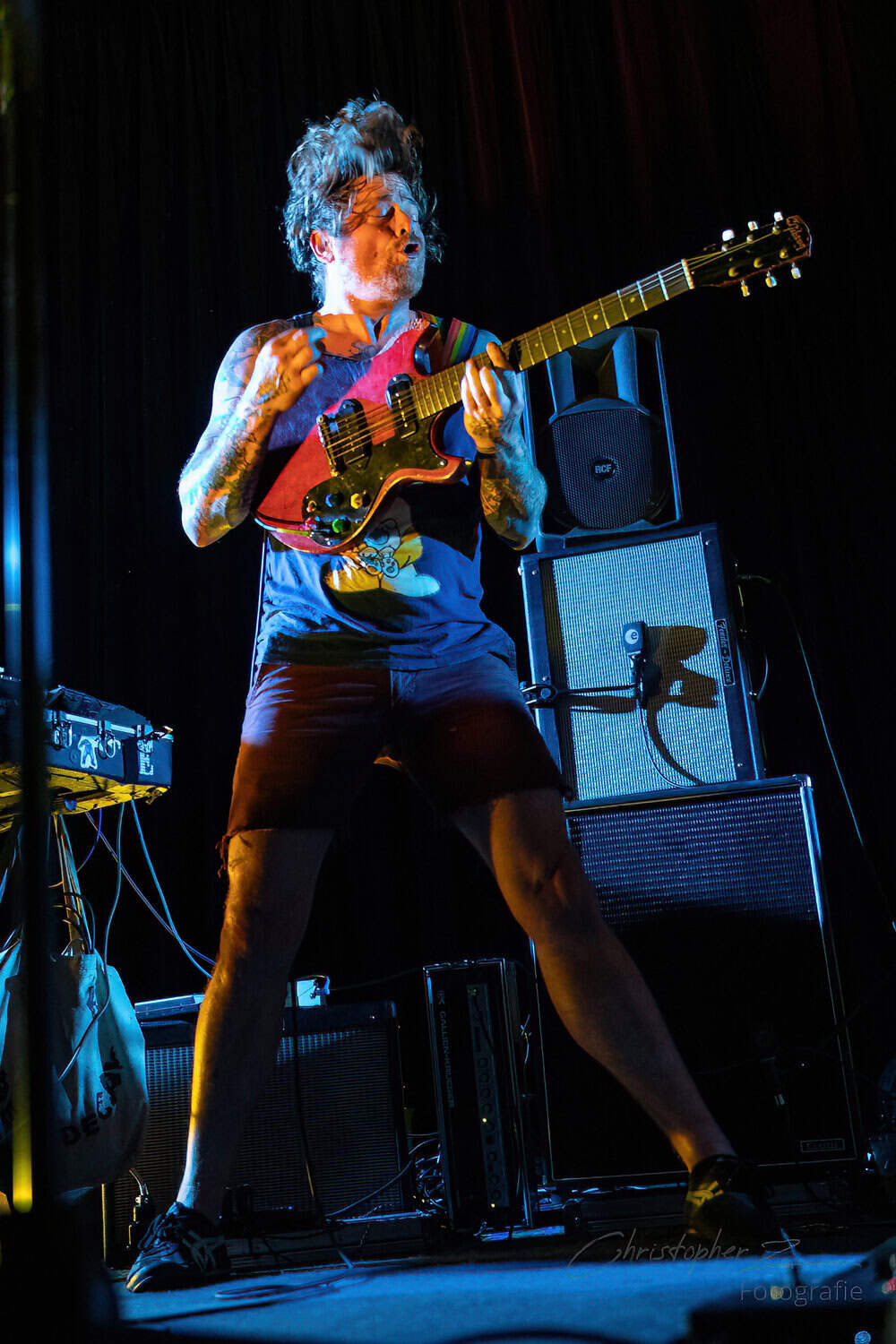 It’s loud, fast, there are two drummers side by side, upfront, keyboardist Tomas Dolas is relegated to the back, a safe spot perhaps?. Dwyer at one point has his guitar in mouth, he is manic onstage, twisting himself and knobs at every turn, there is a perfectionism inherent in this artist. Songs Plastic Plant and Tidal Wave display the diversity of sound: monsters of rock versus psych-garage rock, as this well-oiled, I have to say this again, well-oiled machine, pumps out flawless (well almost) reinventions from the manuscripts.