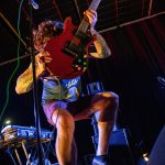 There’s no pause onstage. John Dwyer (and band mates) are straight into it, with local crew, setting up, adding, minusing, checking, meanwhile the music blasts, it blast a song I haven’t heard for years: Rock ‘n’ Roll MacDonald’s by Wesley Willis. There is a rush to the front as soundcheck excitement erupts, when Dwyer and others create havoc in volume checking all is well. It is and without nothing more than an “Evening Kiwis” Osees are back!