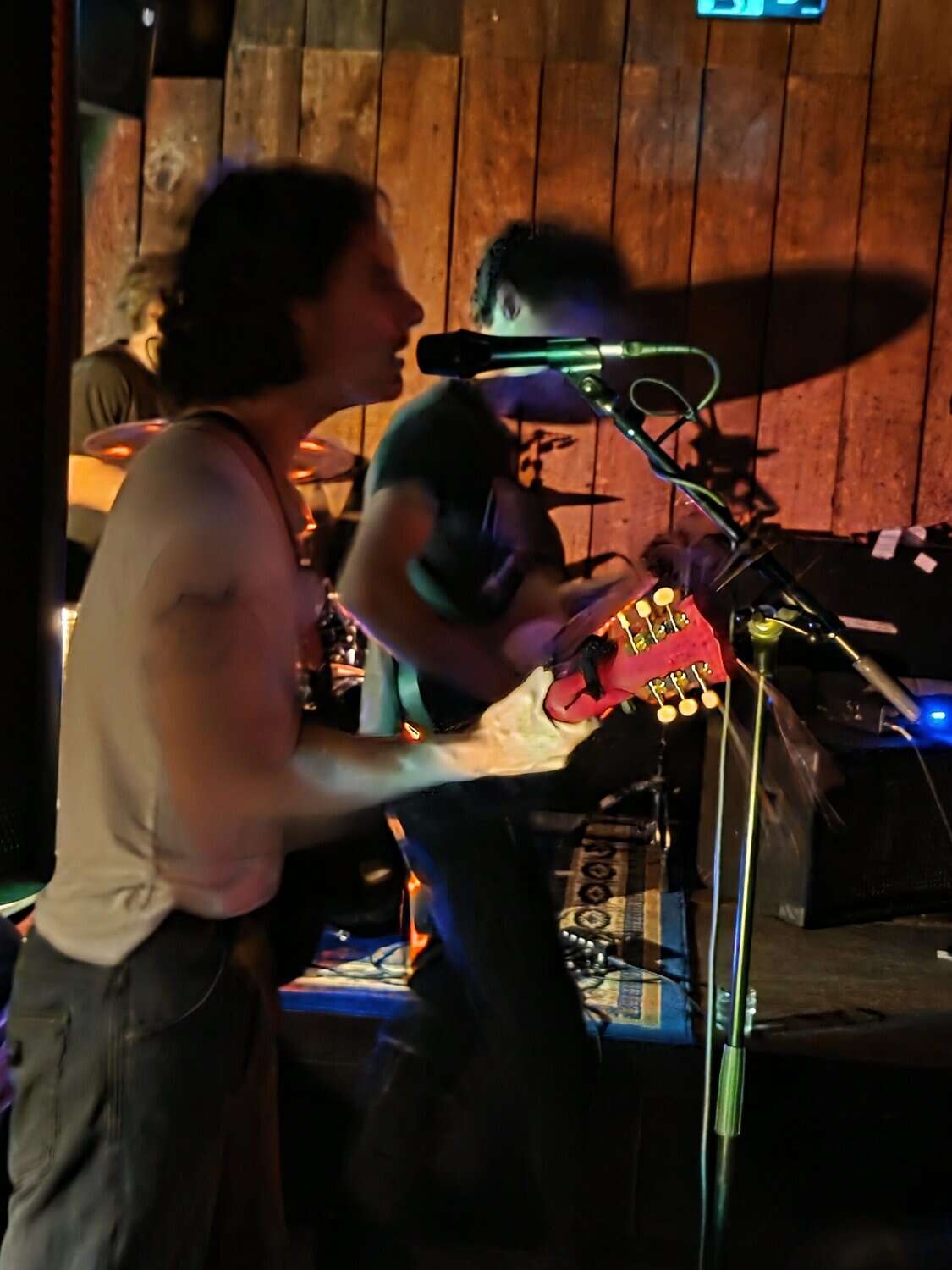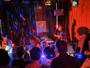 Goblin has ambiance, the decor semiotically speaks nostalgia, the upstairs whare where too many congregate, wafts of jazz cabbage, it masks the jam that happens as Awning gather in a corner, there is no stage, but there is a fucking annoying split wall that rudely segregates the crowd. It gets very crowded, but the tamariki are alright, polite, and aware. Awning have warned in advance, tonight they will share only new songs, it’s exciting, a rima piece, (wha on the floor, just the drummer cursory raised) toru guitars hmmm. Awning’s ST debut album was a blast, though now pulled off Spotify (the band have grit) sadly no physical formats, just bandcamp, needs to be resolved.