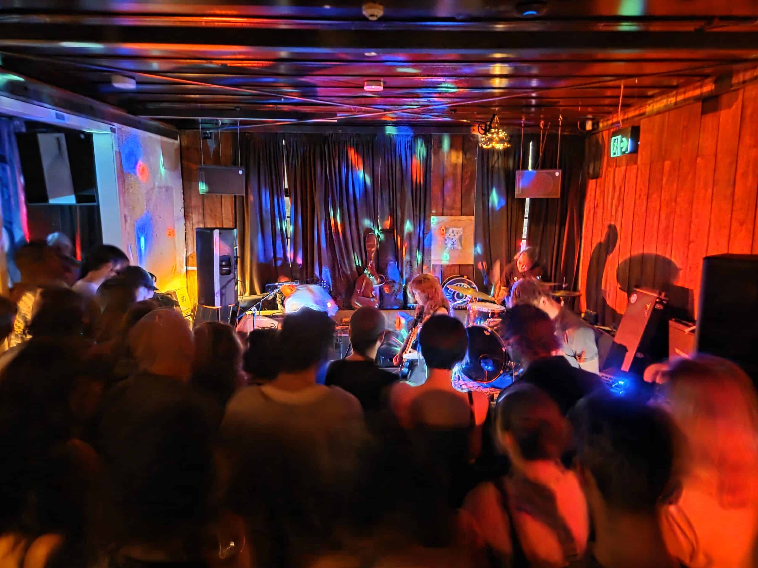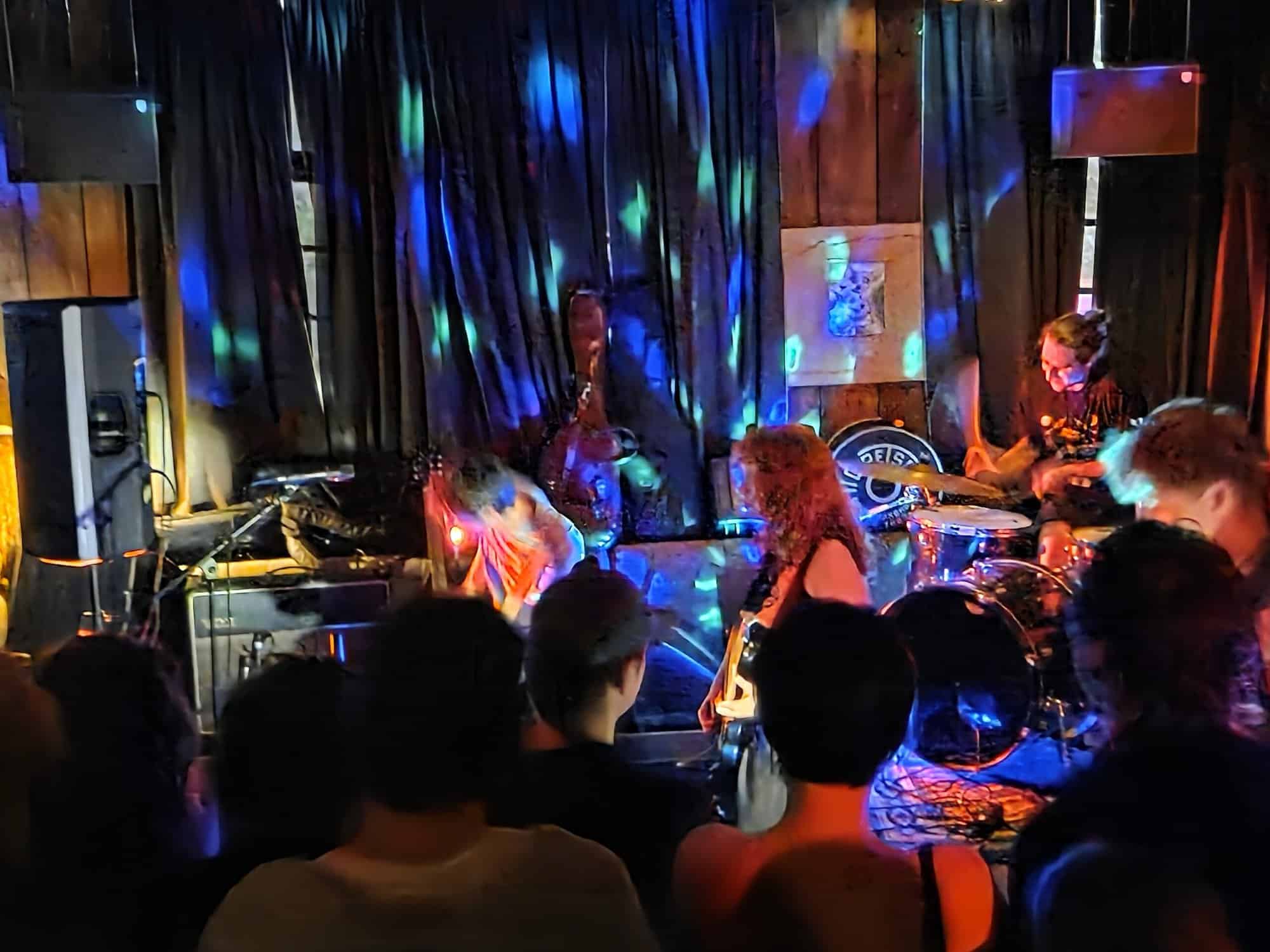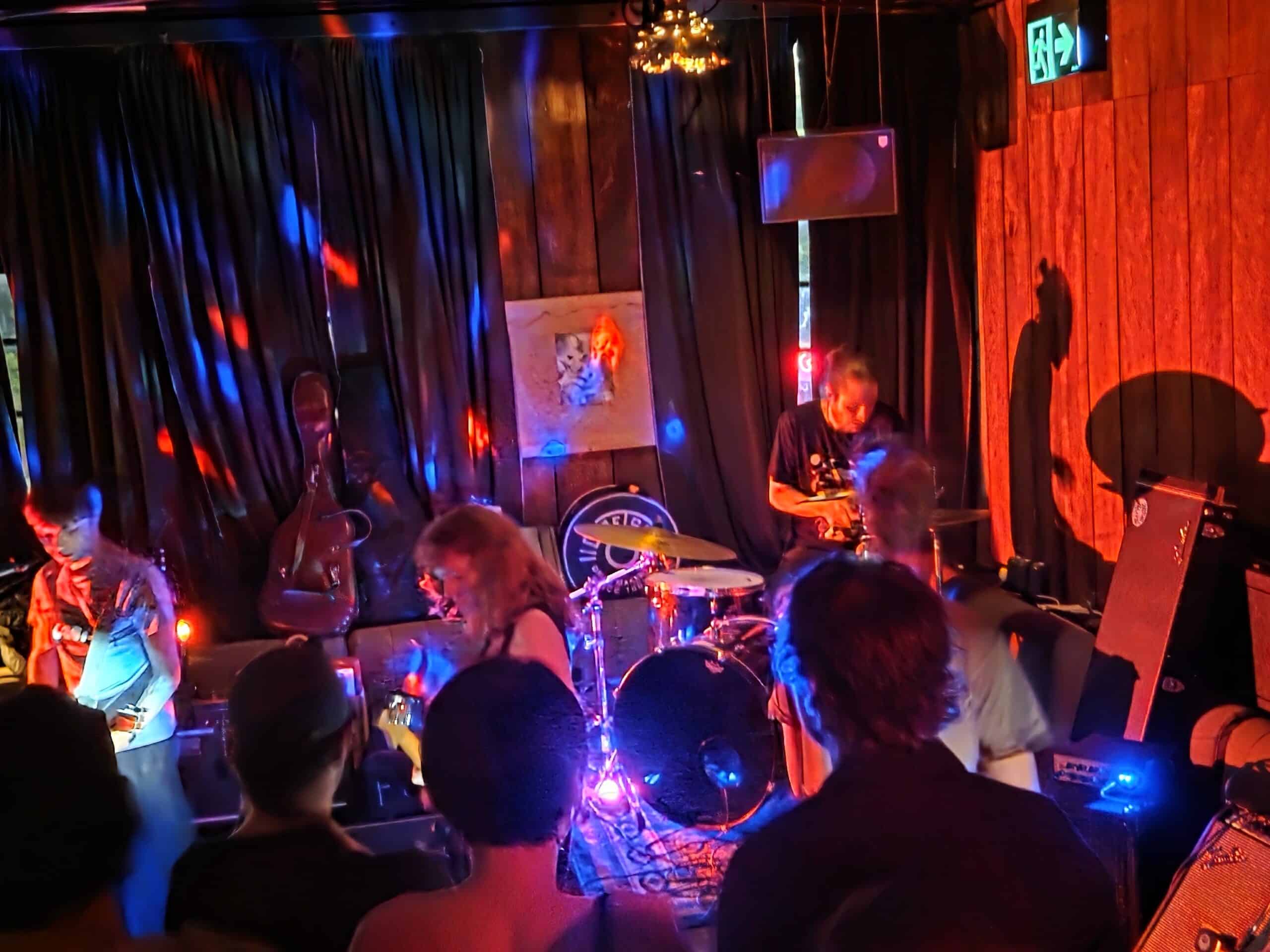Cliff Richard, Lenny Kravitz, the sold-out double bill of Blood Incantation & Secret Chiefs 3, it’s a busy night, but we think we’ve chosen wisely. The show is at Goblin in Ponsonby, not to be confused with Nice Goblins in Mt Eden, who came first, and are an artists collective, shop and venue. There’s more confusion; it seems it’s Goblin’s first rā whānau bash as well, so there are rua, maybe toru events on at once. The tickets say 9pm (yes we bought, support local music people!) so we risk it, come on time, not too busy, even find a bar leaner.