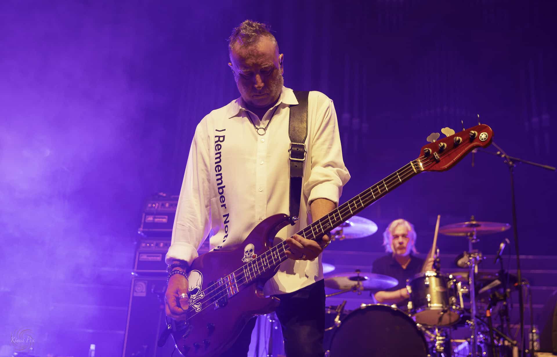 No longer sidelined, Hooky uses his understated vocals, in a gruffish, baritone style, not so much mimicking Curtis, but rather taking the classic songs (and with little help from friends) and presenting the audience with his version, that still hat tips Ian’s vocal brilliance. Sadly at times, the less enamored in the audience, likely Ponsonby Couples now start planning their shop at Freemans Bay Countdown, reminding each other not to forget the broccolini and Oat Milk. Not to be outdone, there are also the Courting Couples, it’s great you recent divorcees have made a connection, now can you fuck off to the back of the room to chat each other up.