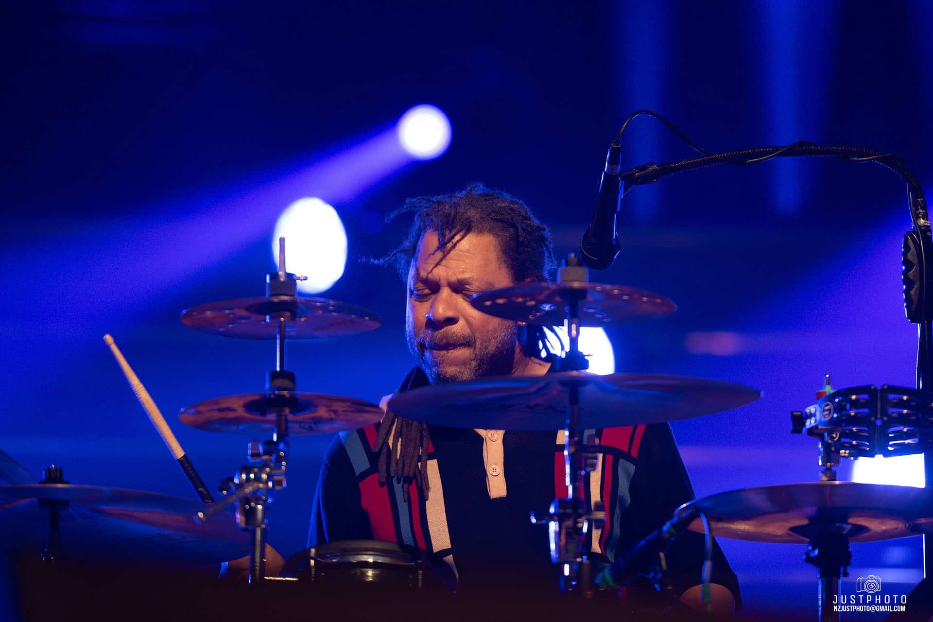 An energetic cover of John Lennon’s Working Class Hero successfully entices people out of their seats. The band’s take on this tune felt so fresh; Earl Roberston switching out his snare for a drum pad and a bass tone so thick from Karin Canzek that it could have powered an illegal rave. On paper this arrangement shouldn’t work, but they absolutely smashed it.