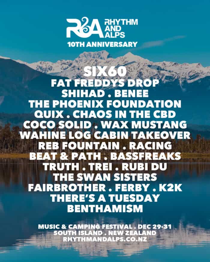 “We’ve carefully hand-picked these acts from around Aotearoa to highlight the diverse talent that New Zealand has to offer,” Rhythm & Alps festival director Alex Turnbull says. “This is a one-off quintessential Kiwi all-star festival”.