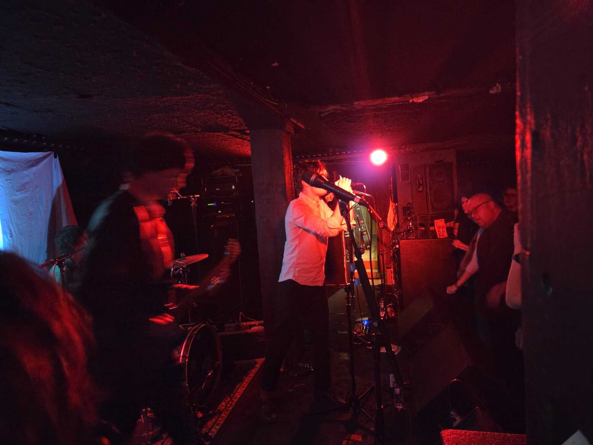 It’s a sell-out, on a bitterly cold Tamaki Makaurau night, Whammy Bar was jammed, rammed, as tonight was the end of Ringlets first Aotearoa Tour since 2023 (they’d played a few festivals though), the crowd was their fans, usual suspects, local musicians and soon to be OAPs. A ramshackle video screen sat at the back of the stage, flickering, while really rather cool tunes blasted out, meanwhile people lied about their lives, and burgeoned their anticipation.