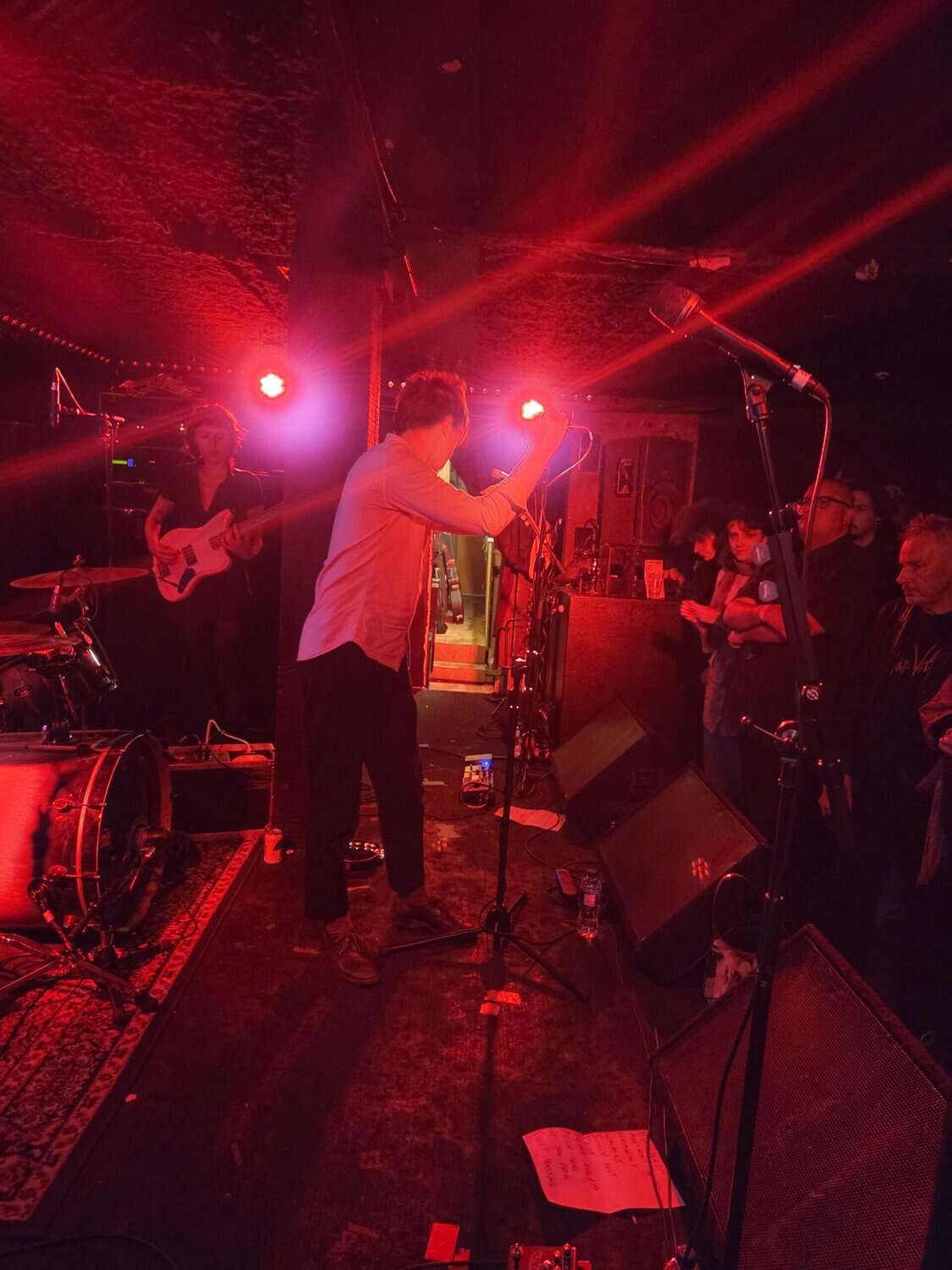 Off the back of dates around the nga motu, Ringlets band members are acting in unison, and with the great mahi by their soundtech, truly, possibly, it sounded the best I’d ever seen them. Arabella’s bass playing delivers driven deep tones that fill and append the others’ efforts, and as in the past, when, on vocal lead, she and the song itself are a highlight. (Could/should a side hustle (band) be plausible?) It’s apparent mid-set, the divergence between album and live versions of songs from the new album. On vinyl, the songs have finesse and balance (the use of synth and harmonious backing vocals) created ambient listening energy. Live, though, there is a ragged, darker, severe delivery, that works the room actively, avoiding the passiveness of past efforts.