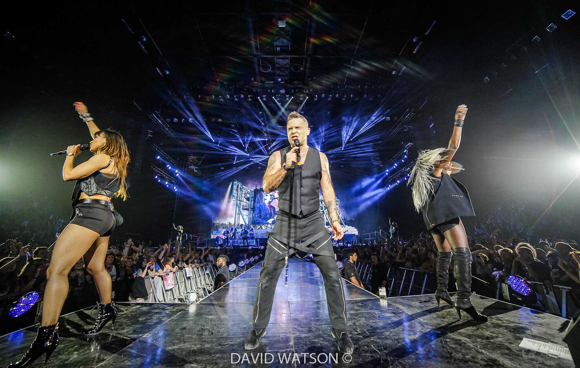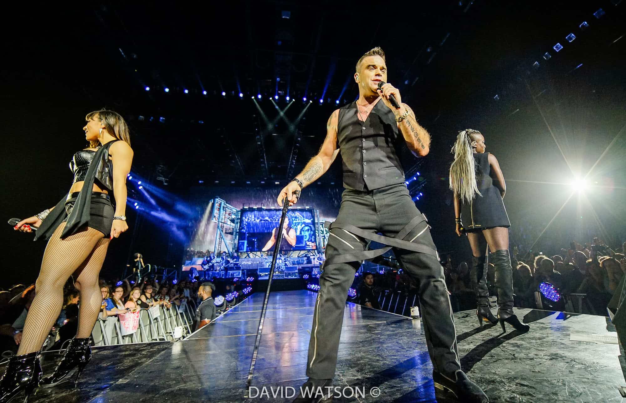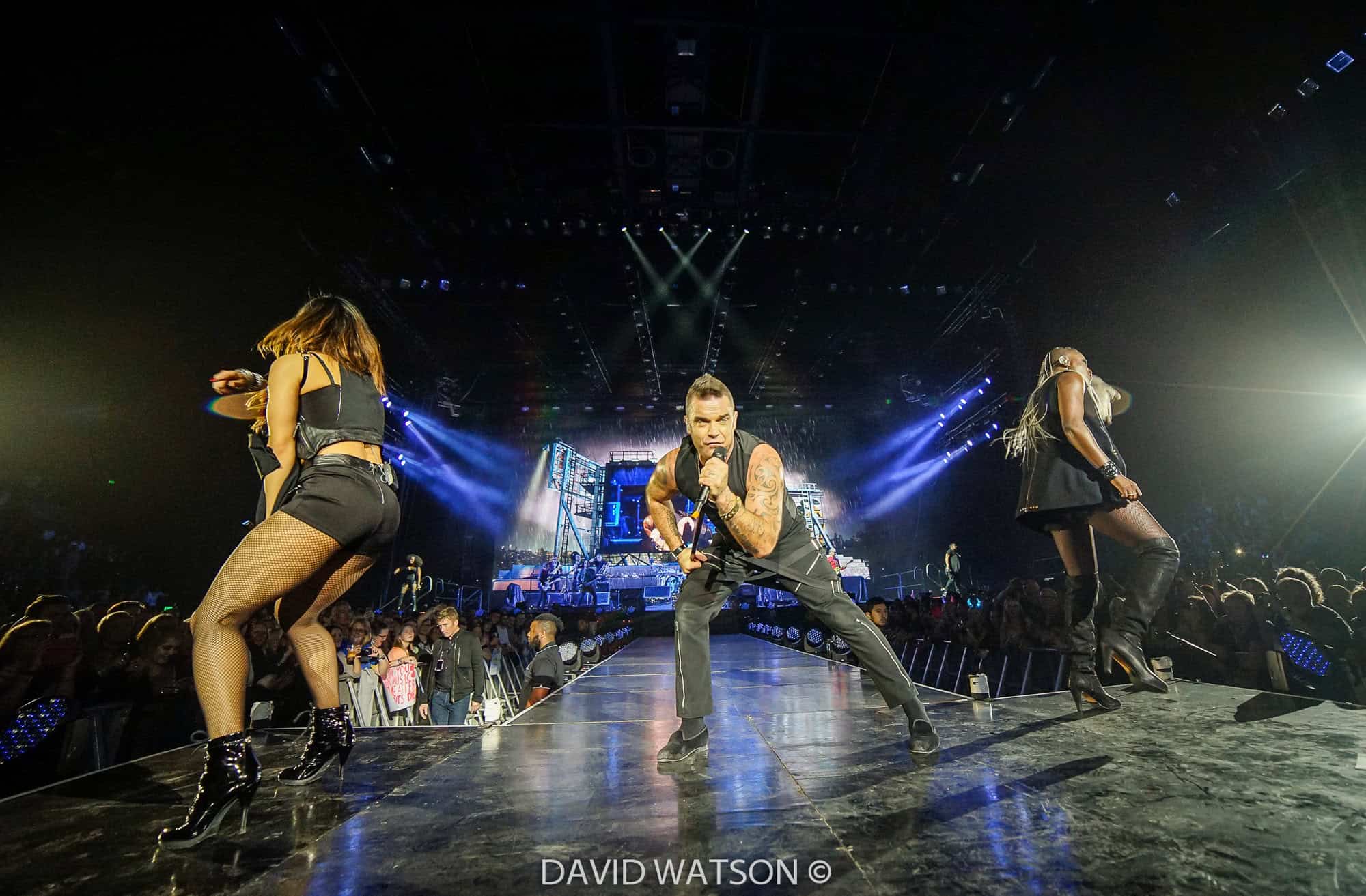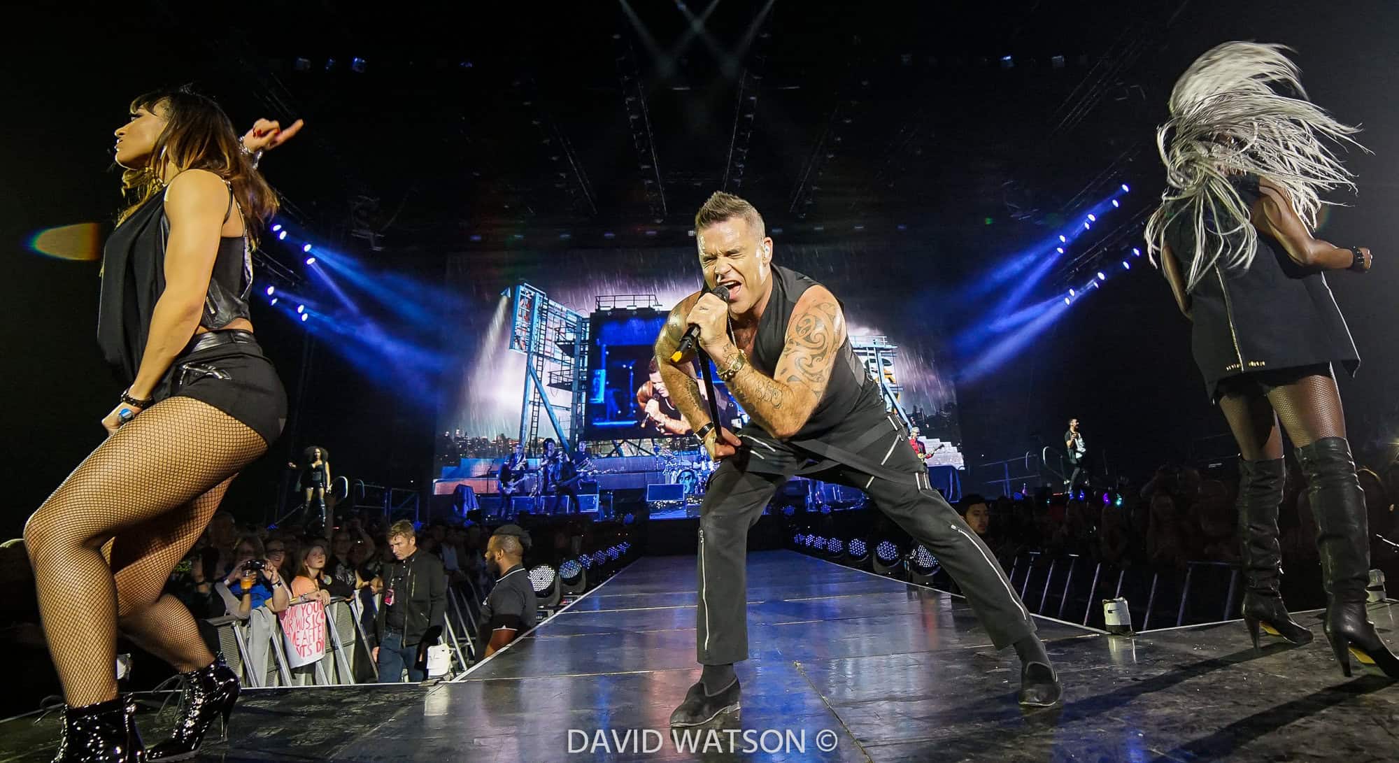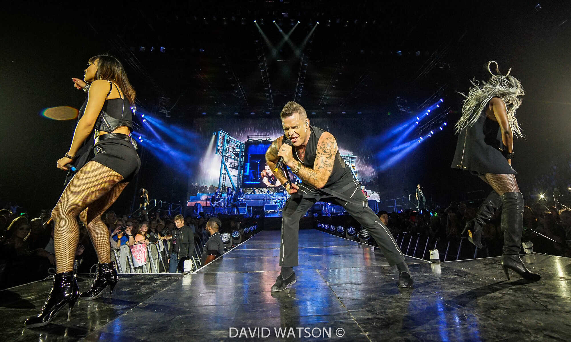 This is Robbie Williams’ “Let Me Entertain You” tour. And after sitting (and standing) through his nearly two hour show at Auckland’s Vector Arena, no matter what you think of his music or his persona, one thing is certain, the man delivered on his promise. I would venture to say that every one of the 10,000+ folks in the audience were definitely entertained.