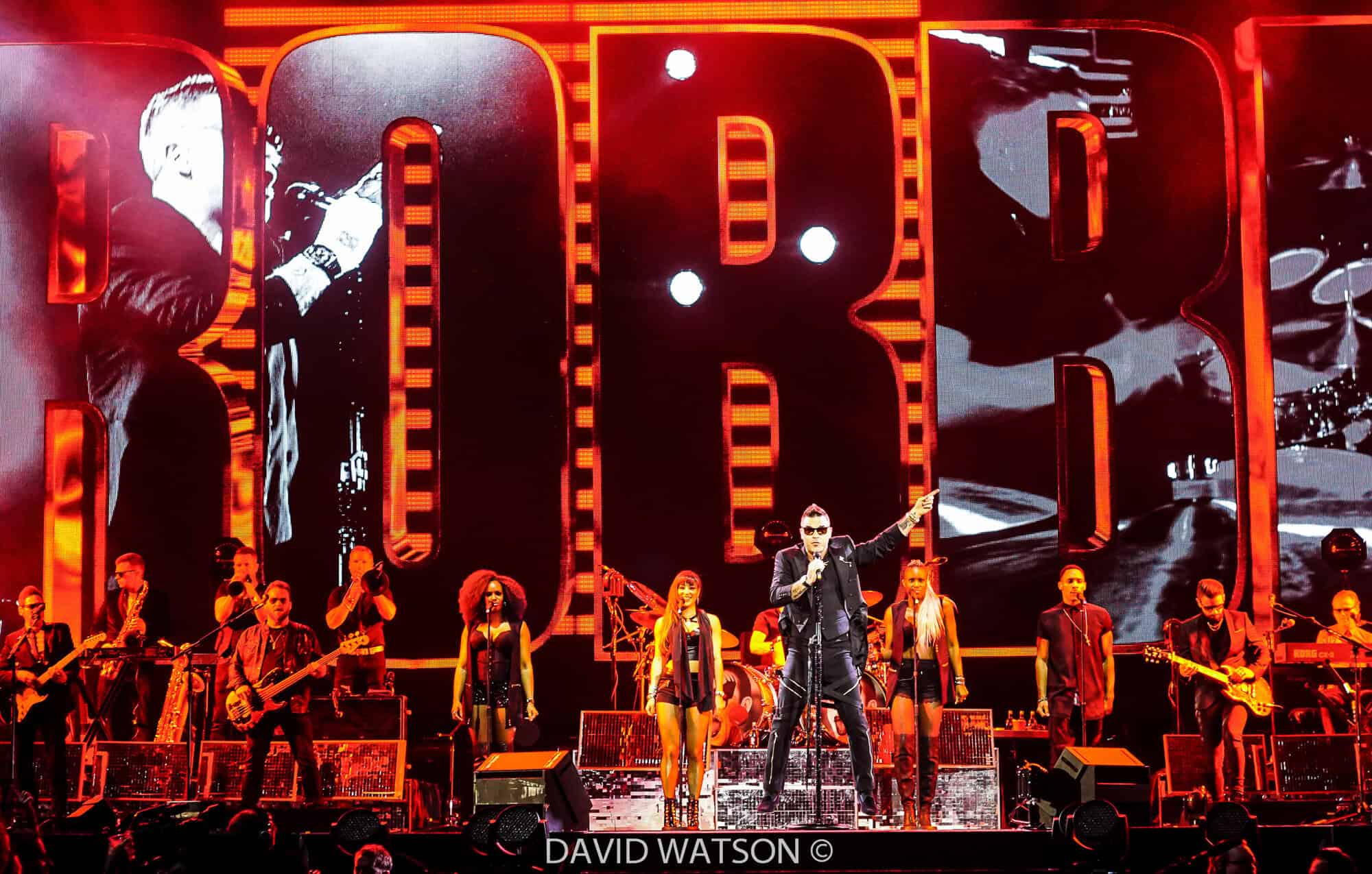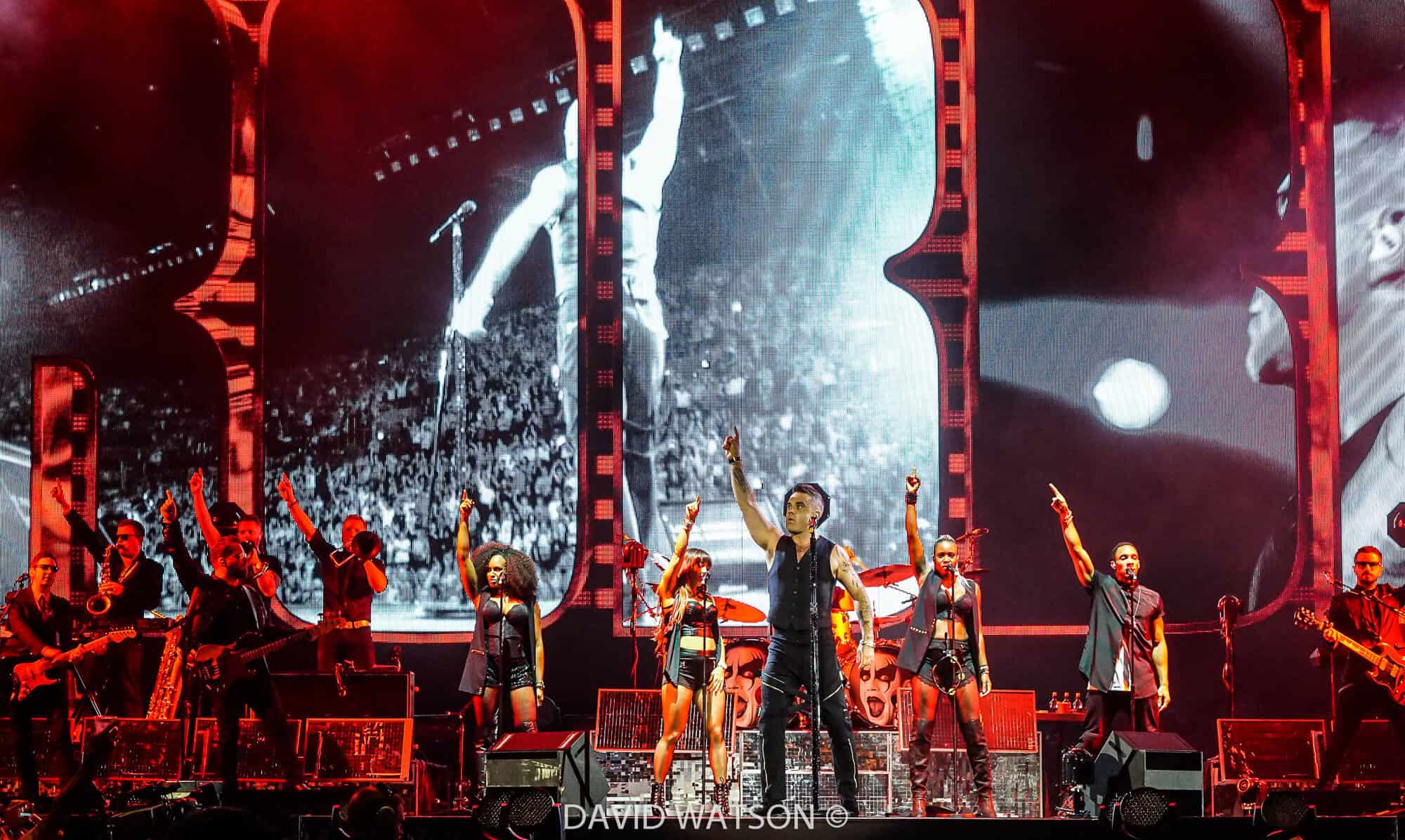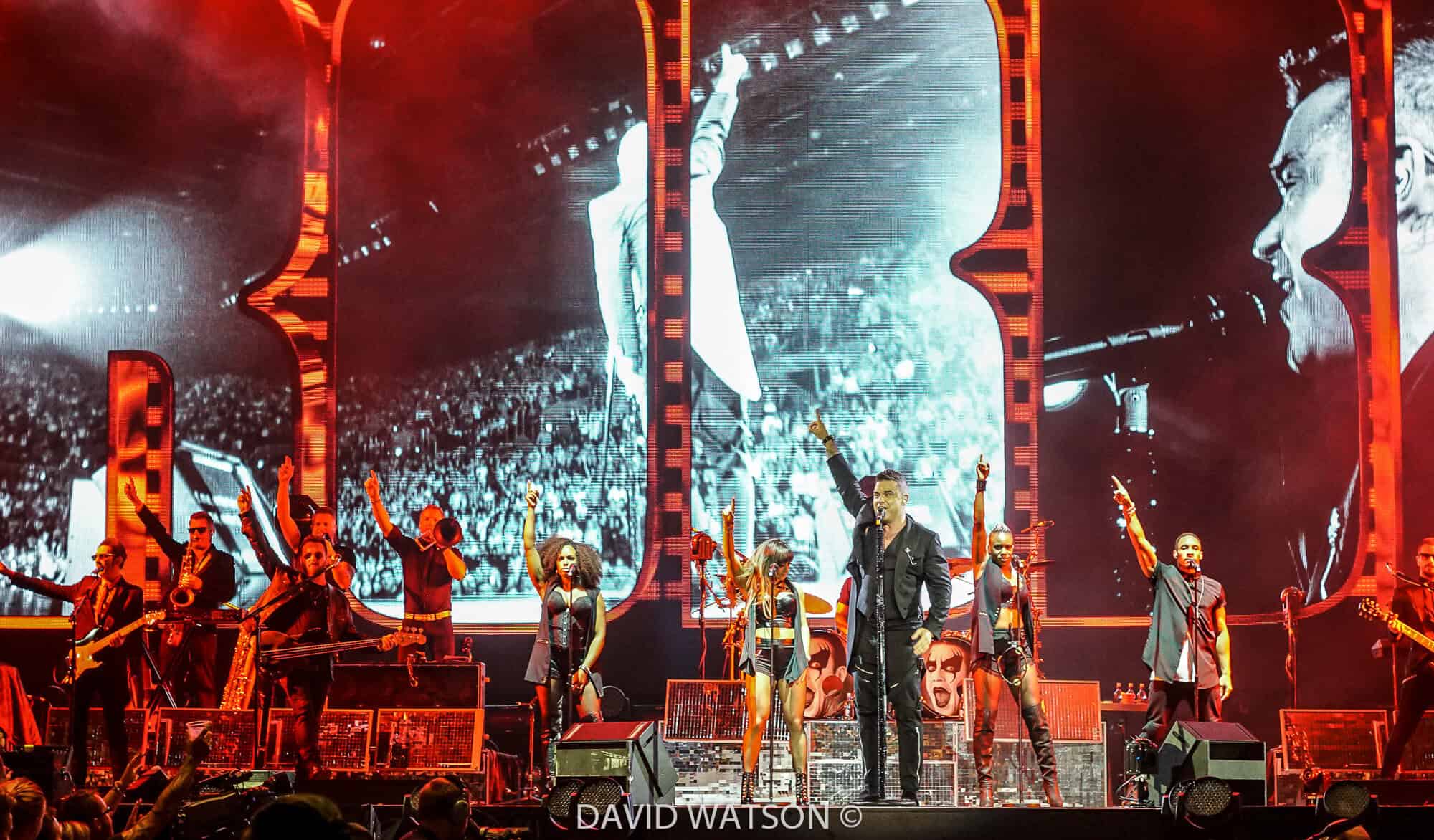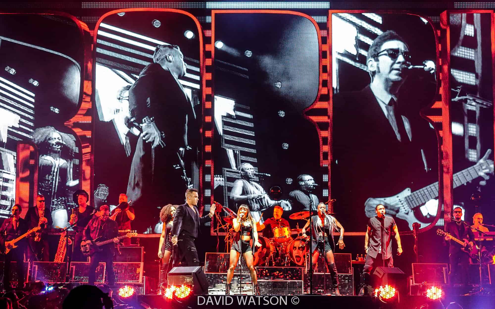 But Robbie was taking no chances. This was a big production designed to make an impact…I counted 12 musicians and singers on stage in addition to Williams including a three-piece horn section and four additional vocalists/dancers.