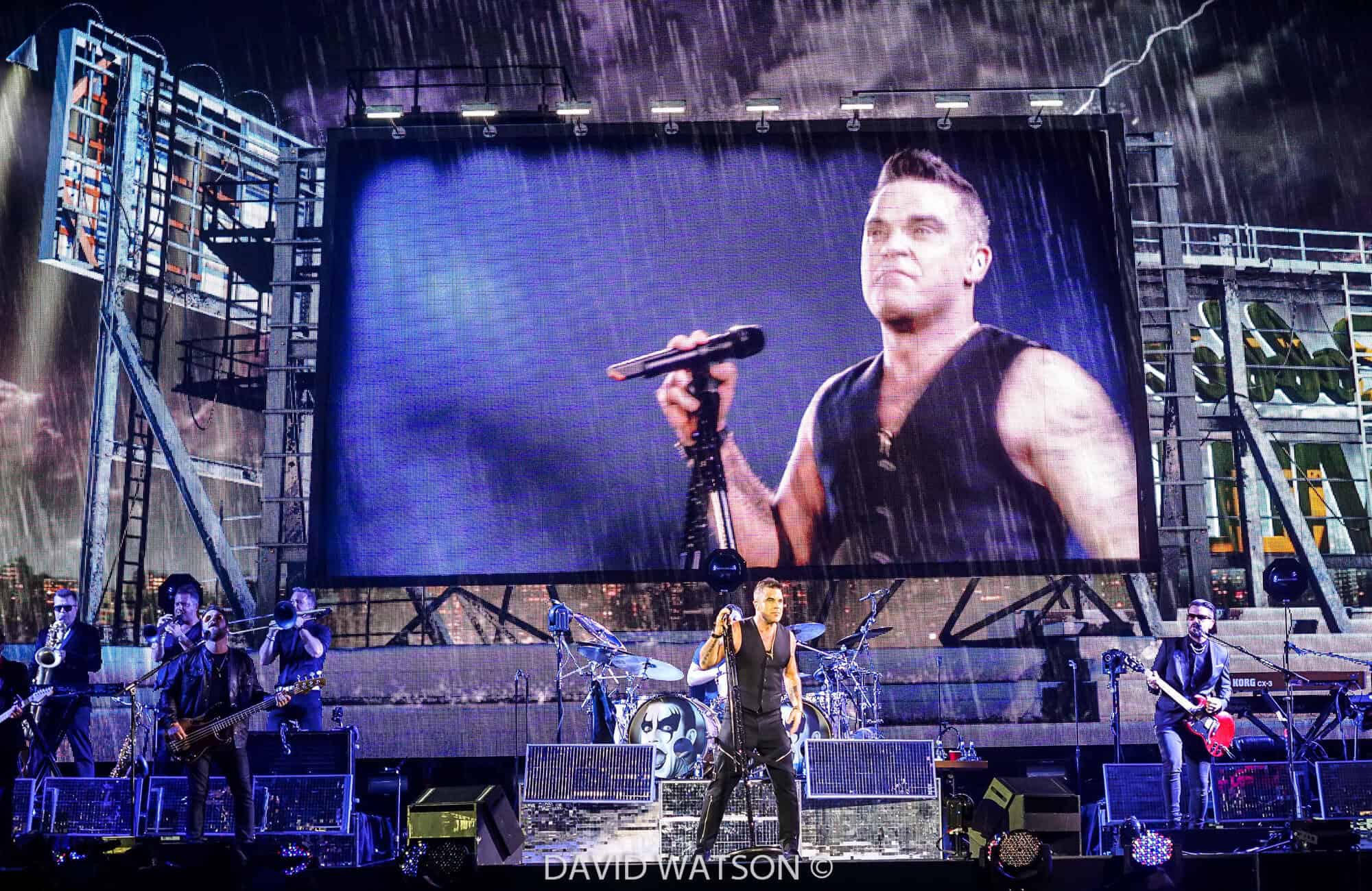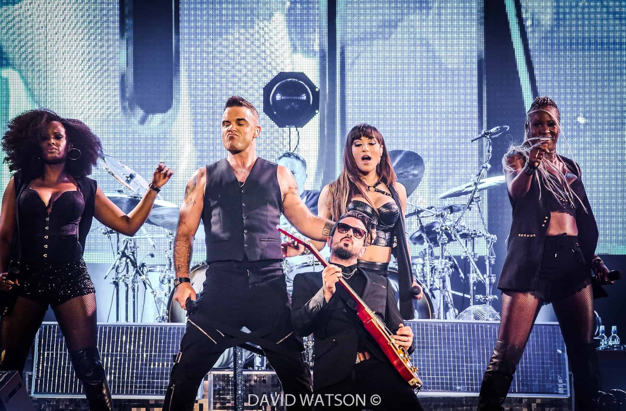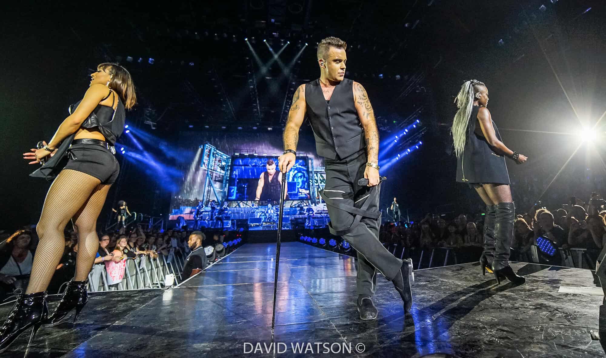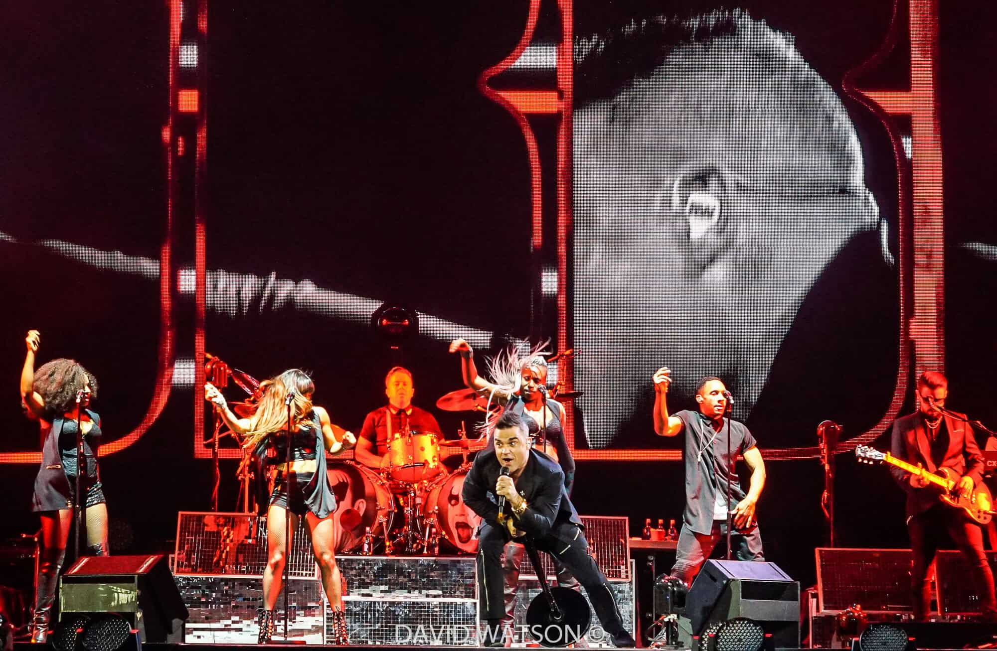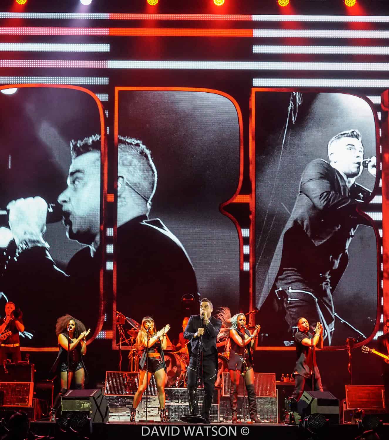 But Robbie was taking no chances. This was a big production designed to make an impact…I counted 12 musicians and singers on stage in addition to Williams including a three-piece horn section and four additional vocalists/dancers.