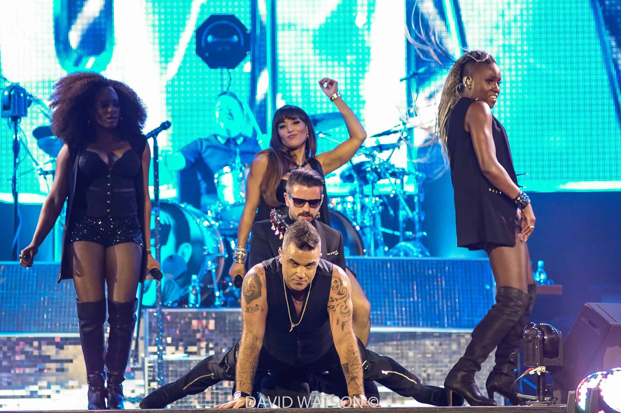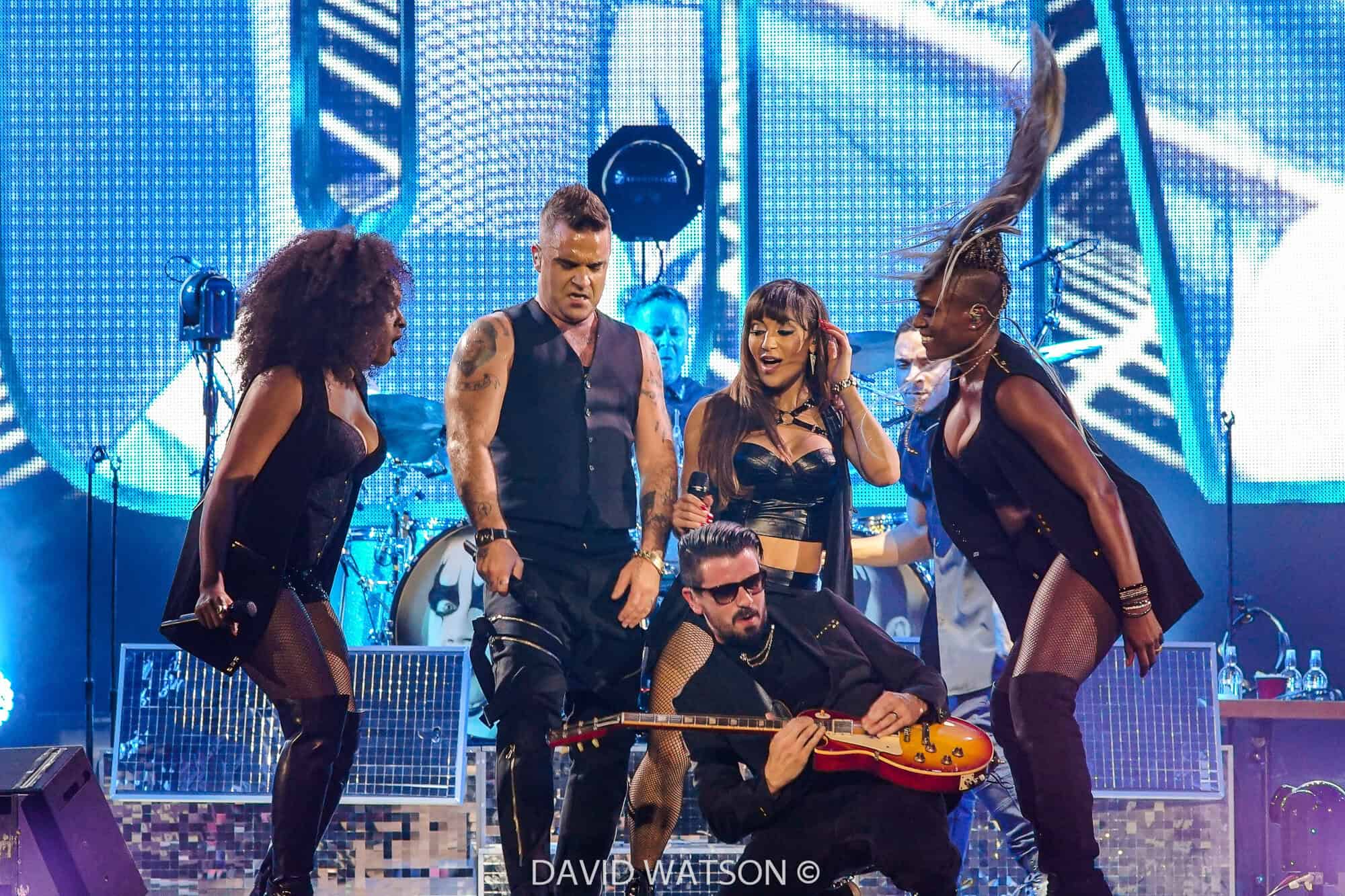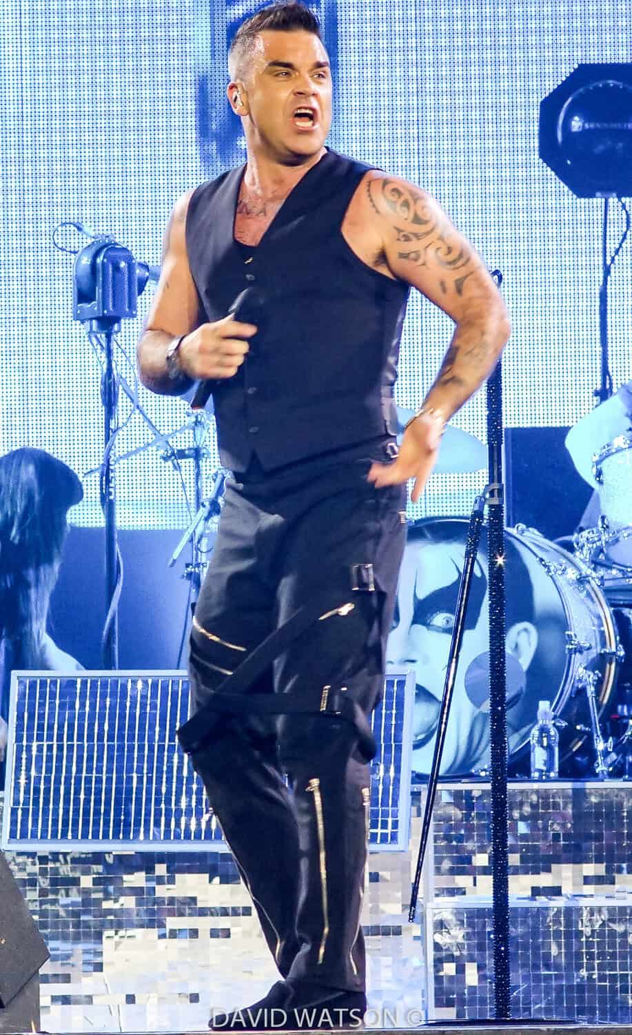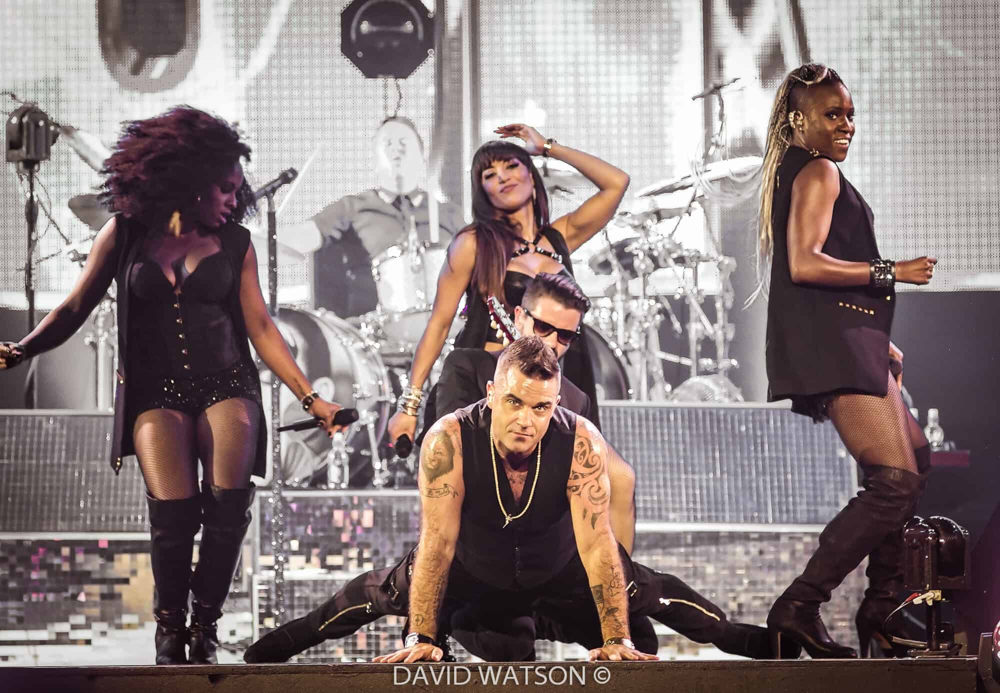 But Robbie was taking no chances. This was a big production designed to make an impact…I counted 12 musicians and singers on stage in addition to Williams including a three-piece horn section and four additional vocalists/dancers.
