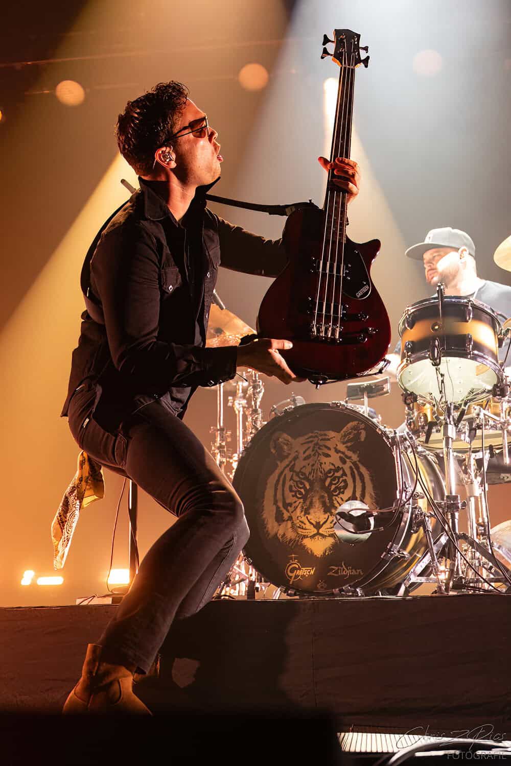 For songs like ‘Shiner In the Dark,’ the duo brought on stage Darrel Watts, who supported with keyboards and synths. This added an extra dynamic to the already very full sound. Kerr’s vocals were strong and on point throughout the entire show. The star of the show, for me, however, was the bass and guitar hybrid that frontman Mike Kerr has developed. Essentially, a bass guitar with the capability (I assume through pedals) to sound like an electric guitar, a bass, or both at the same time. At times it sounded more like a war machine growling at the audience. Paired with the nail gun precision of Thatcher’s drums, it makes the ‘Royal Blood sound.’ This sound you really need to hear live to appreciate its power.