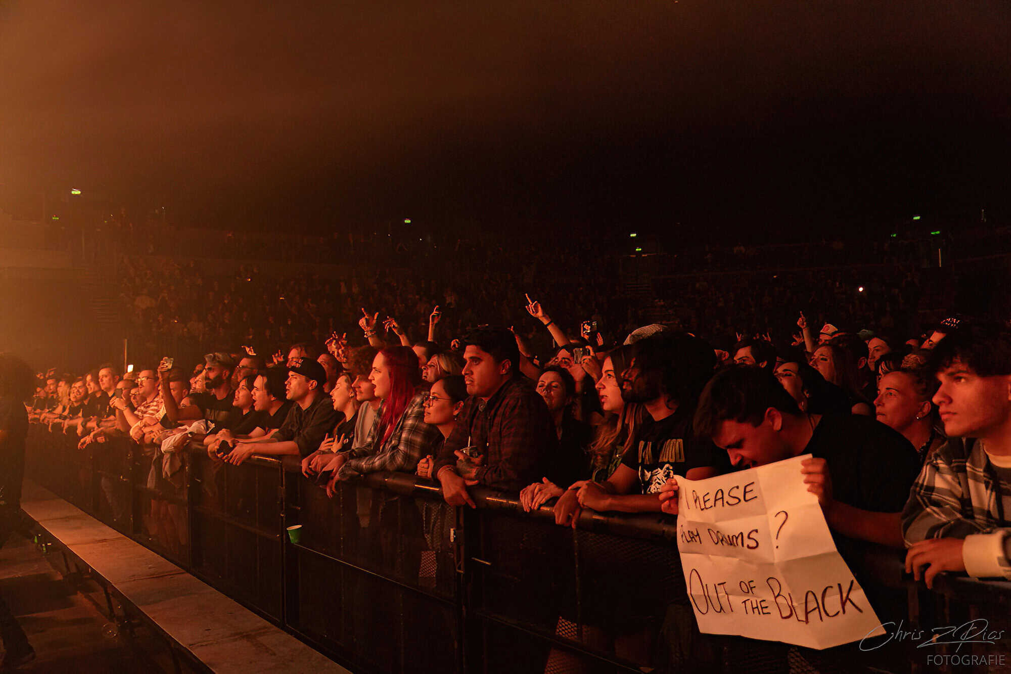 My longtime collaborator and close friend eagerly anticipated a night of rock and roll. As the lights dimmed, our attention was immediately drawn to the three prominent drum kits gracing the stage. The unmistakable presence of die-hard Royal Blood fans became apparent as a sea of merchandise started to fill Spark Arena.