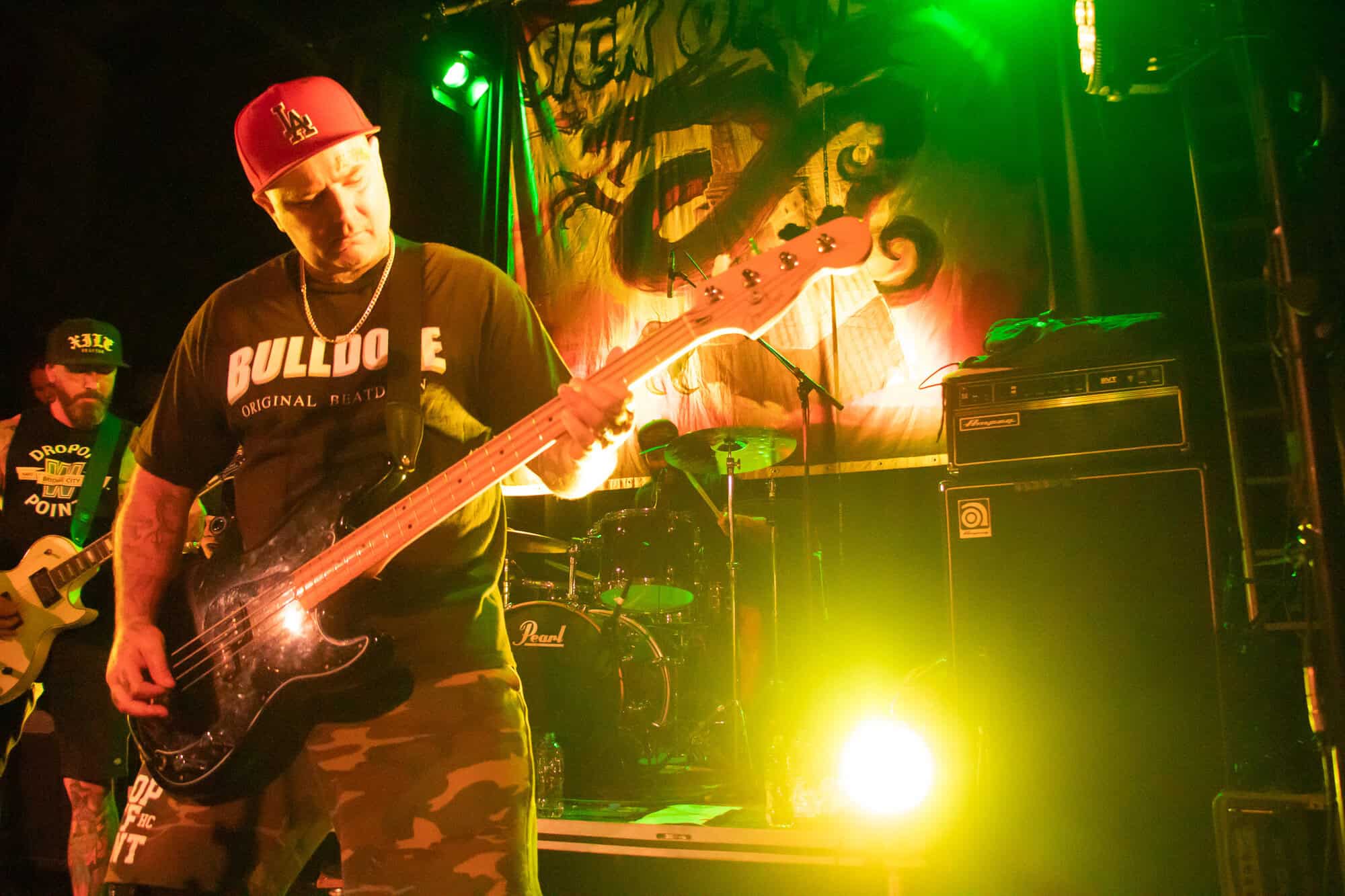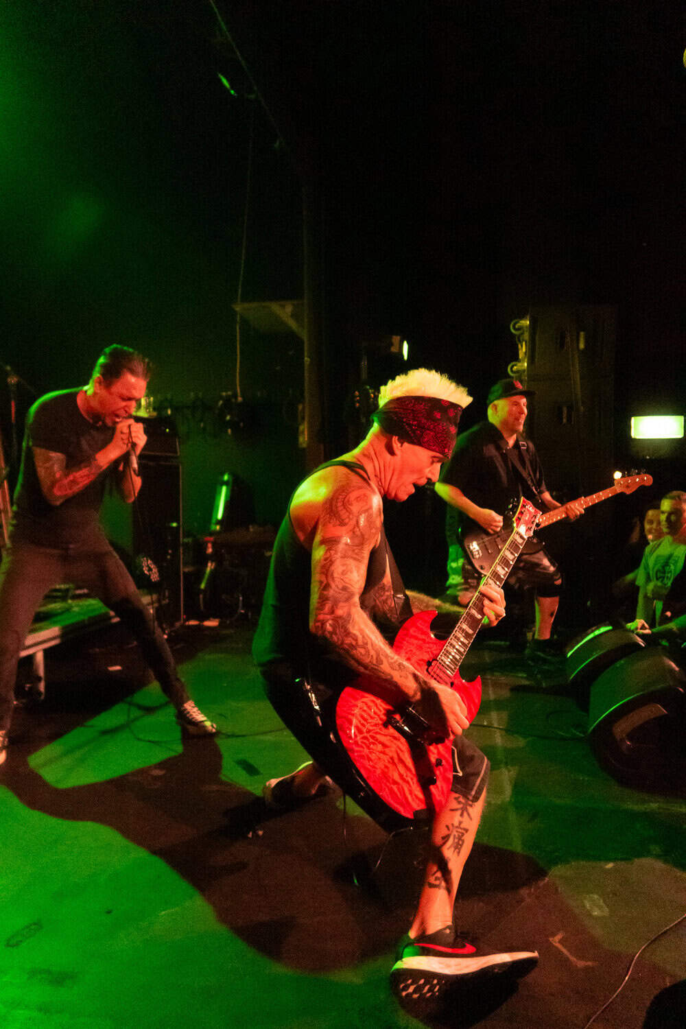 The atmosphere throughout Sick Of It All’s set was appreciative and jovial. The band happy to let audience members run amuck onstage, individuals sometimes lingering longer than their welcome, responded to with a mere shrug and a grin between band members. After some short banter with an audience member about tonight being Chubs’ birthday, Lou made a running joke of Chubs being a big enough deal to warrant a national holiday. Chubs however surpassed all expectations when the band pulled him up on stage to take over lead vocals on Scratch The Surface; Chubs absolutely killed it.