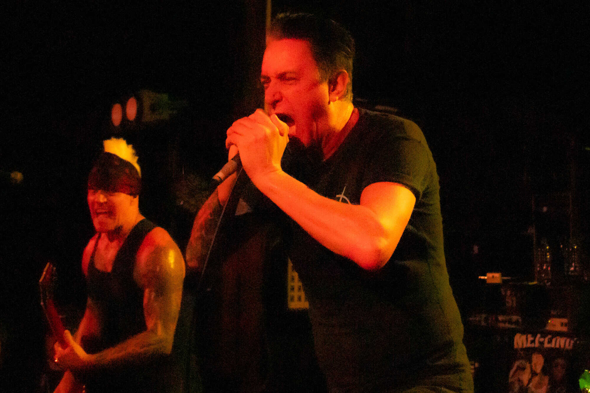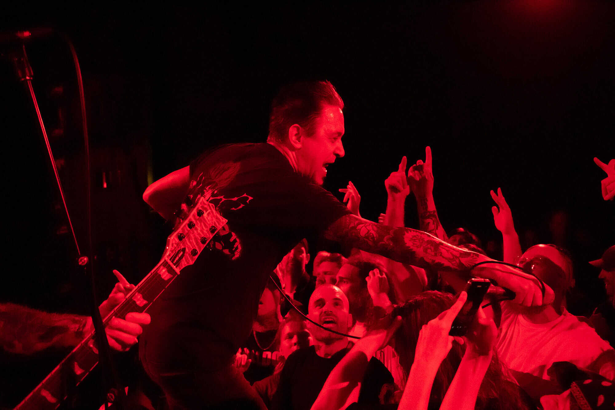 Their set went by in such a flurry of intensity, energy and movement that it was difficult to keep up with the individual songs being played. From what I do recall there were a number of early set highlights such as Inner Vision from 2018’s Wake The Sleeping Dragon that matched the studio version’s intensity, whereas Injustice System & Clobberin’ Time from their 1989 debut actually sounded more full bodied and powerful last night than on the record. All of which incited a gang vocal pile up at singer Lou Koller’s feet. Lou commented that being the last night of the tour, his voice was shredded and that he may need some audience help. To my ear, he maintained his trademark scathing vocal throughout the night and I wouldn’t have noticed he was struggling.