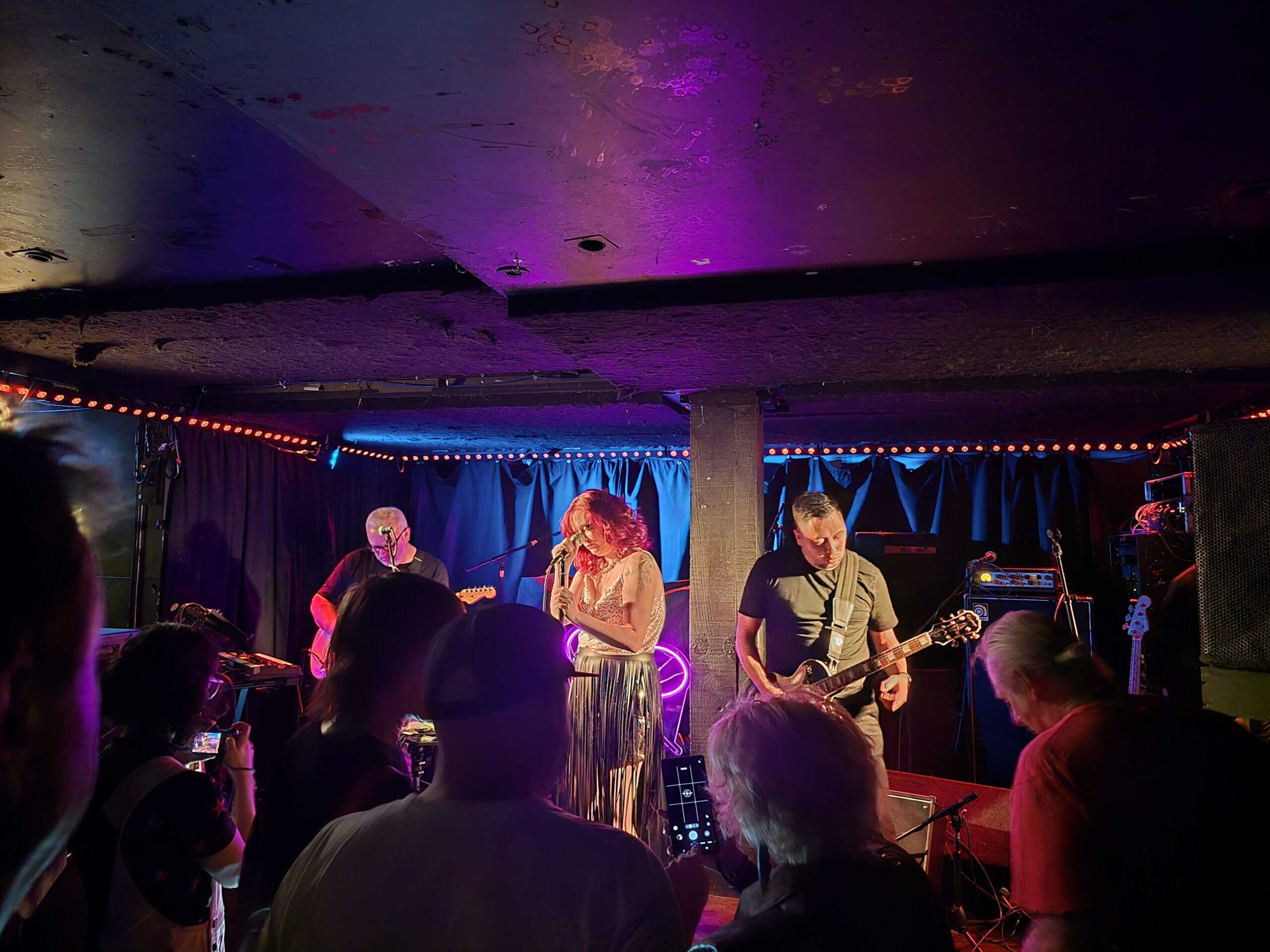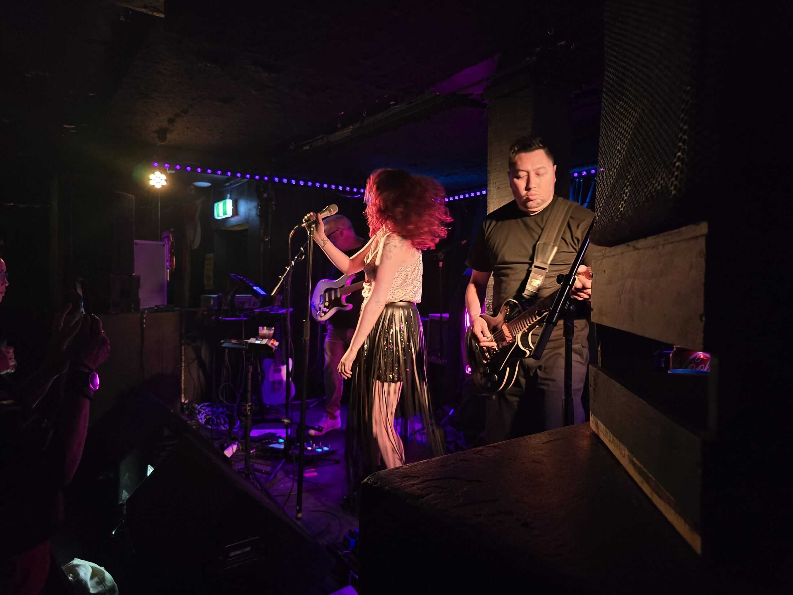 It’s Always You had an ingrained groove, and the band were now relaxing into their set, dancing at their mics. Clearly well-rehearsed and excited to be playing to a receptive audience. In Turning The Whole World On, vocal harmonies between the two lead singers and bassist/backing vocalist Aidan Phillips created the ground for a singalong and the fans in the audience who knew the lyrics did just that.