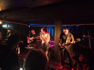 Flowers brought the guitars into the spotlight, with driving riffs that echoed throughout the room above the smooth bass line. Comfort me had masterful vocals and the kind of raw emotion that belongs in the climax of a 90s rom com where the lead actress runs through the rain desperate to catch her love interest before he boards a plane. Billed “a bit weird,” by the frontwoman, Love Isn’t Always entranced the crowd with a carefully controlled sway-and-ponder-the-world vibe.