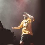 The two co-write and composed the content that fills up the act’s seven albums (they’ve been at it since 2013) but on stage its Williamson that does the heavy lifting. Just remembering all (or most) of the lyrics to the 25 songs performed tonight was no small feat, but he also has the look, the sound and the attitude that defines Sleaford Mods. He is angry, cynical, indignant and self-righteous in equal measure, calling out twats, c*nts and dickheads in his thick, working class accent.
