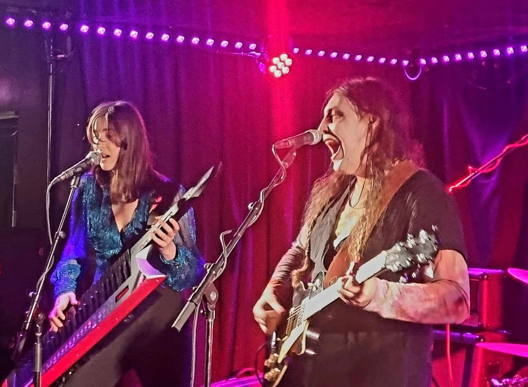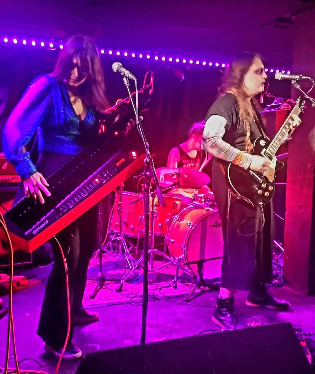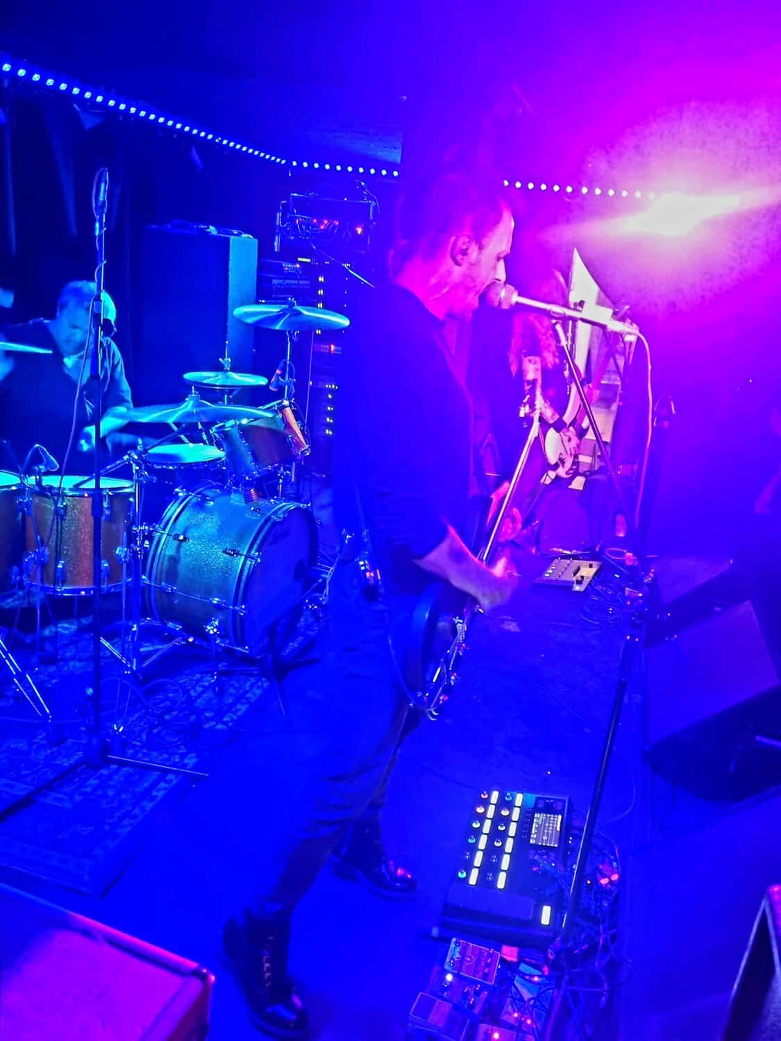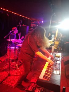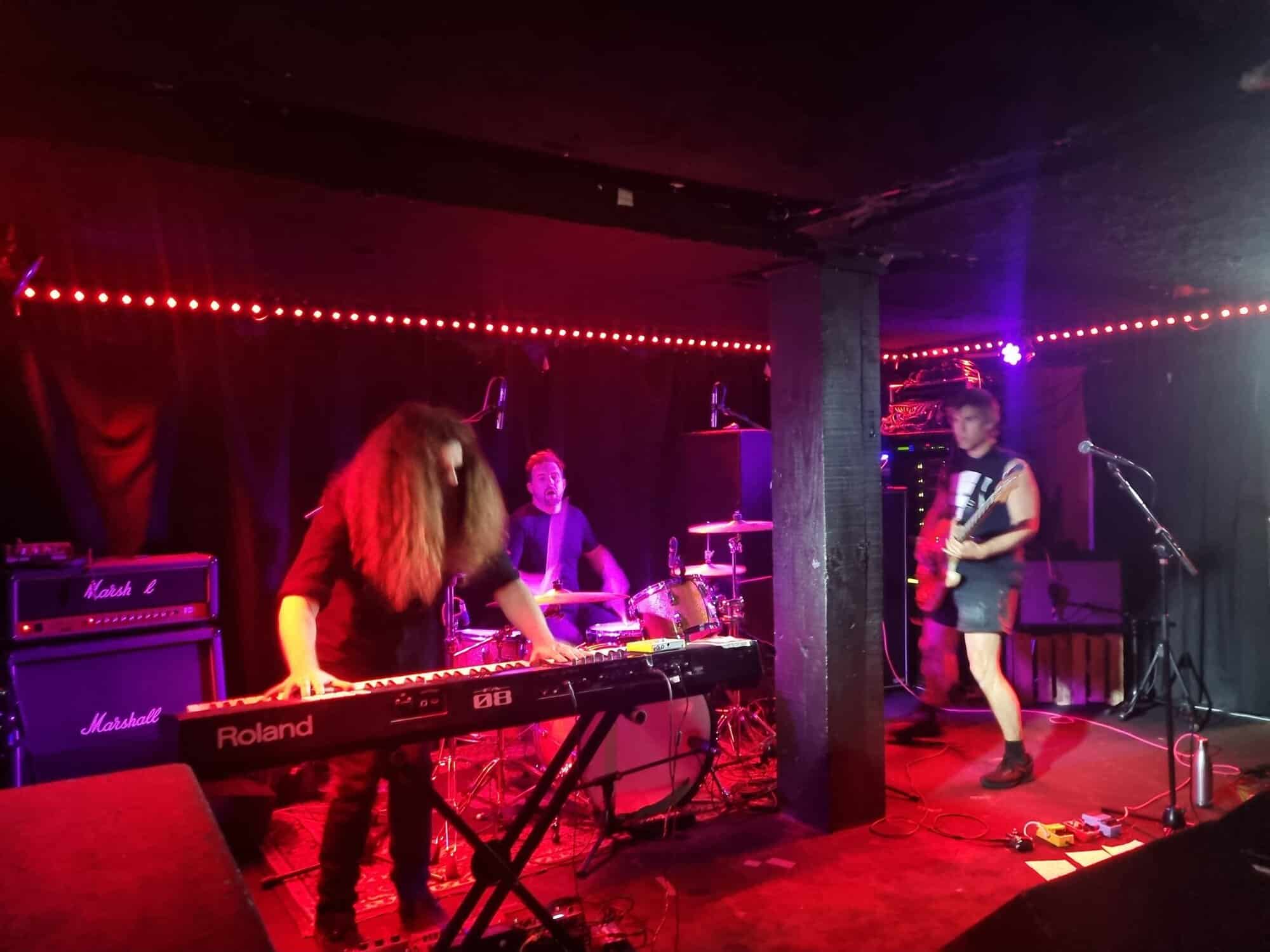 Fresh from playing the recent 1:12 FEST, Du Trois are a four piece featuring (from Cut Shapez) Jard on Guitar/Vocals, sporting a post-Halloween look, with bassist and a keytarist, alongside, dressed in a 70s US glam punk style, think The Runaways, let’s not forget the drummer. Playing a  mixture of protopunk and guitar epics, the keytar is the feature that steps them up musically, actually the singer’s avaristic manner, overblown manner is florid, entertaining somewhat.  Du Trois are a little unrefined, though their slow song, not slow song, is the one that steals the night. Looking forward to seeing them again.