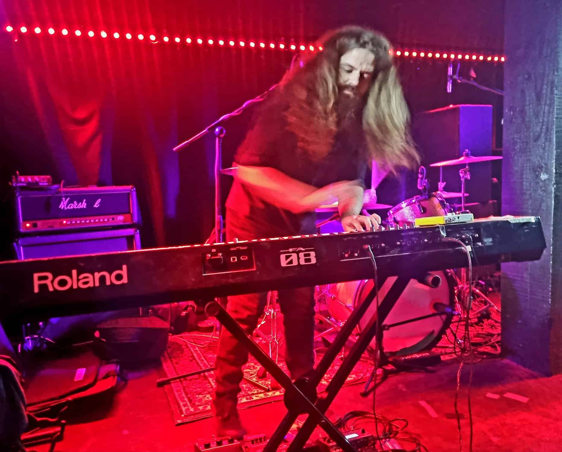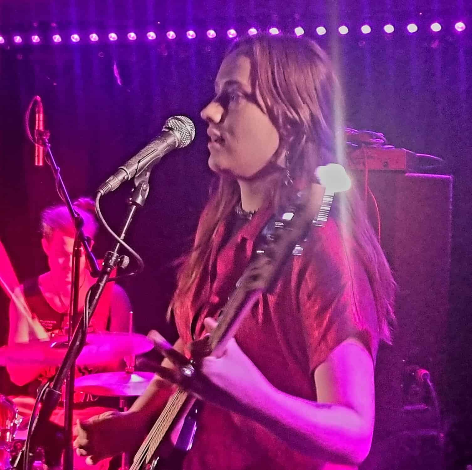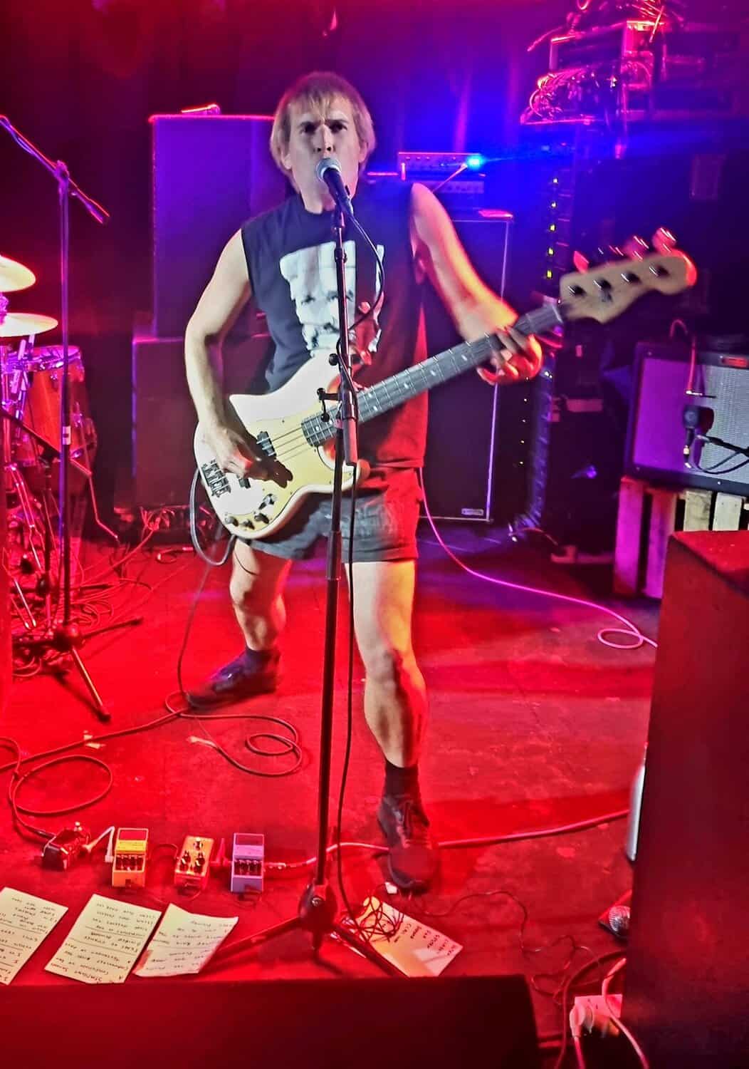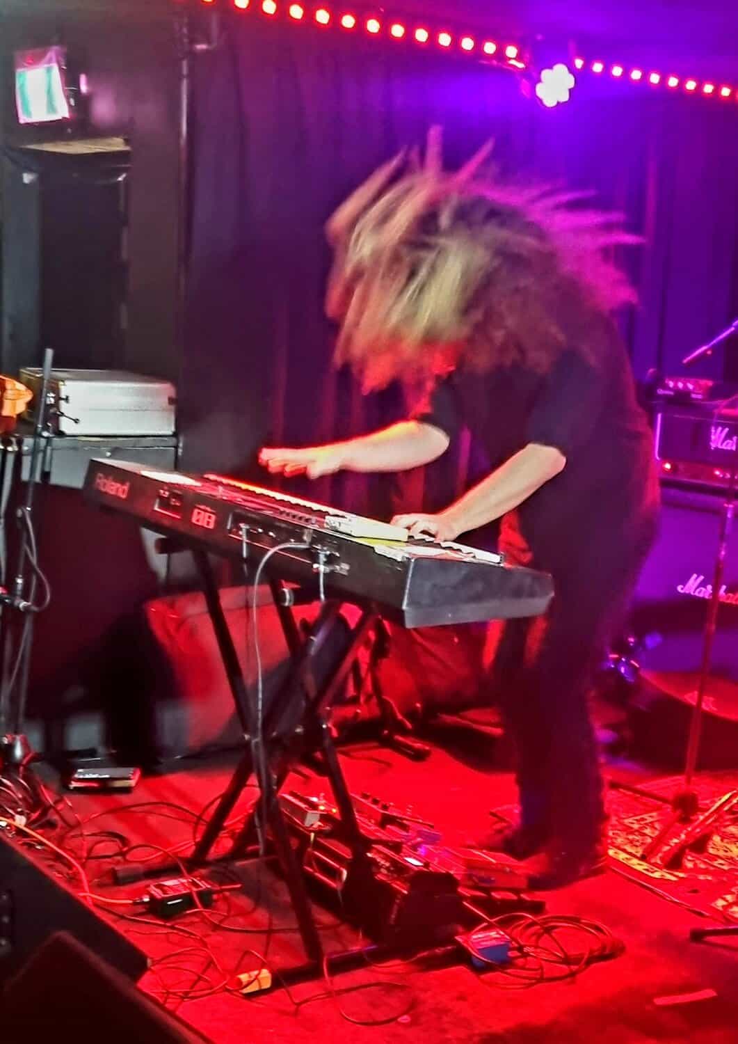 Fresh from playing the recent 1:12 FEST, Du Trois are a four piece featuring (from Cut Shapez) Jard on Guitar/Vocals, sporting a post-Halloween look, with bassist and a keytarist, alongside, dressed in a 70s US glam punk style, think The Runaways, let’s not forget the drummer. Playing a  mixture of protopunk and guitar epics, the keytar is the feature that steps them up musically, actually the singer’s avaristic manner, overblown manner is florid, entertaining somewhat.  Du Trois are a little unrefined, though their slow song, not slow song, is the one that steals the night. Looking forward to seeing them again.