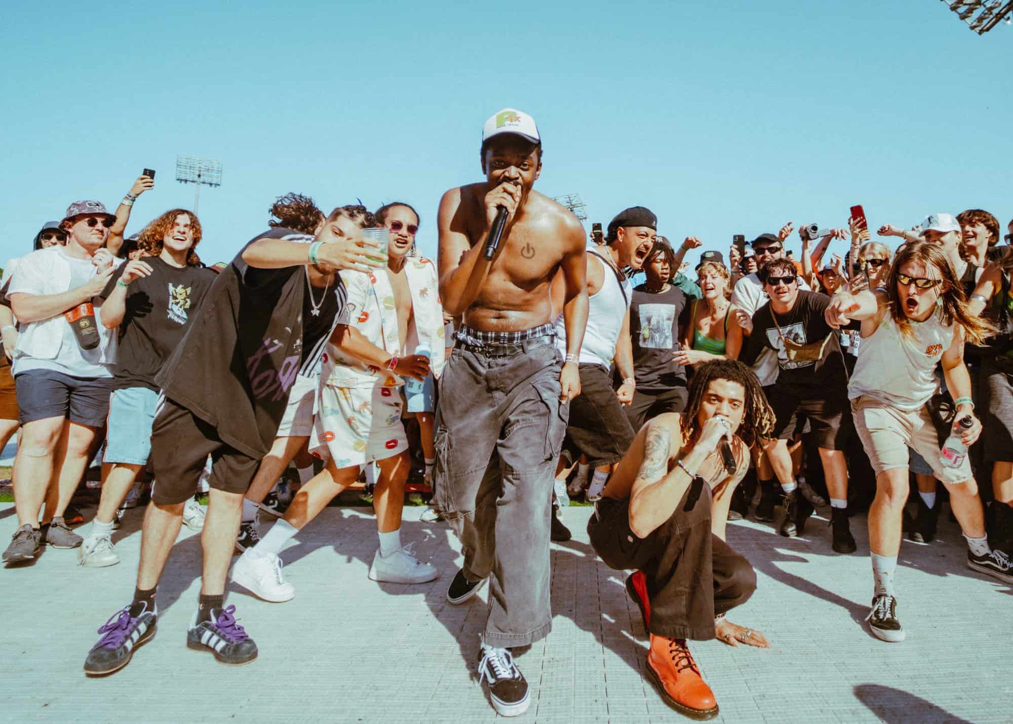 As I make my way back to the main stage Dominic Fike’s band jogs on to mild applause. However, the crowd screams as Dominic himself confidently walks on moments later. Not only does he write killer songs he’s an entertainer through and through, sharing anecdotes, making jokes, and accepting a very small Spiderman hat from the audience. Towards the end of the set, he even jumps into the crowd during 3 Nights, his best-known song, letting the audience sing it in its entirety.