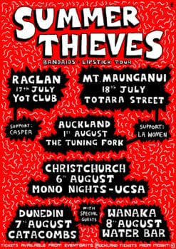 To celebrate the release of their new EP, Summer Thieves will embark on a nationwide tour beginning July 17th in Raglan and finishing up in the tranquil surroundings of Wanaka. Support includes LA Woman, Casper and more to be announced! Summer Thieves continue to dominate their spot as one of Aotearoa’s must-see acts, so don’t miss your chance to catch these guys live! See below for full dates.