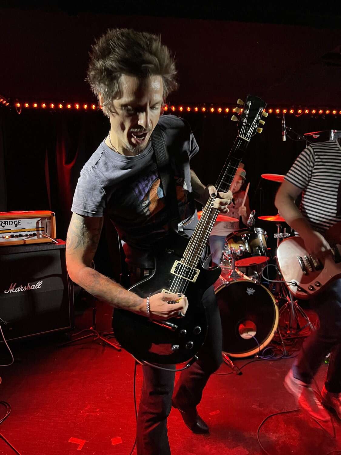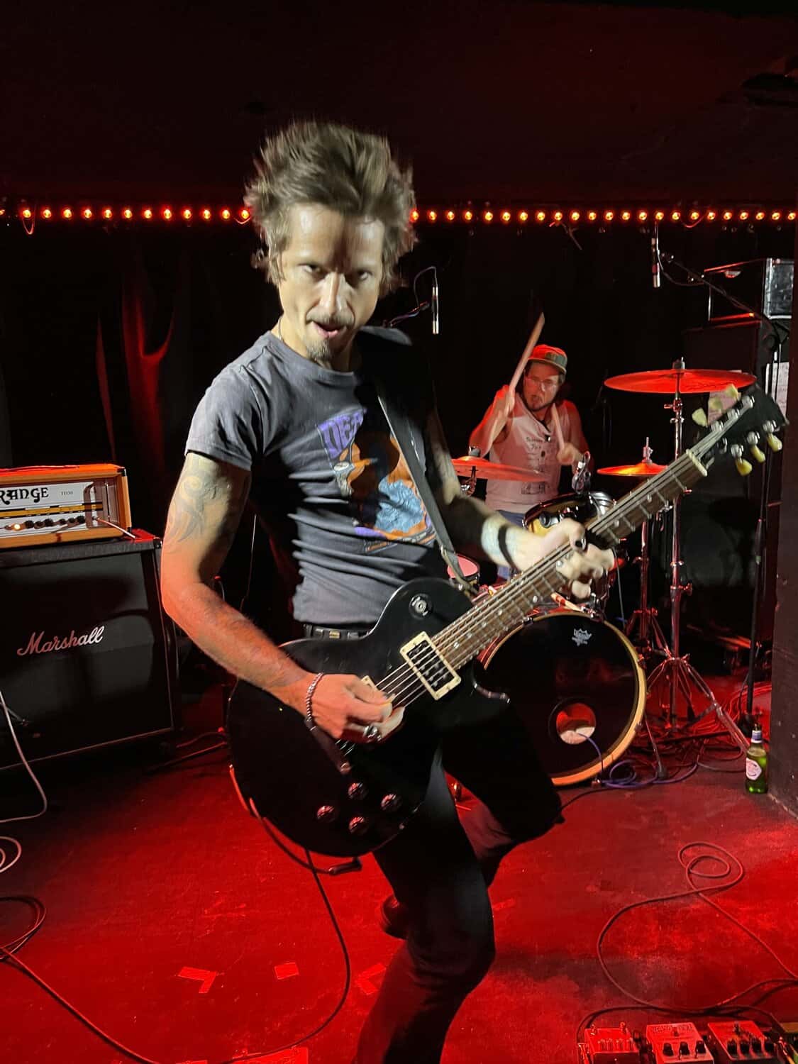 The surprise of The Ramones I’m All Screwed Up (Brain Drain 1989) is a crowd pleaser and pleasure. Their robust, crafted set includes selections from Dancing Spots and Dungeons: Suffer, Spell in The Night and the magnificent Time junkie, the newer songs, including their latest release Don’t Catch Me, a ramblin rocking ballad and the encore Blue Evening Goes away. Throughout the set, there is definitely a retro 1970s pre-punk vibe and laid-back connections with the audience, with bassist Josephine asking for weed and offering a promise to be your friend and hopefully a promise by SUO to return.