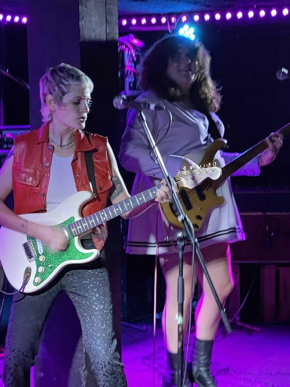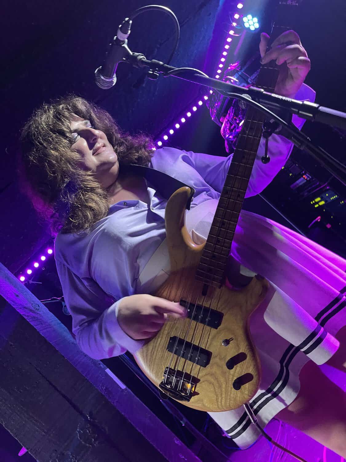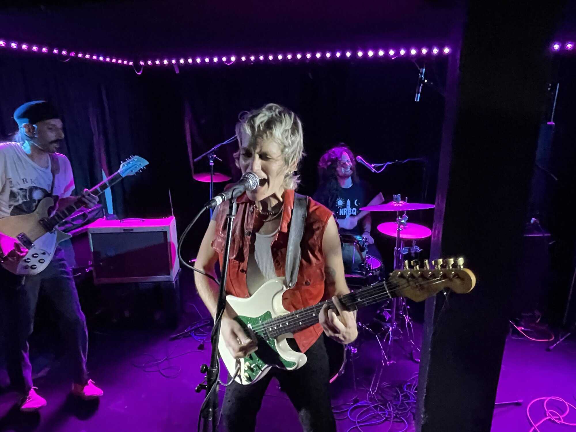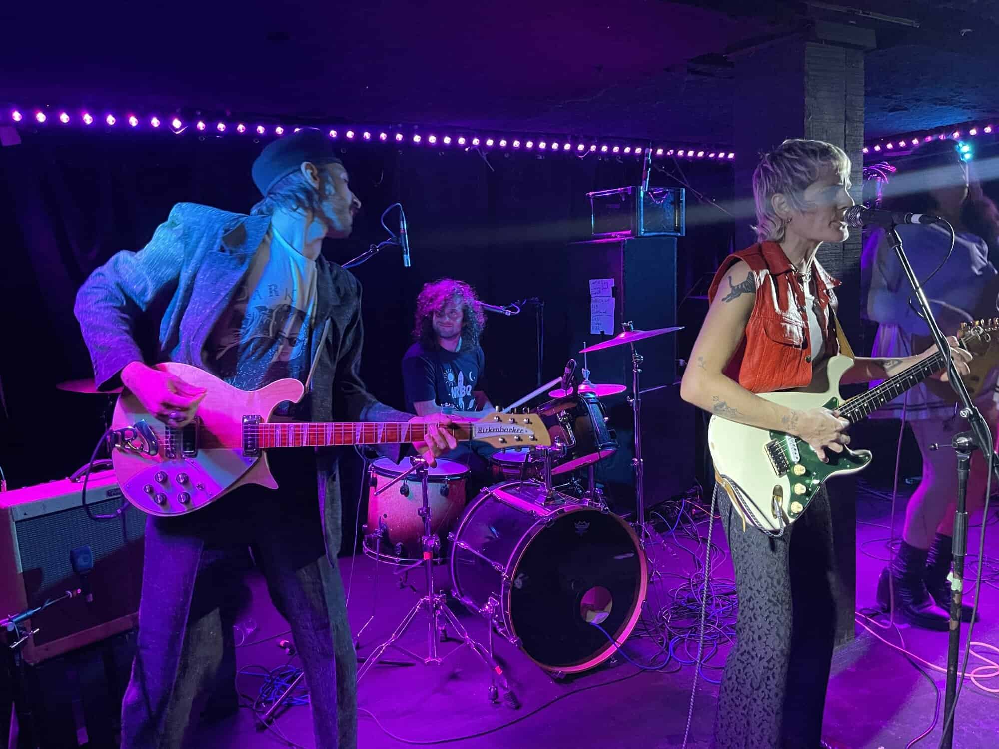 Onstage, Saara Untracht-Oakner is joined by bassist Josephine (The Josephine Network), drummer Max Hersh (Dirty Fences) and Nat Brower all of whom have their own or another group. Onstage they project all manner of punk glam style, (Saara’s shoes are the bomb) circa 1974 just as punk is being created out of the collapse of Woodstock, and the disillusionment caused by the Vietnam War.