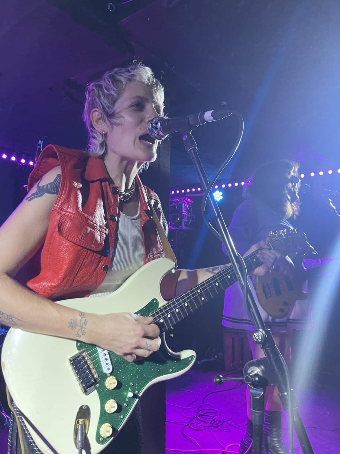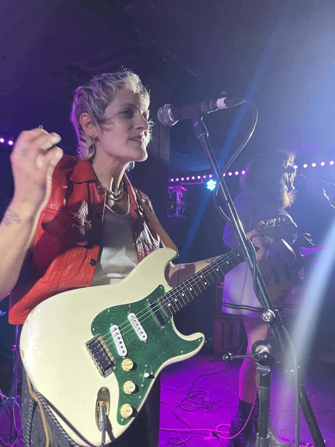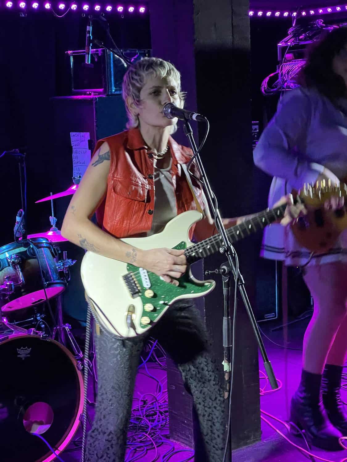 Saara Untracht-Oakner’s Brooklyn drawl is endearing, and fruitions comparisons to Blondie and early GoGos, as SUO play through their first two songs, it’s clear that they have grown on from the much poppier sound of their 2018 album Dancing Spots and Dungeons. The dominance of the guitars in a style characterised by comparisons to early Tom Petty, Mink De Ville and Television, delivers a much edgier SUO.