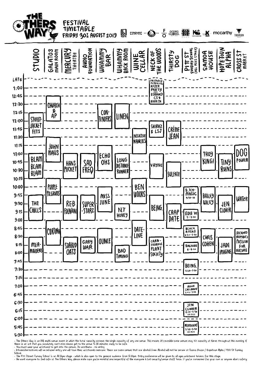 Wellington sideshow go-ers: you can pick up your Others Way Wristband on Saturday 31 August from either Cosmic or on the night from the venues.