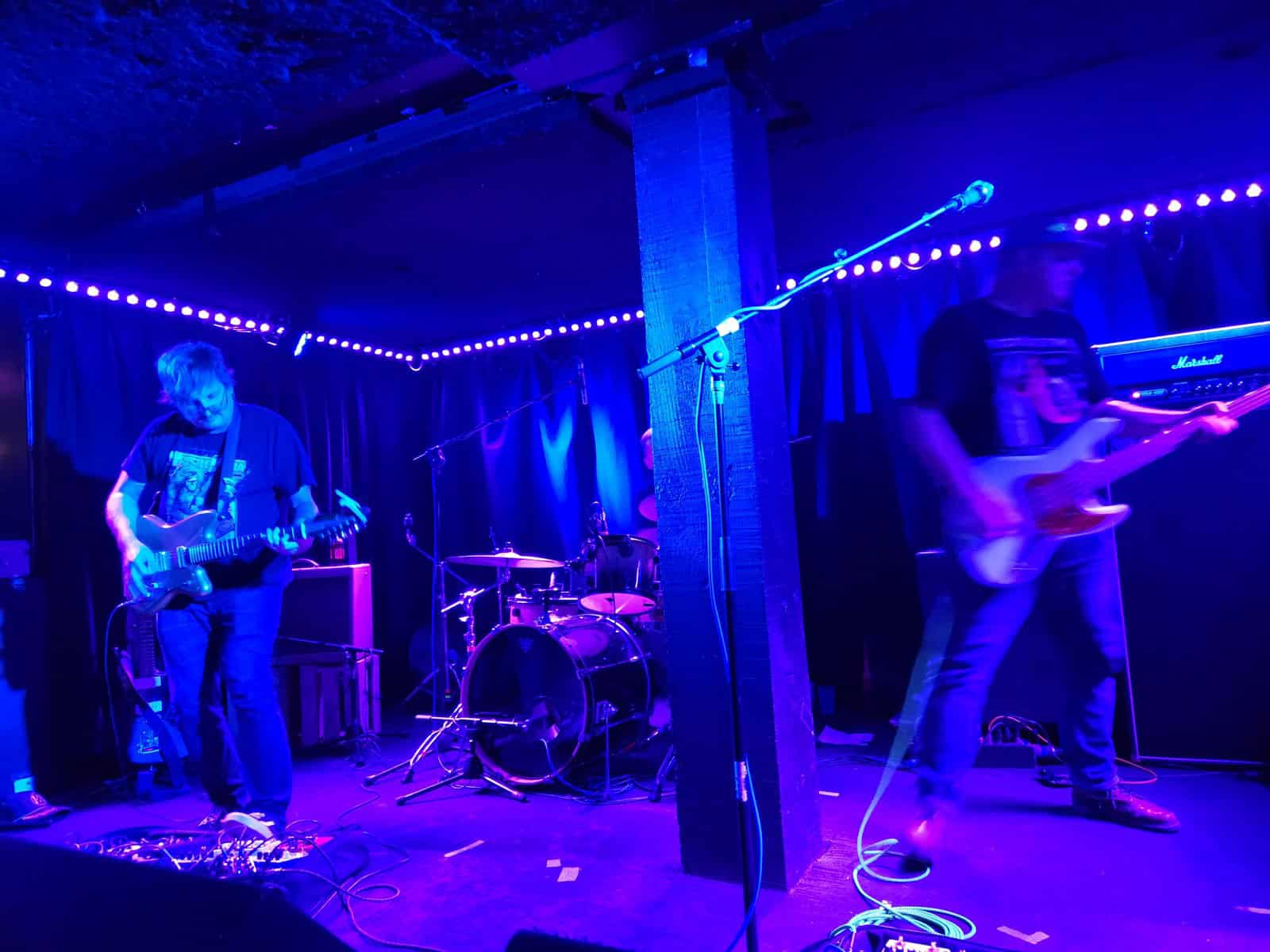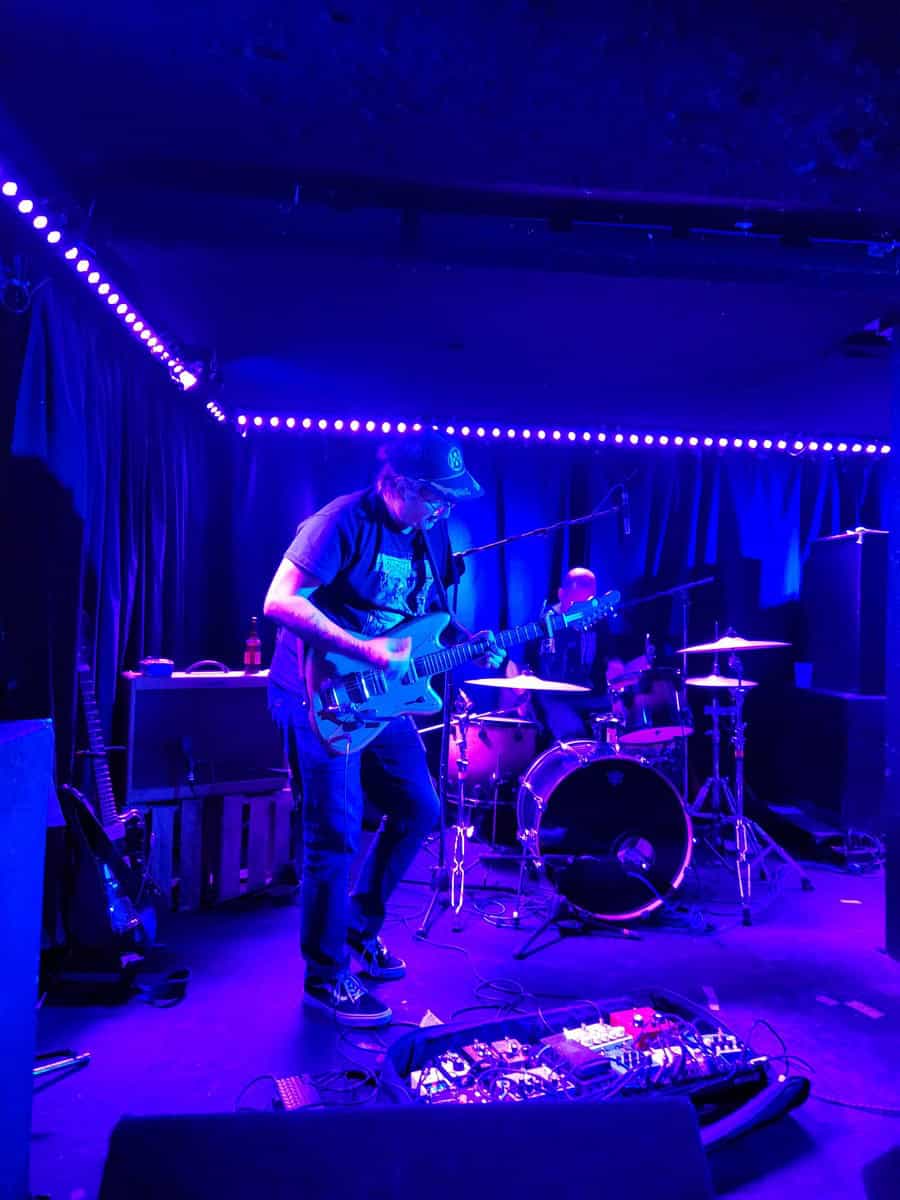 And South Locust features large in tonight’s tight set, the shared vocals (between bassist and drummer) again maintain fluidity, ensuring no sense of malaise. The band built up a wall of sound, and then, brick by brick took it down. Guitarist, nay maestro, Brian Purington, once again created mayhem and magic on his instrument, enabled by his trickery on his own wondrous rack of abracadabra-ism boxes.