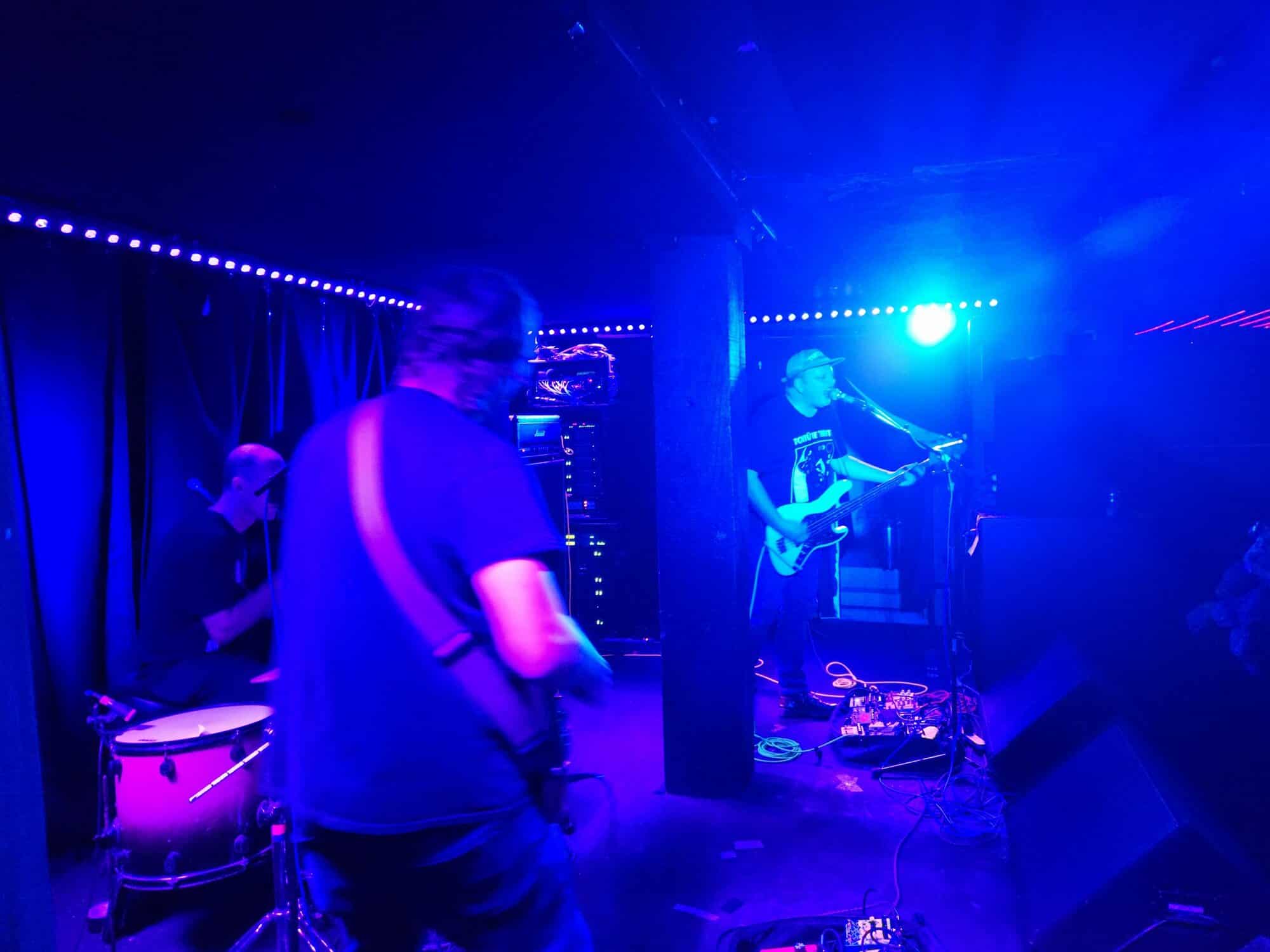 Being a three-piece means plenty of space onstage to move, and the audio barrage emanating demands attention as the drum-driven rhythms fill the moderately filled room. Comparisons with Krautrock royalty Neu are unavoidable. But it is the clinical and precise drumming, eclectic guitar work, simple at times excruciating throughout that are balanced by the formidable bass playing.