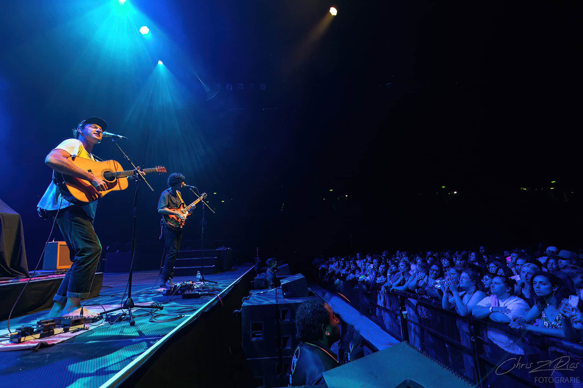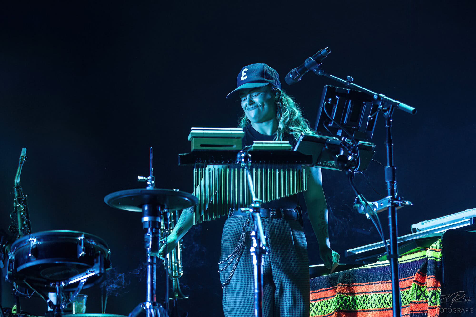 Tash Sultana came out on stage after a montage of home video of them growing up, from a wee bub all the way up to shots of them busking on Burke St Mall in Melbourne where they really came to prominence.