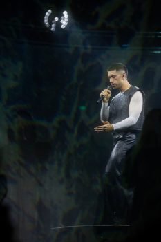 Spark Arena can feel vast and cavernous, but this show was intimate – as it needed to be given the aching longing and lovestruck character of Teeks’ songs. This intimacy was achieved with a central rotating stage and seating radiating out in ‘pizza slice’ geometry. Everyone could feel the man was, at some stage, singing to them.