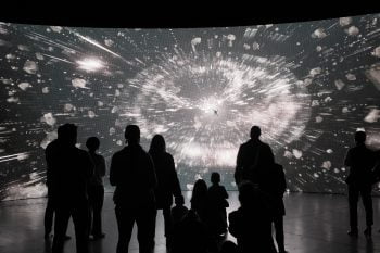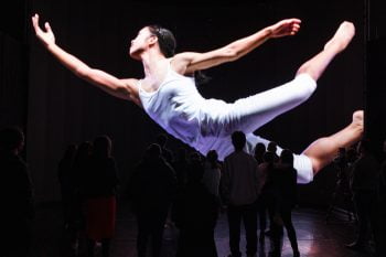 The audience stand as they’re guided through an ever-changing and evolving journey – from hyper-realistic dance performance to surreal animation. I found myself in the midst of apprehensive performers, listening to Ieremia’s pre-show briefing and warm-up encouragement session, making us  feel part of the performance about to happen. The audience of “The Art of Black Grace” is part of the performance – maybe not displaying the acrobatic and graceful skills of the dancers, but certainly turning around, moving their heads and wondering at the different images and stimuli in the fast-moving action. The footage constantly darts around the screens, as life-sized projections of dancers chase, roll, lift and leap in the 360° surroundings. It’s far closer to the feeling of being on stage with them, than of simply being in a theatre audience.