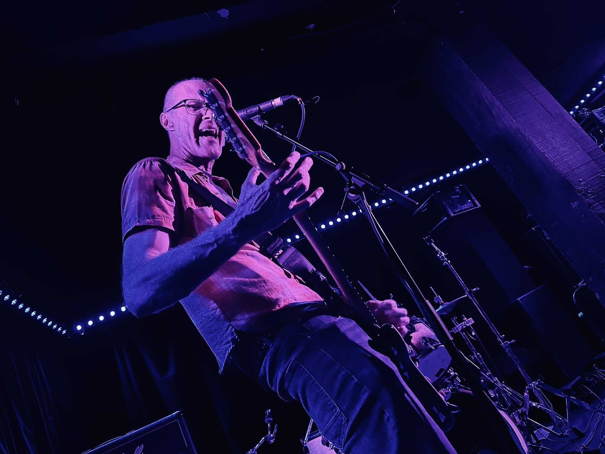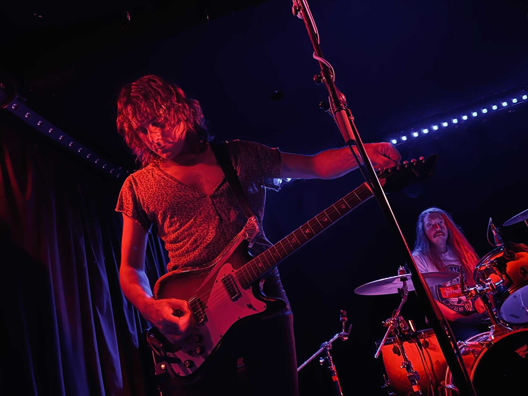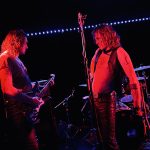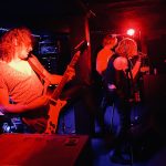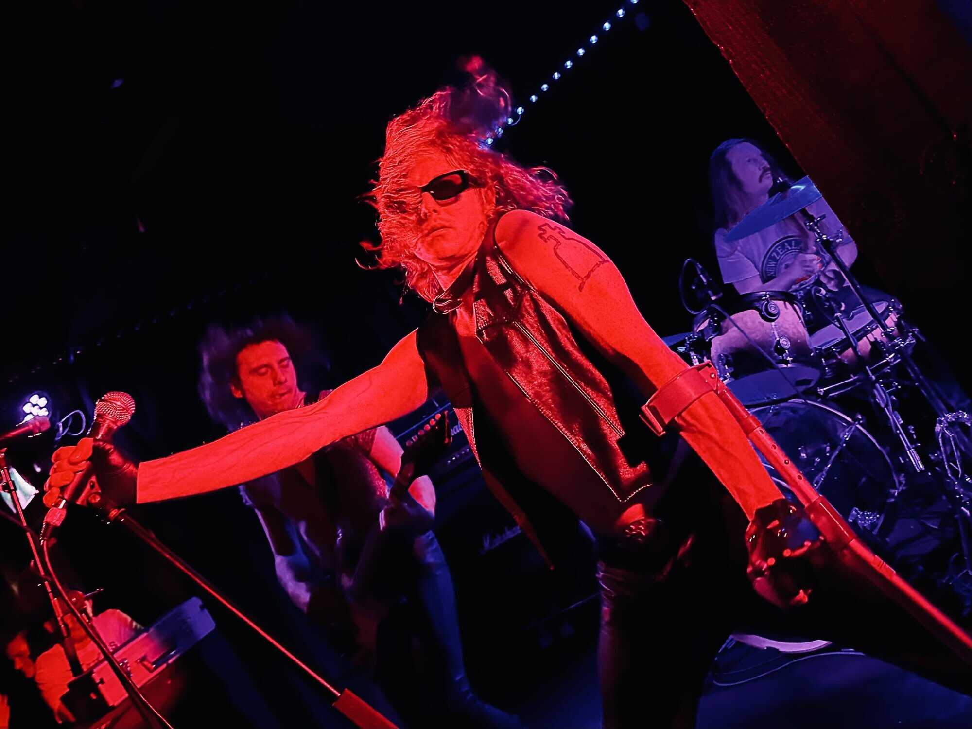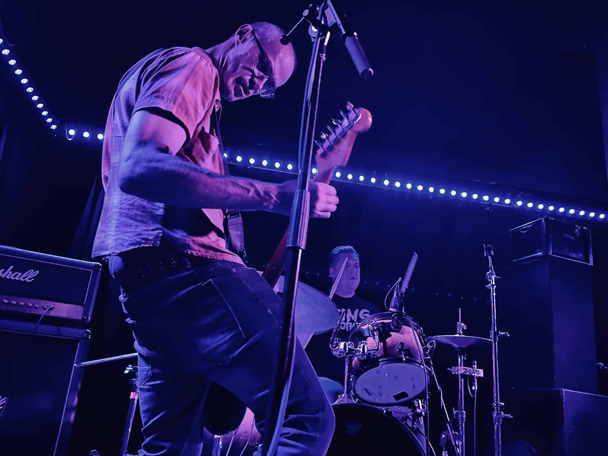 stand, he lifted himself off the floor whenever he ended up there. The band veered through the opener, “Tonight I’m Going to Rock It,” upping the excitement in the packed-out Whammy Bar.