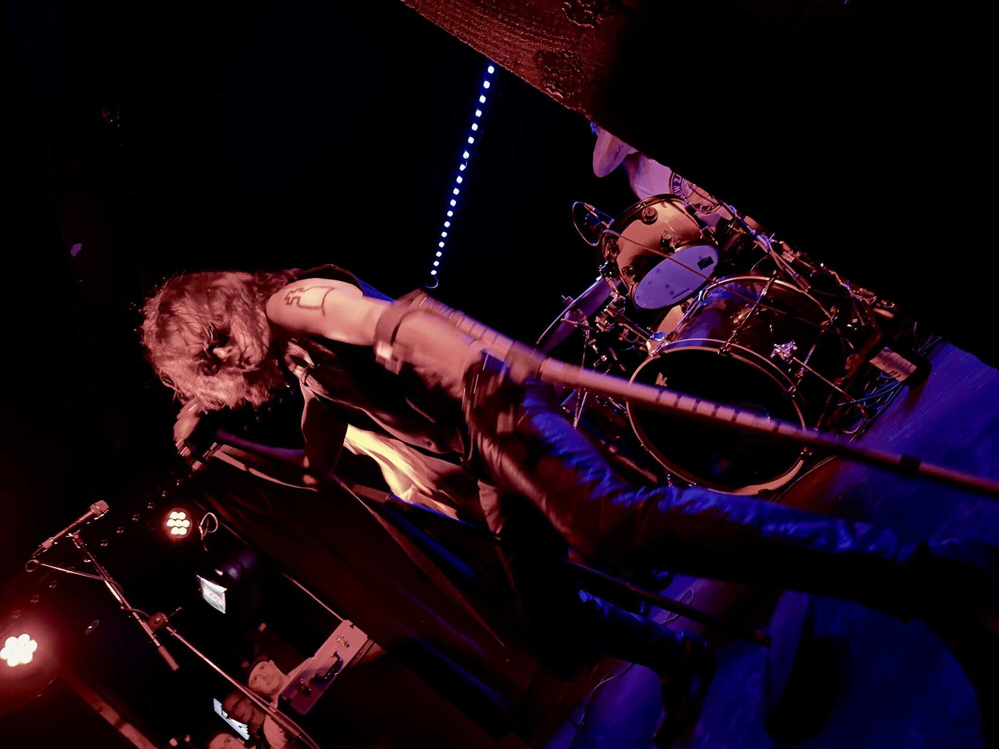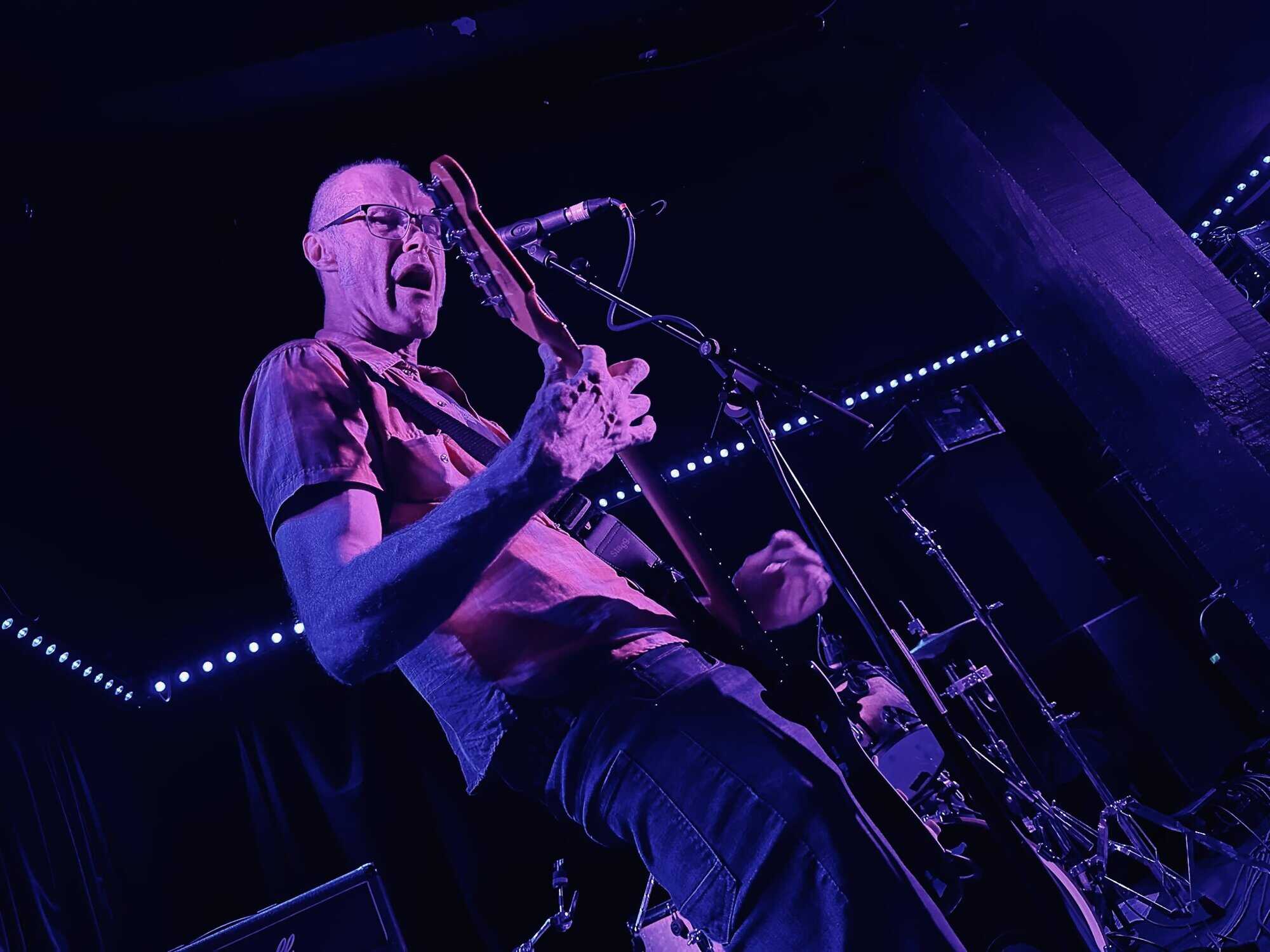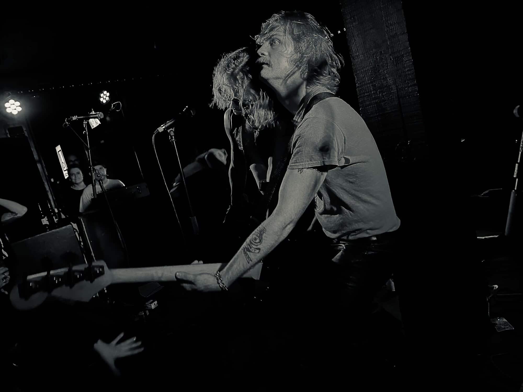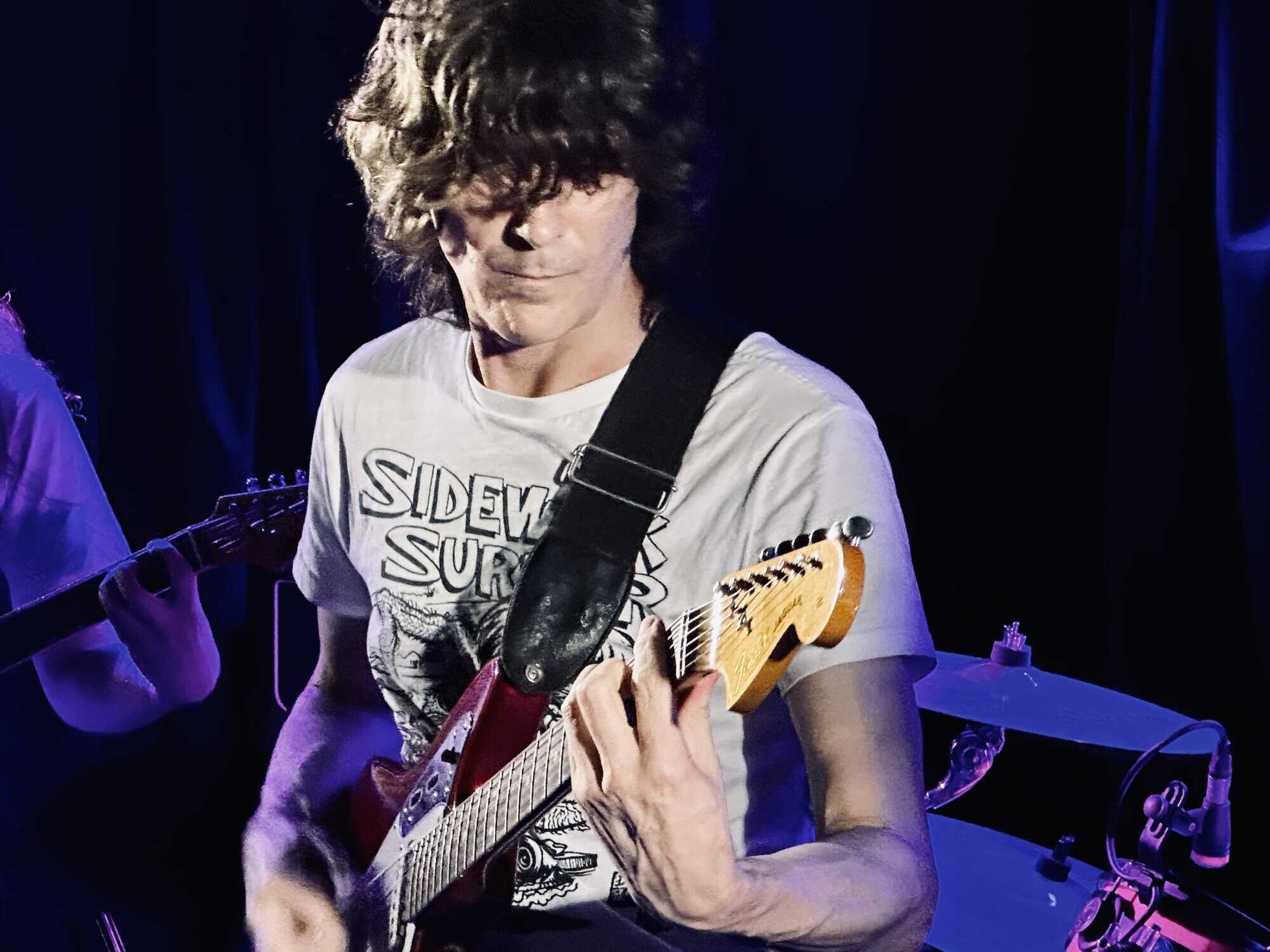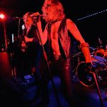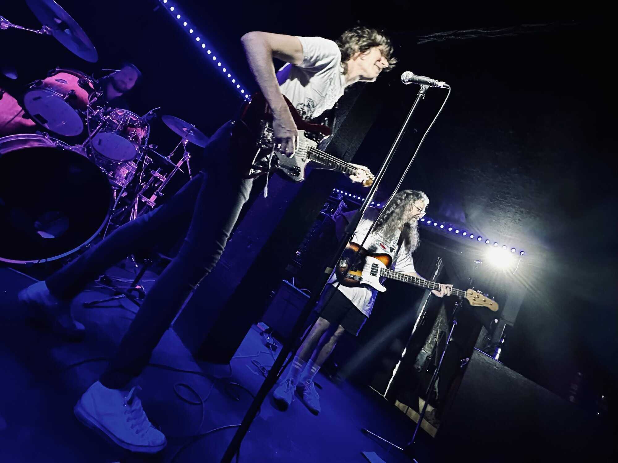 stand, he lifted himself off the floor whenever he ended up there. The band veered through the opener, “Tonight I’m Going to Rock It,” upping the excitement in the packed-out Whammy Bar.