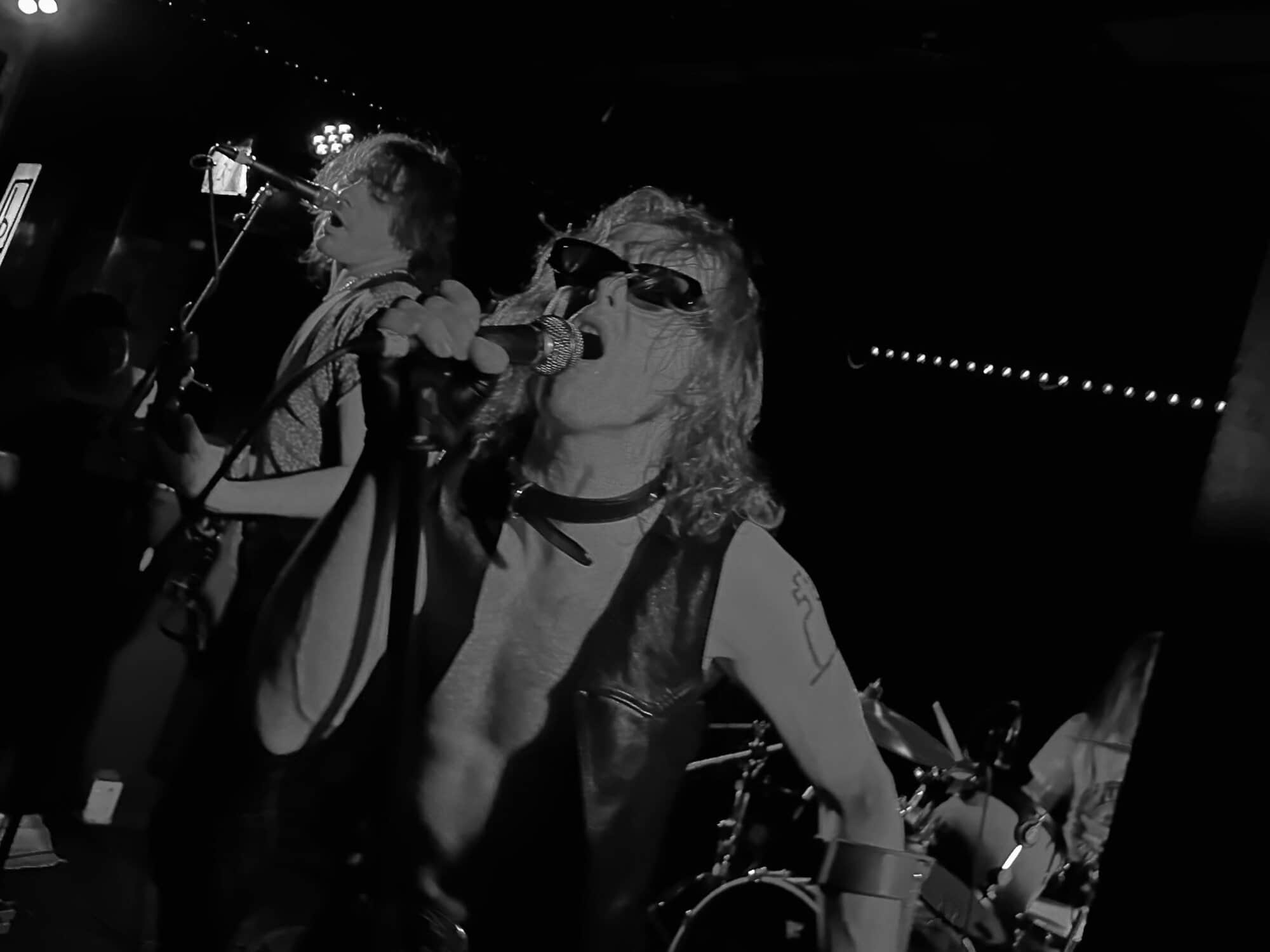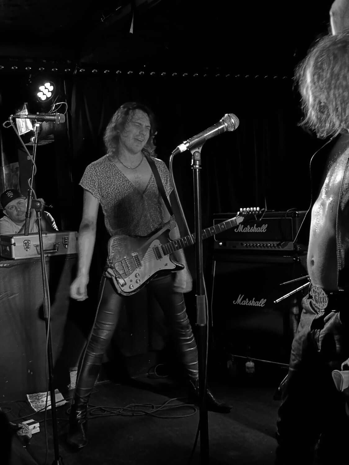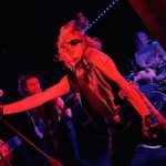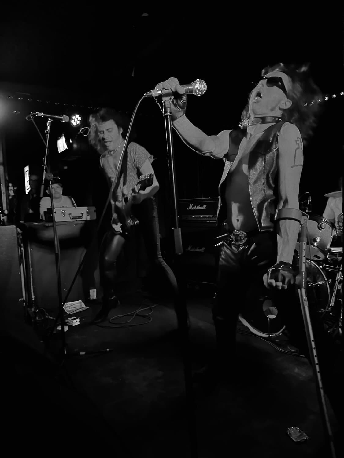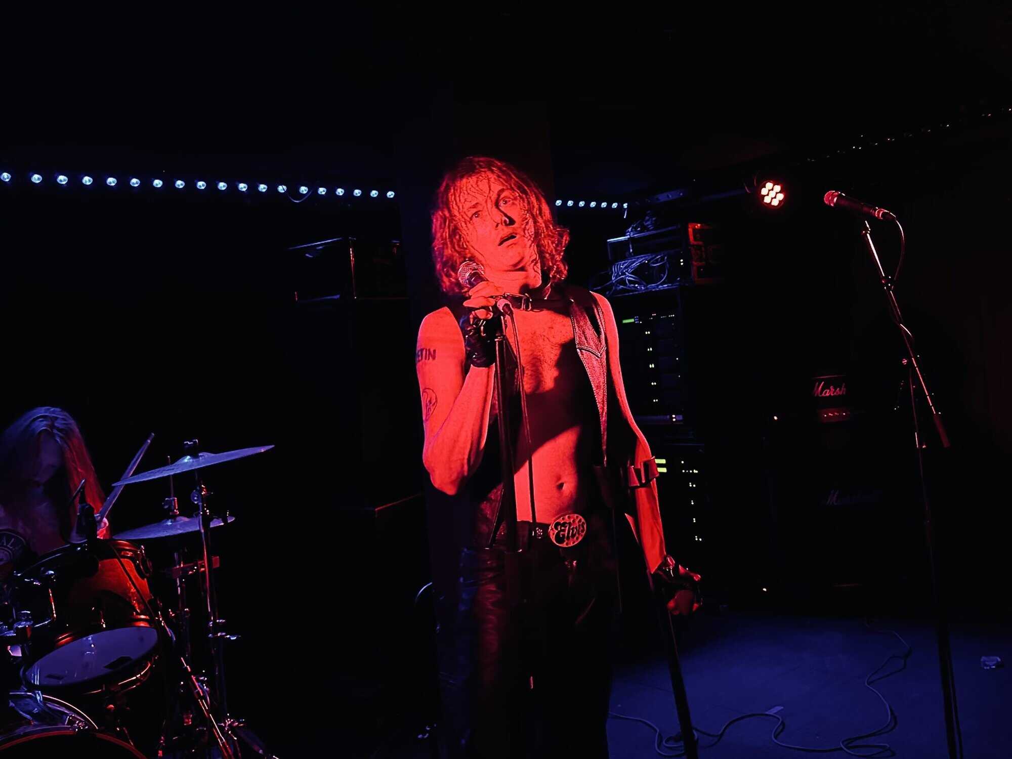 stand, he lifted himself off the floor whenever he ended up there. The band veered through the opener, “Tonight I’m Going to Rock It,” upping the excitement in the packed-out Whammy Bar.