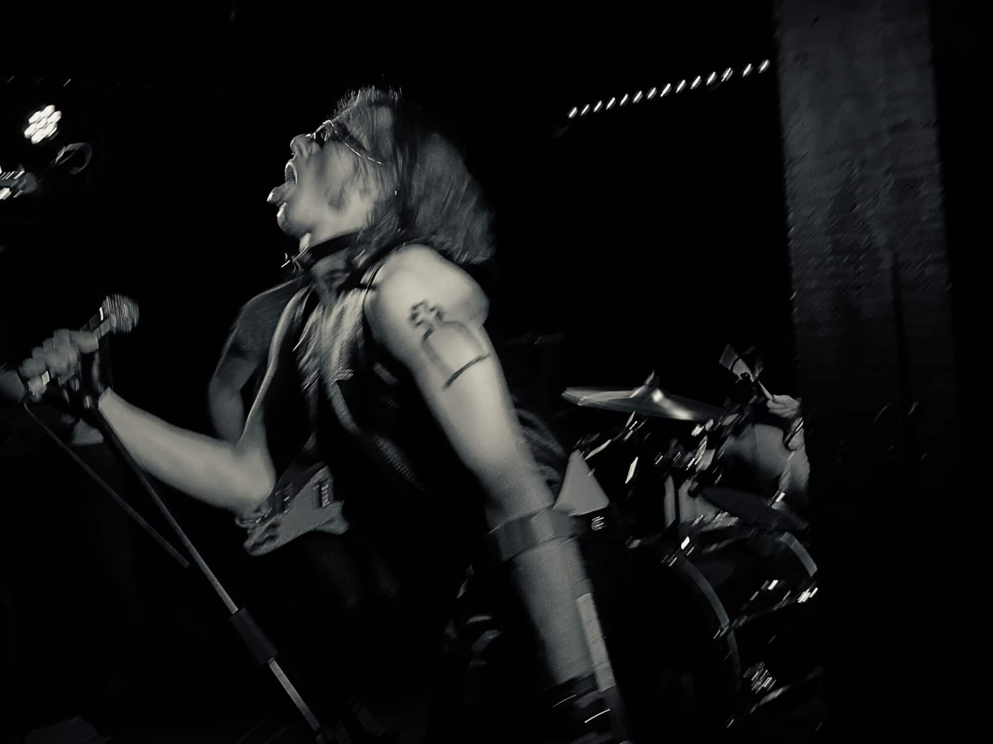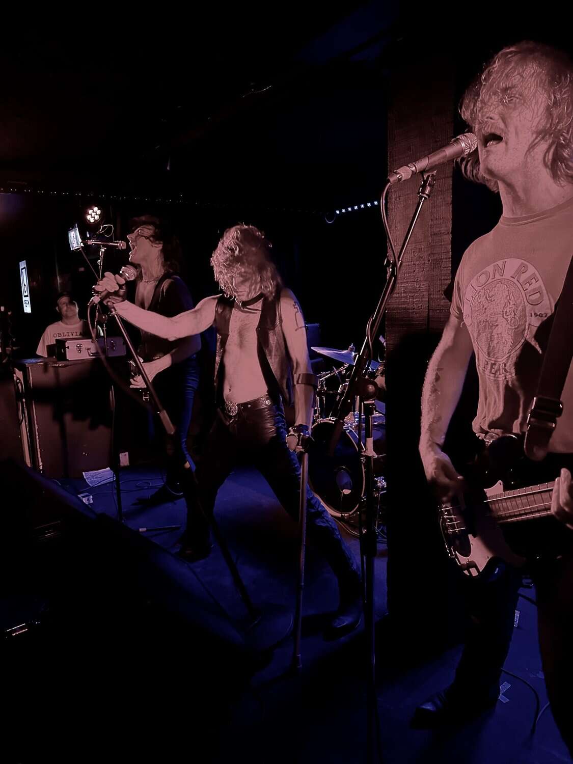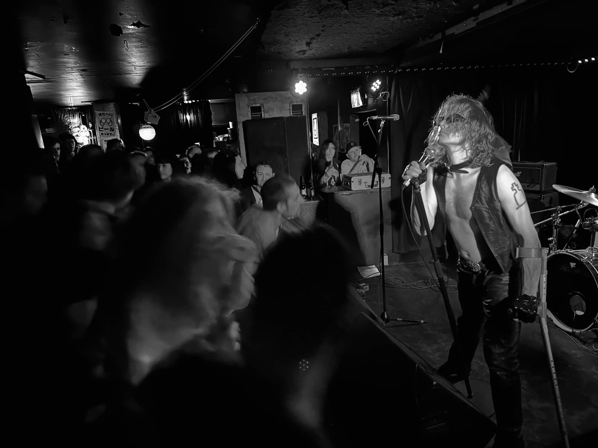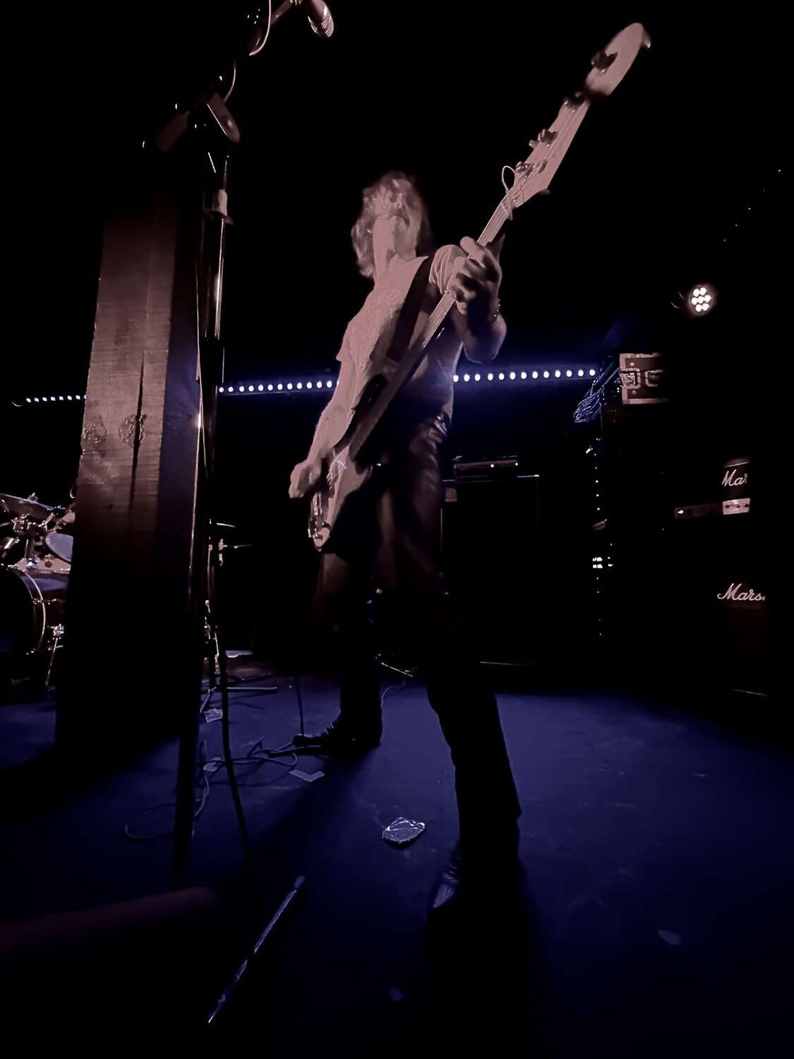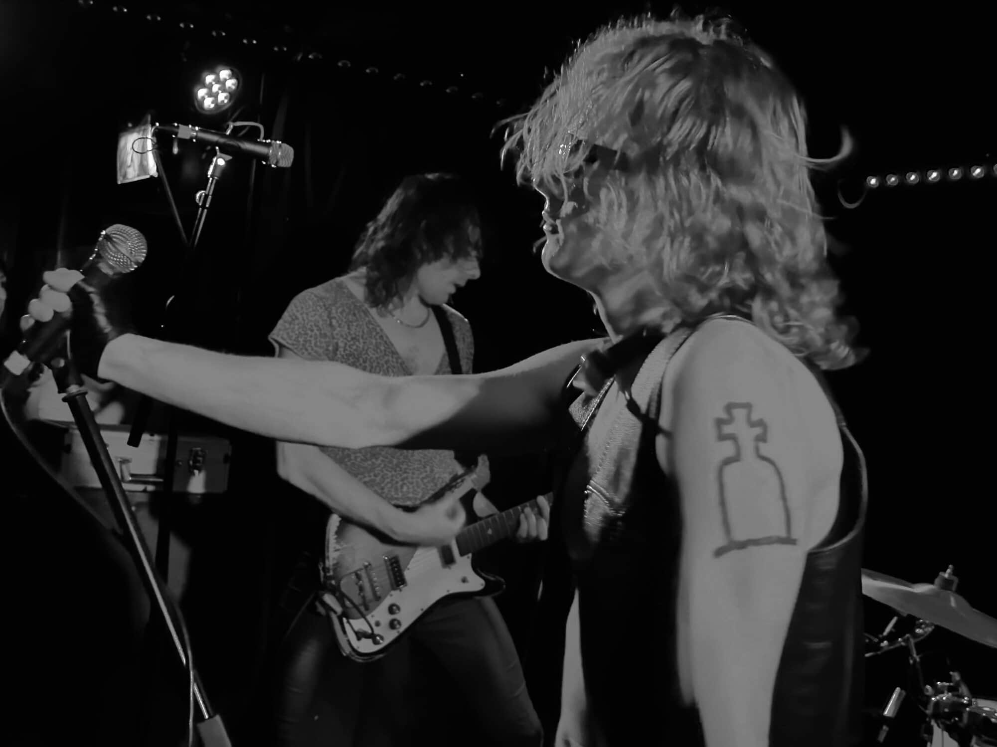 stand, he lifted himself off the floor whenever he ended up there. The band veered through the opener, “Tonight I’m Going to Rock It,” upping the excitement in the packed-out Whammy Bar.