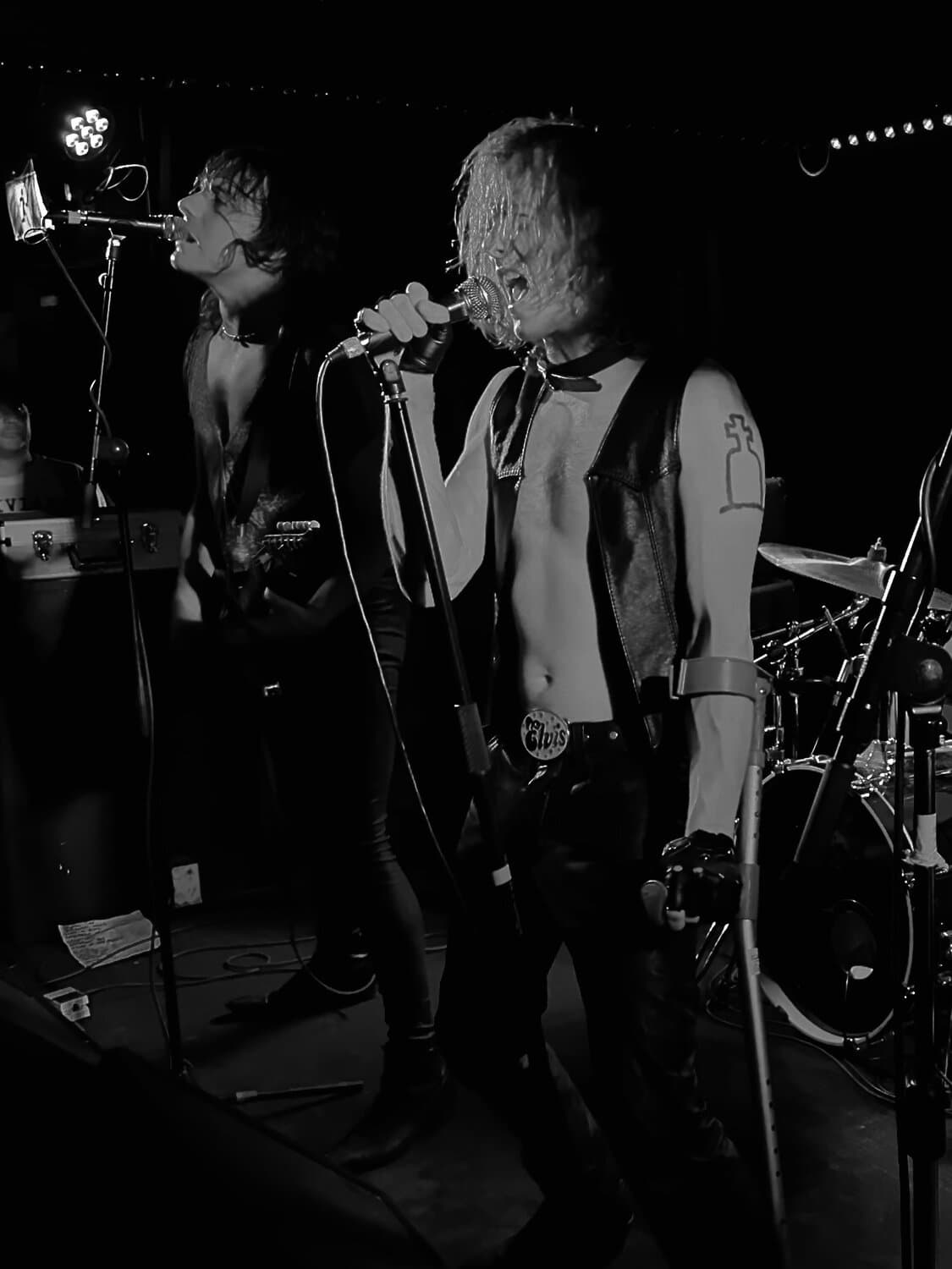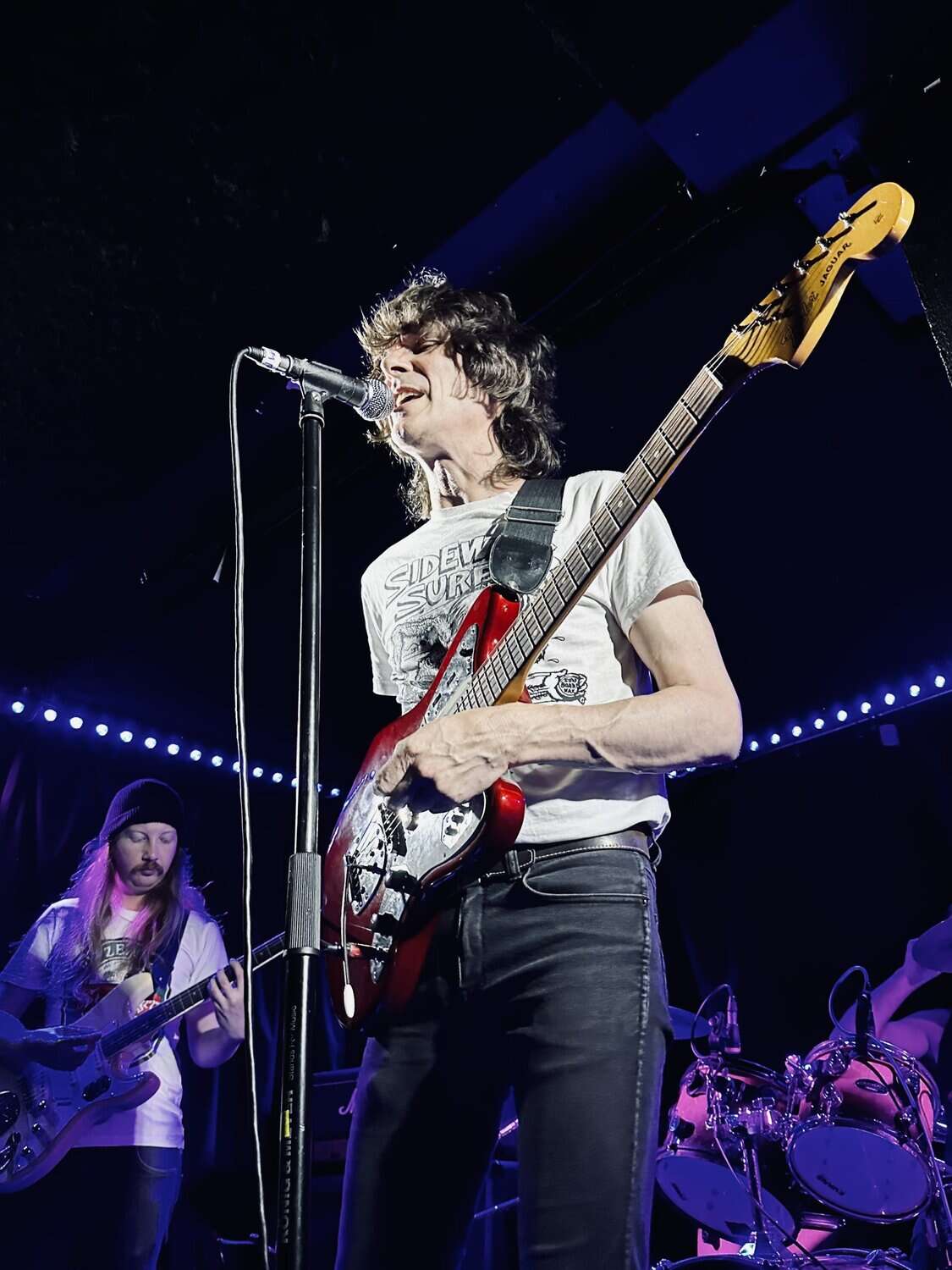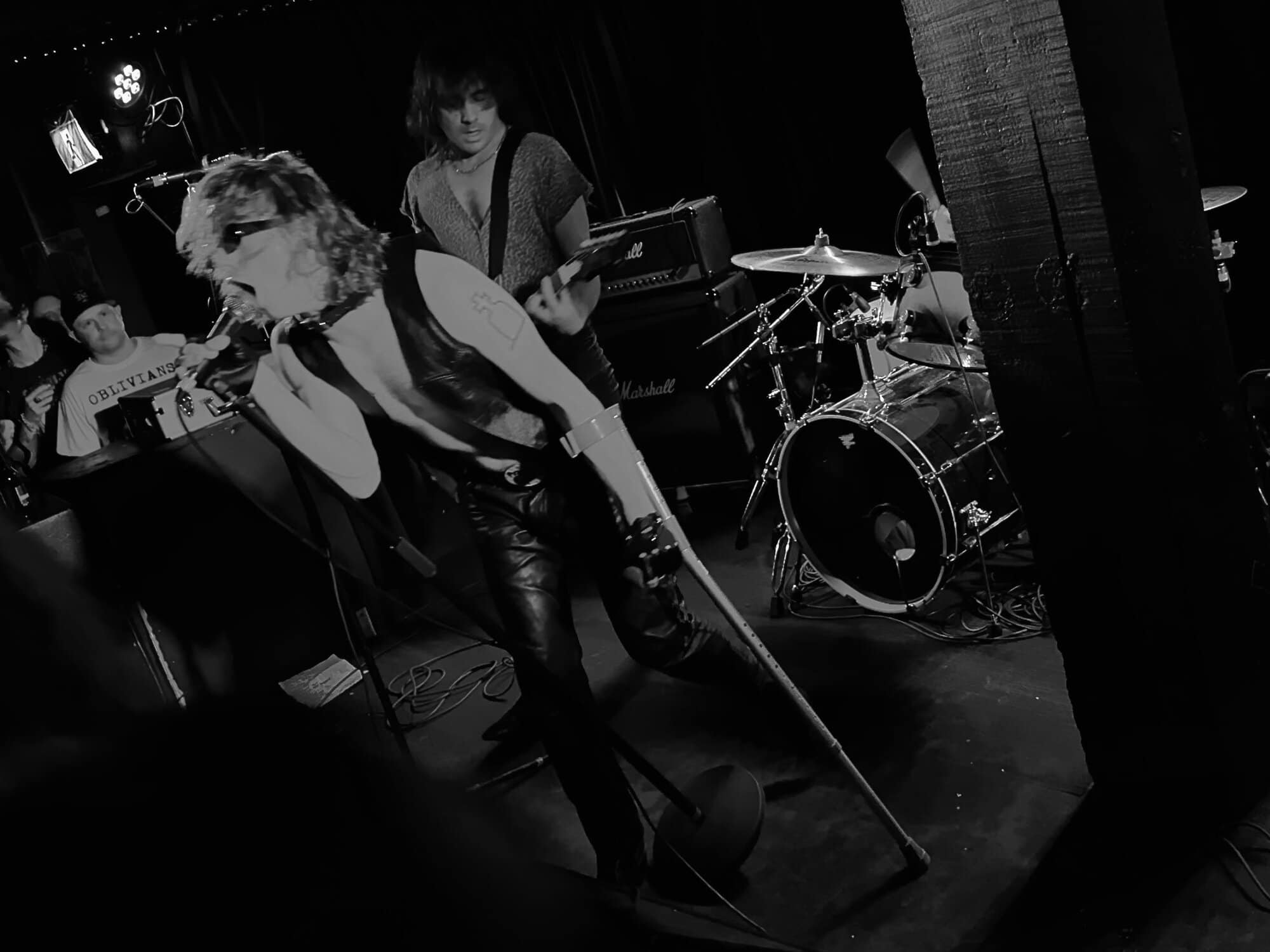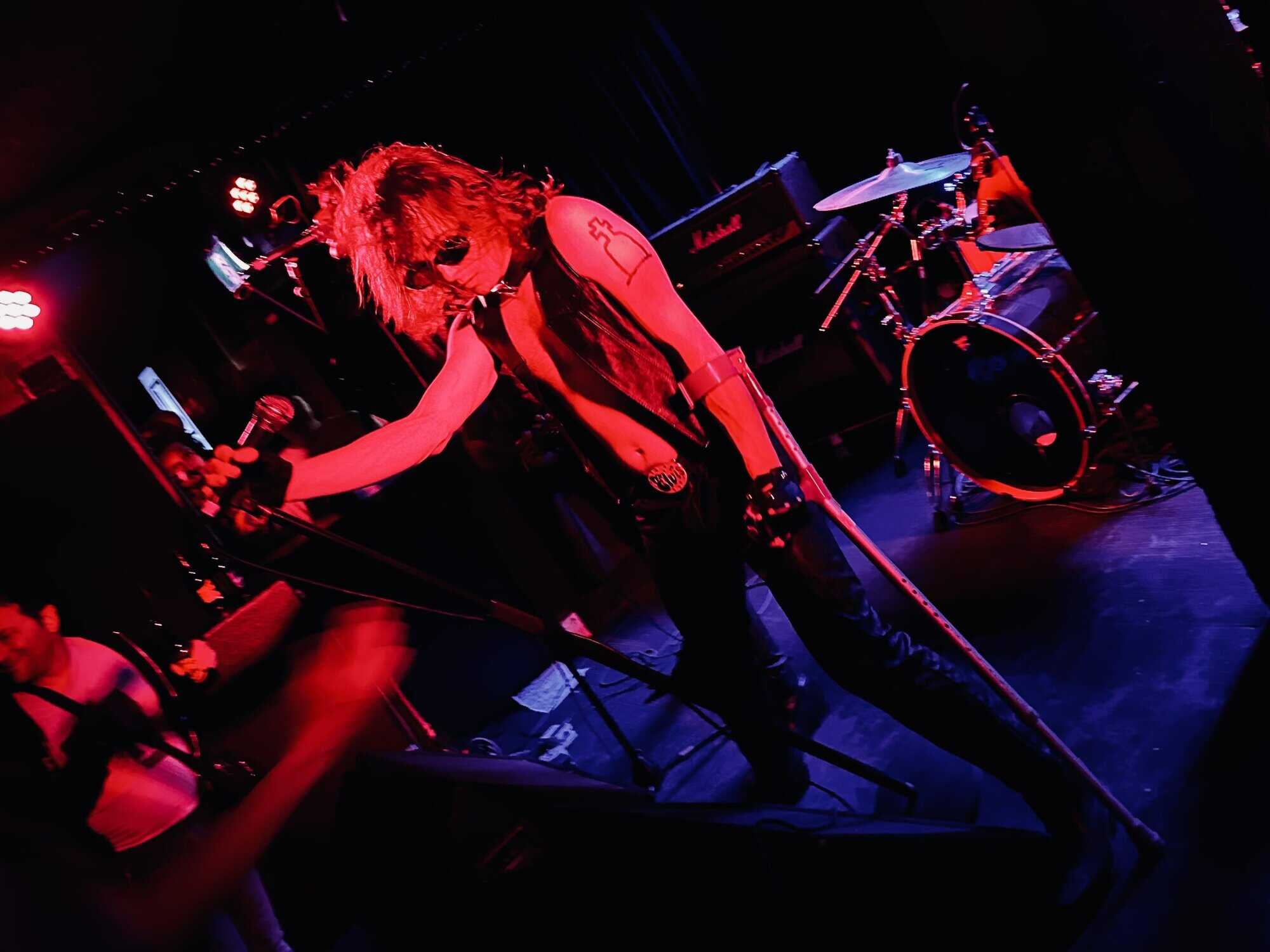 The Cavemen stumbled onto the stage, quite literally. Frontman Paul Froggatt was sporting a crutch, which he’d use to propel his body around the stage, brace against the ceiling, and fling about in a rapidly growing mosh pit. With secondary support from the mic