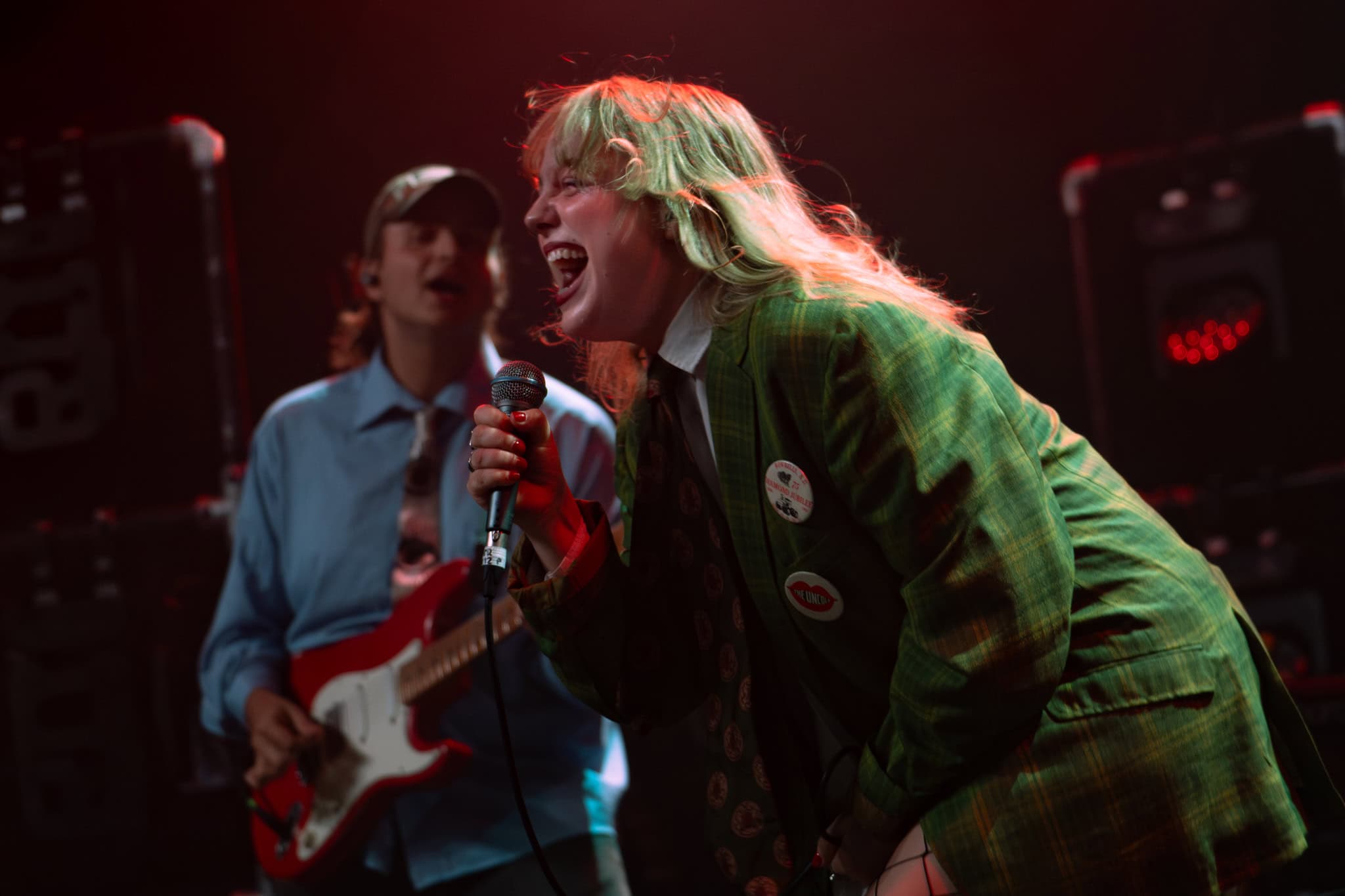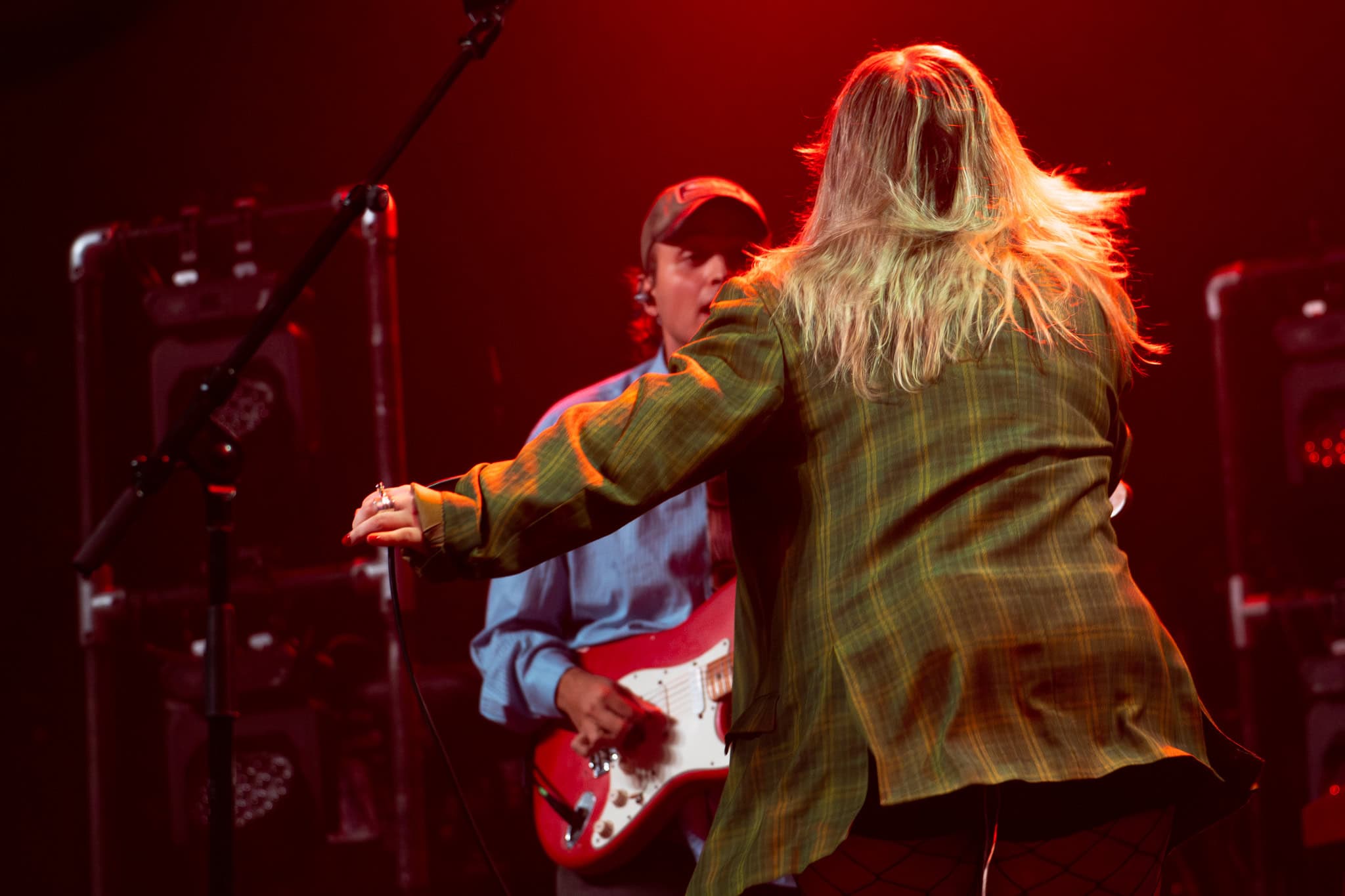 She introduced the song as being about obsession so intense you’re not sure whether you want to kiss someone or kill them, and the delivery matched that tension perfectly. There was expert control in her distortion, a patience in how Angel Things later built under cold blue lights, her vocal drifting ethereal before letting the guitars claw their way through. Kerosene, bluntly described as being about “a fucking coward,” carried a boldness that could have faltered in a room waiting for something bigger, but instead drew people closer.