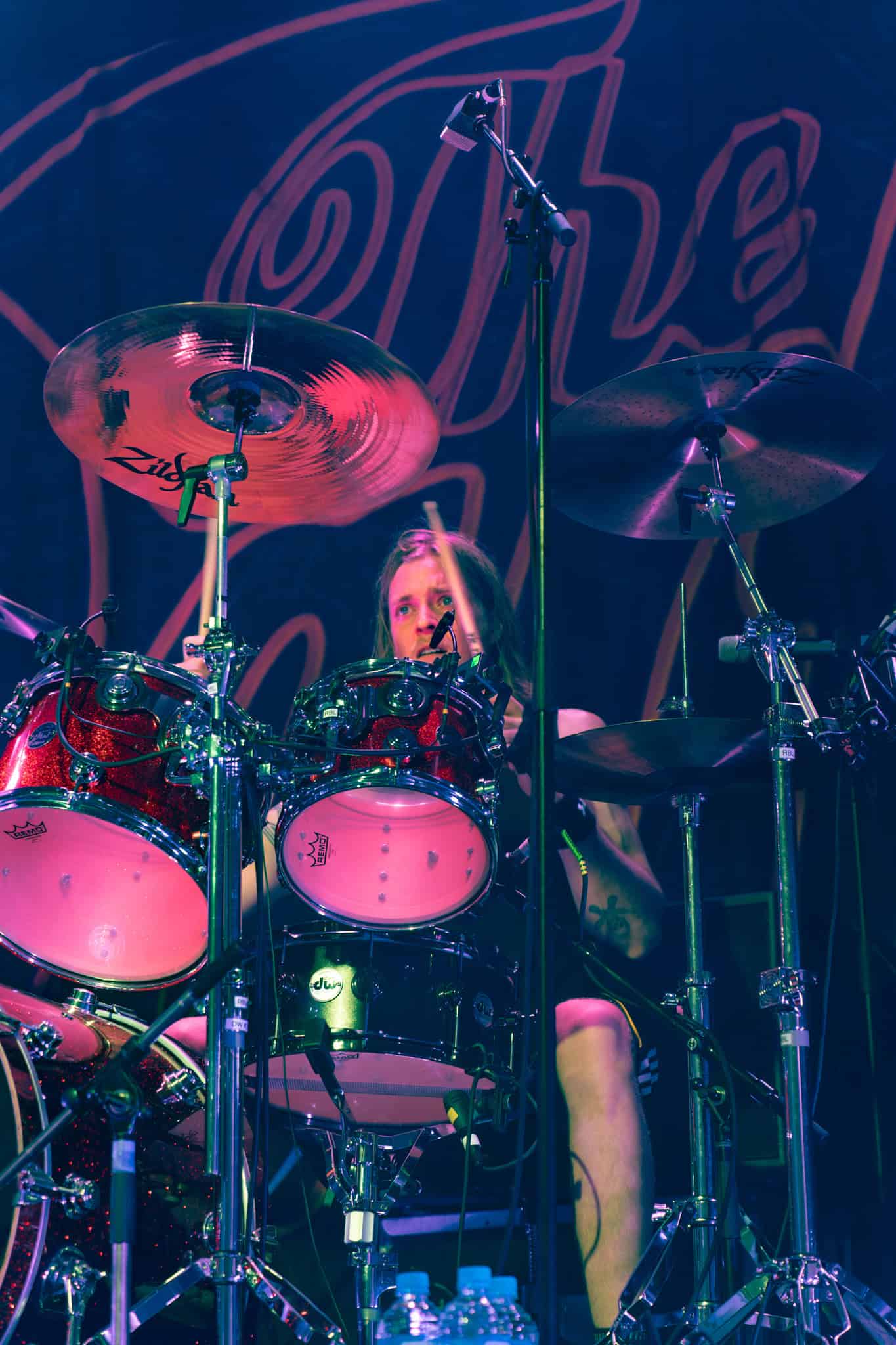 RAGEFLOWER, Sydney’s Madeleine Powers, stalked onto the stage in a green tartan jacket that nearly melted into the accompanying drum kit, swirling eldritch green as though it had been dipped in neon slime. Visually captivating, no arena-sized ego, just a grounded sincerity that immediately translated into a killer sound. Hands On and Sign of Life settled into the room with thick, rolling drums and a guitar presence that felt physical rather than ornamental. Push Pin was a stunning standout and landed heavy, the kick drum punching cleanly into the chests of the crowd while her voice, deep and textured, hovered somewhere between yearning and menace.