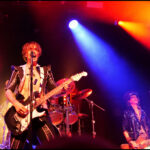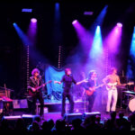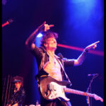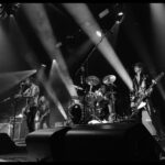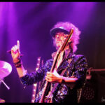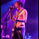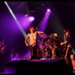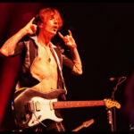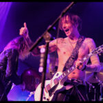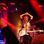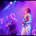 But it’s not just a feast for the ears, the eyes get their fill too. The Darkness loves costumes. Justin, the sexy vagabond poet struts in draped in an open cropped striped jacket with science fiction style shoulder pads and skin tight trousers. His cheeky smile invites you to take it all in. Frankie Poullain, on bass, like a hallucination from the 70s and 80s is wearing a black sequined jacket, black leather pants and a fro held back with a sports visor. Drummer, Rufus Tiger Taylor, is rock royalty, his father is the drummer for Queen, which is why his middle name, Tiger, was bestowed upon him by Freddie Mercury. He starts off in a simple black band T, but by the encore is nearly naked so overheated he must have become keeping up the intense hammering rhythm. There was lots of leather and long hair swinging from Justin’s brother Dan Hawkins, on guitar (bringing the total number of Hawkins and brothers on stage tonight to four) to complete the rock ensemble. Together, The Darkness creates a theatricality that is magic, entirely enveloping the crowd in the experience.