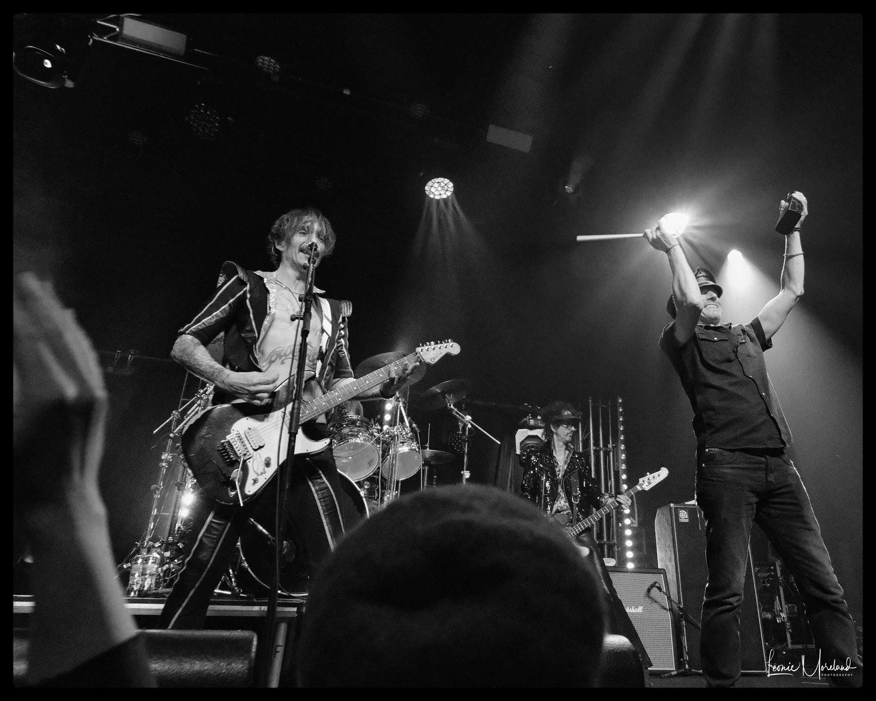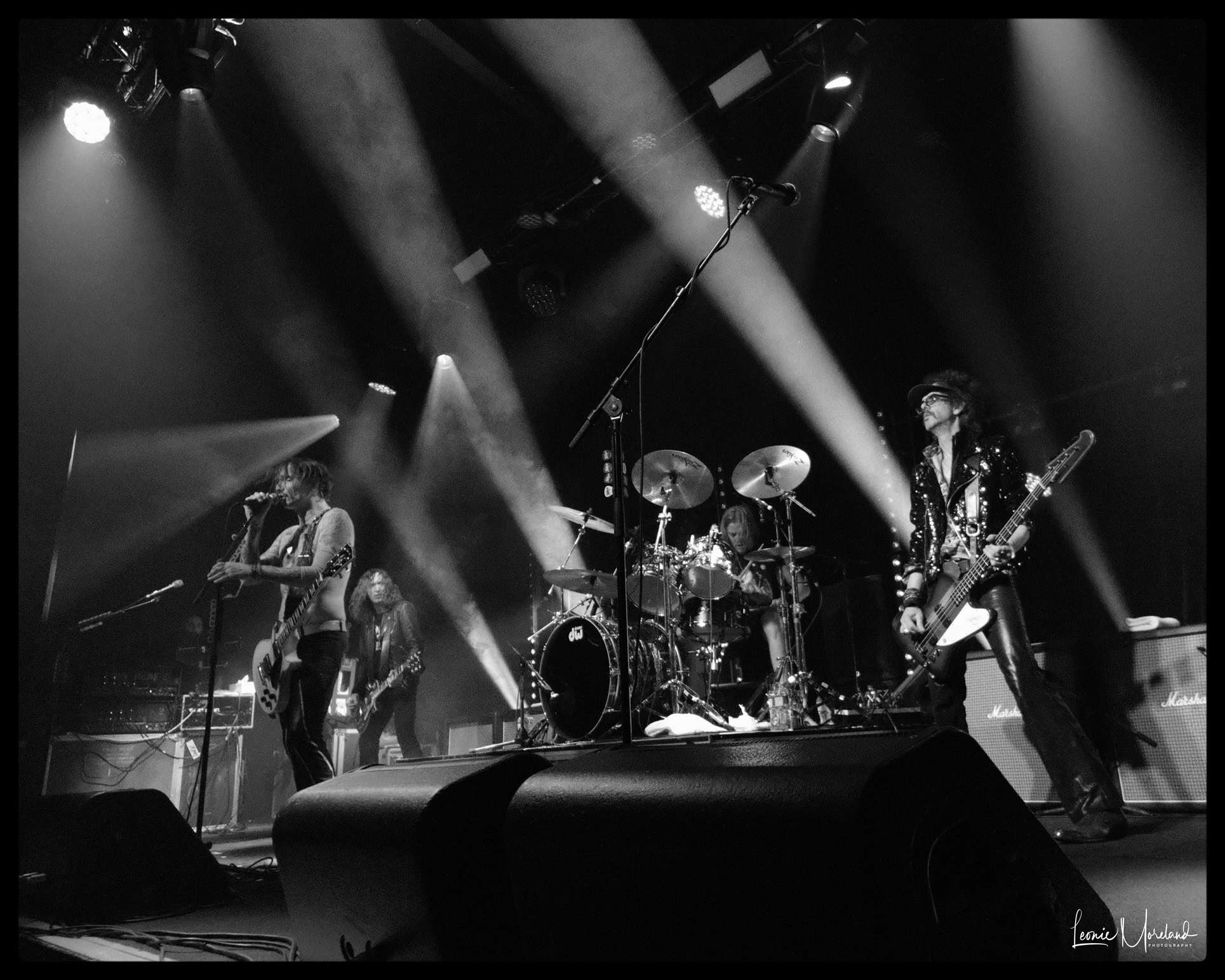 Zak Hawkins contrives to be a cool hybrid of Jim Morrison and Mick Jagger, owing both a lot in inspiration and influence. He’s a talented frontman and certainly has the chops for the job. Brother Jesse Hawkins keeps the energy high, he has a dynamic charisma that stands out on stage. The solid rock lead and rhythm guitars alternate between laid back and driving rhythm backed by Yoni Yahel’s drums. I can tell you Brad Craig is one of the guitarists, but the other remains a mystery despite my internet spying.