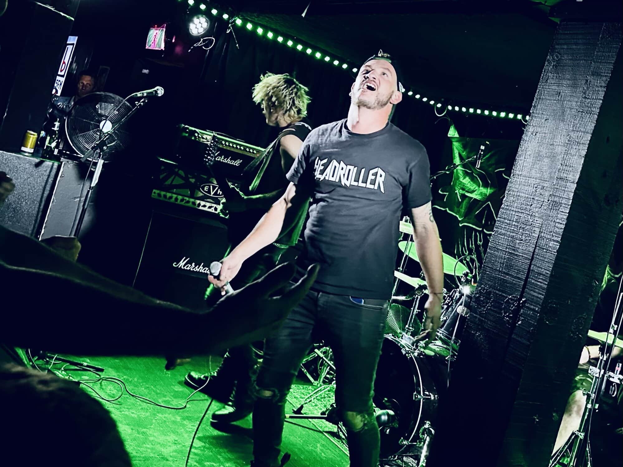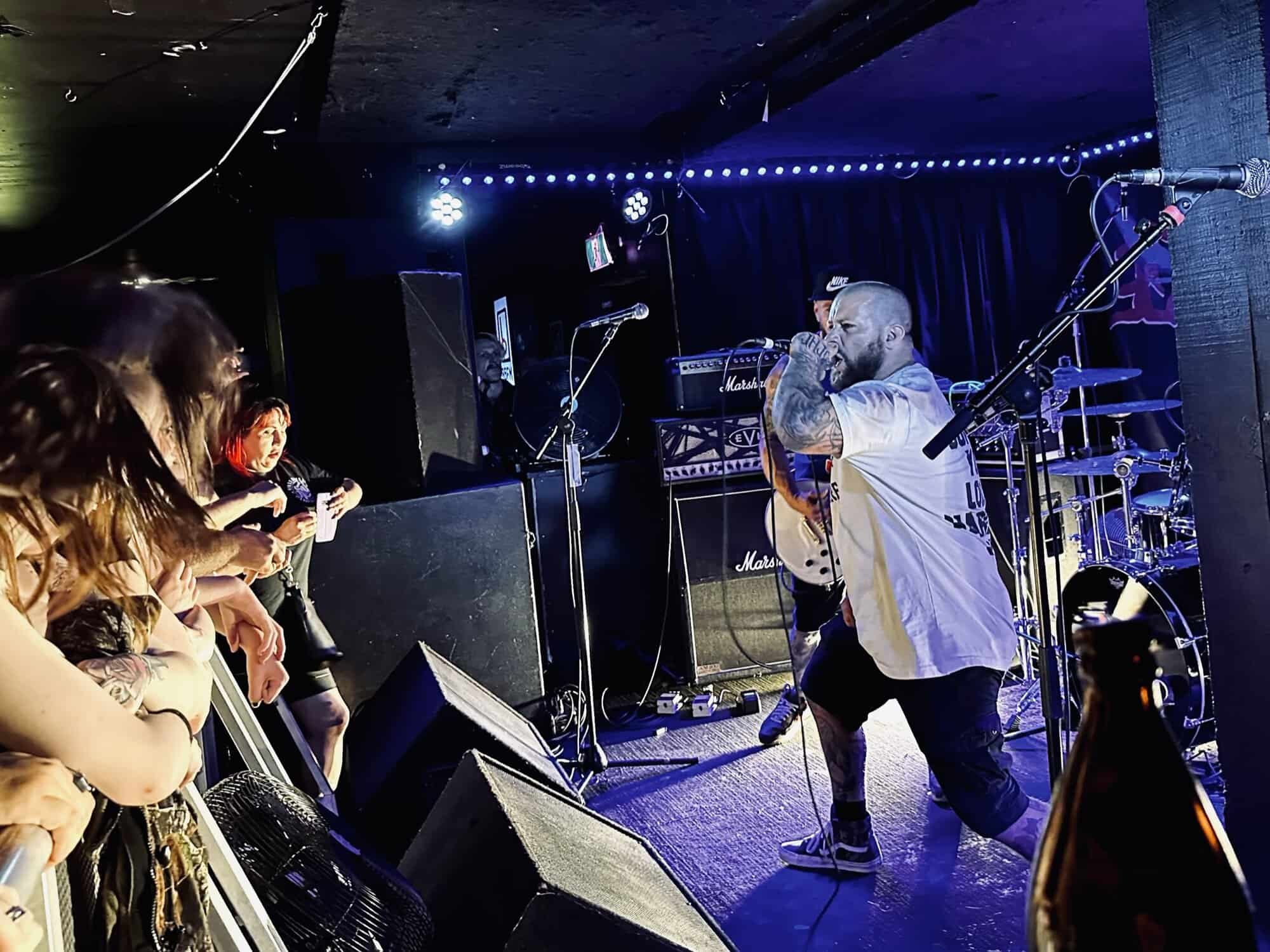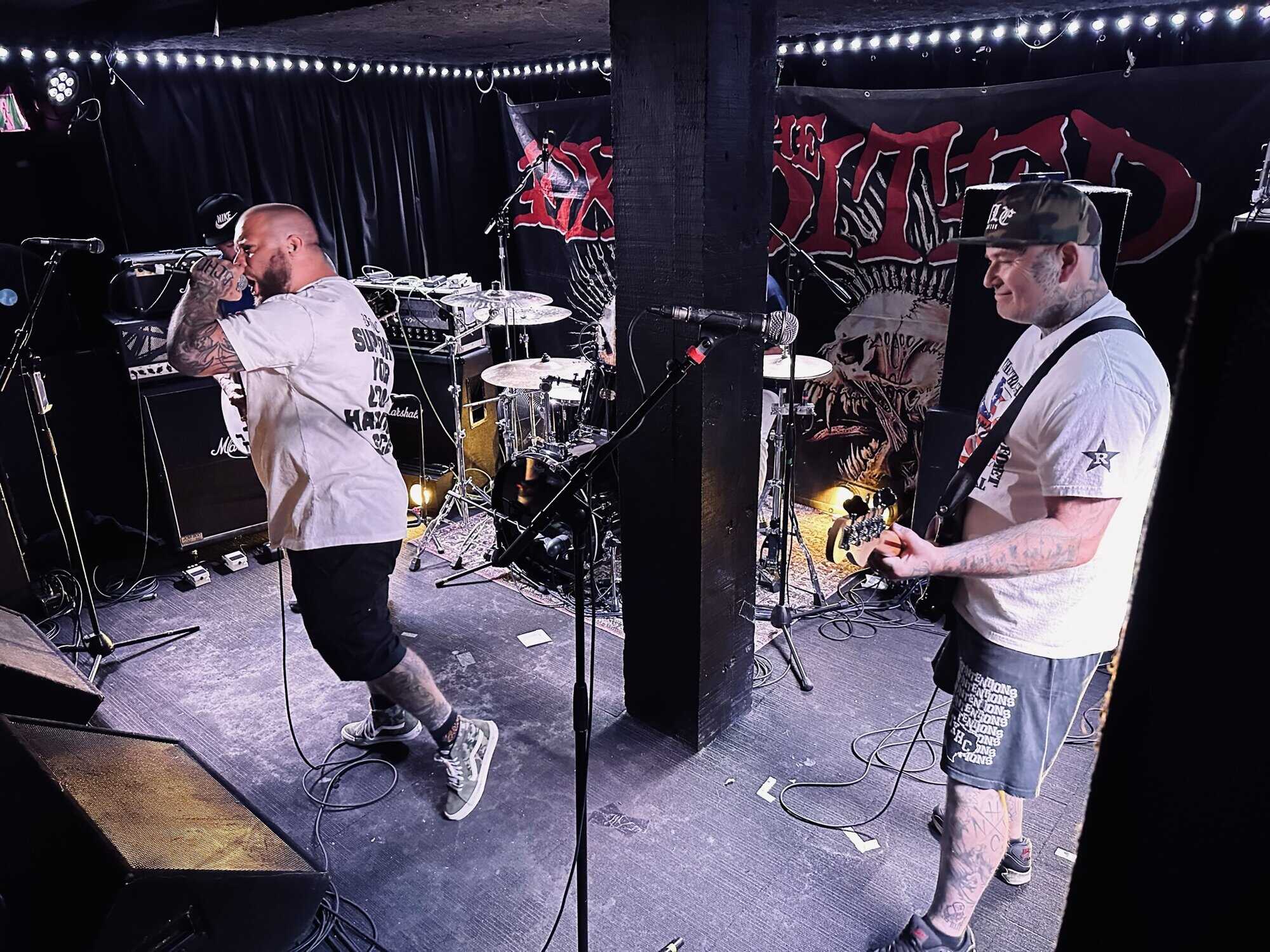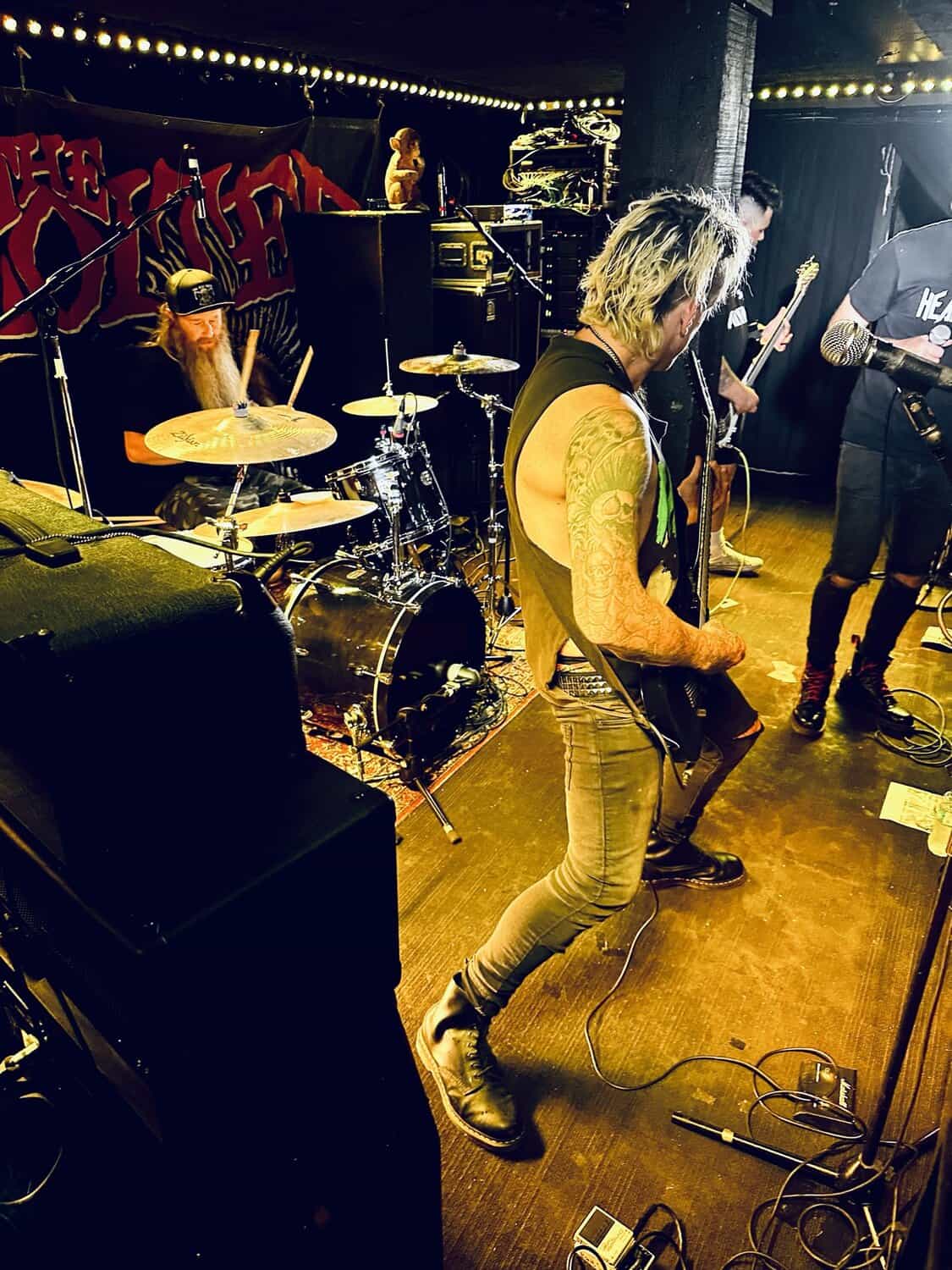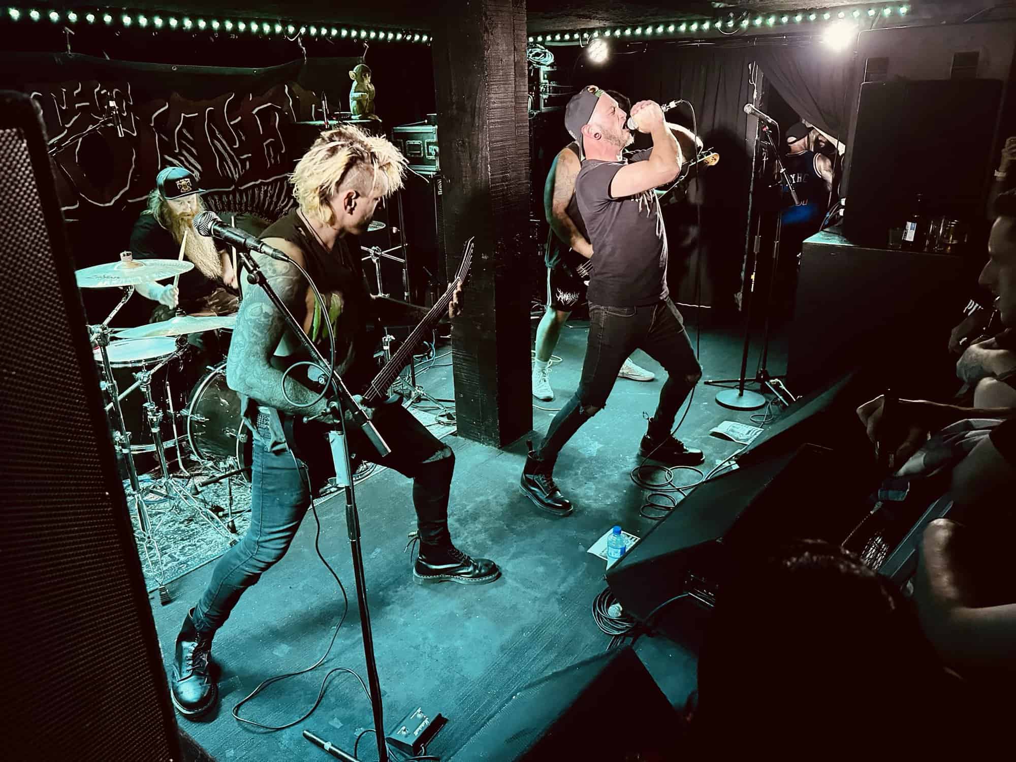previously opened for The Exploited on the 2020 NZ tour. Much more metal than D.O.P., the drawl(ing) vocals and unrelenting sound bed at times made me feel like I was bashing my head against a brick wall continuously. Very much focused around vocals and guitar, their skills are obvious, but the lack of harmonic contrast did create a feeling of being battered by a monolithic sledgehammer. Their faithful fans were vocal in their support, but with their drummer supporting a bigger beard than the sound guy, being much, much, much more metal than D.O.P……..they could’ve (should’ve) been opening for Behemoth up the road.