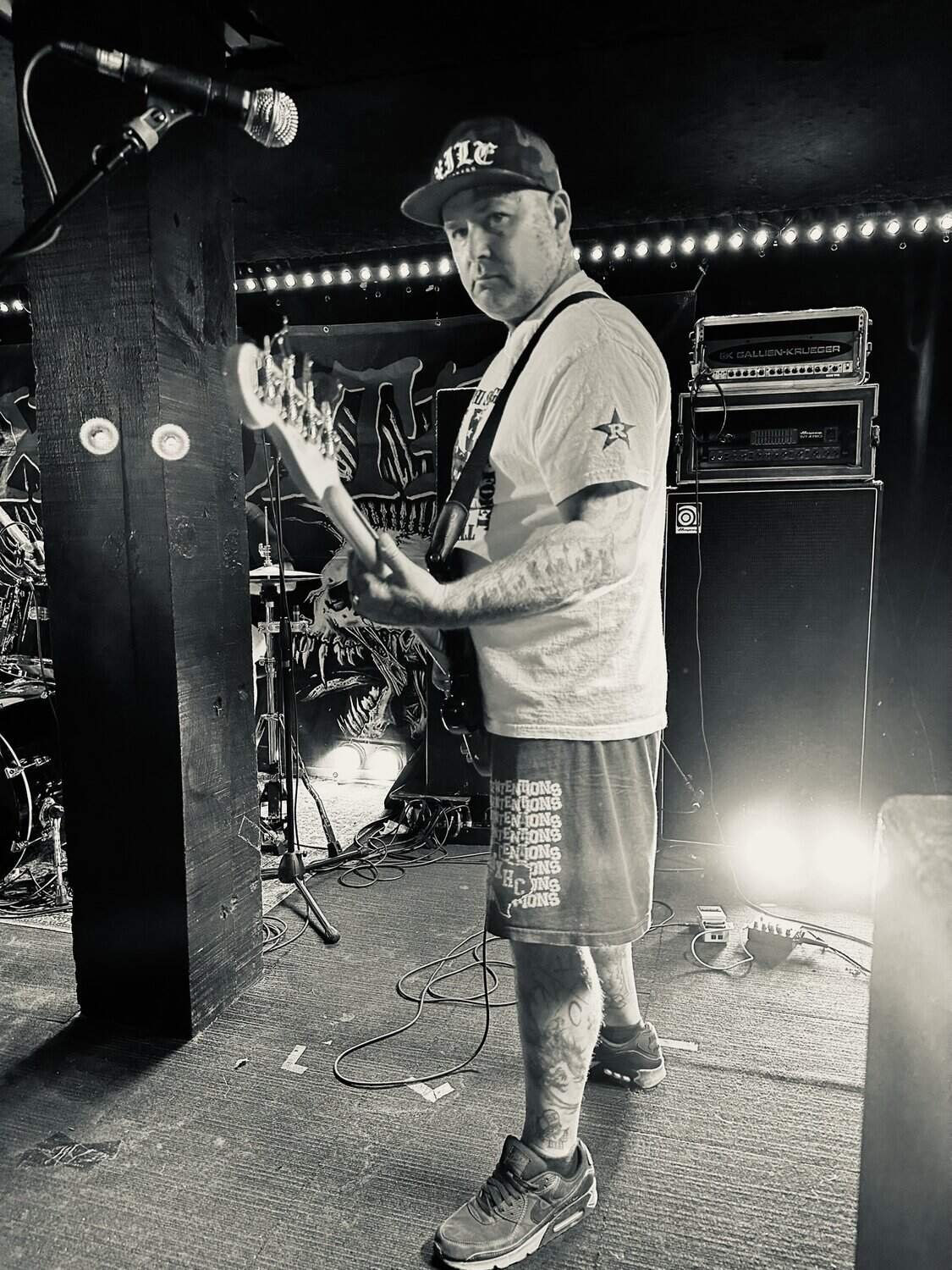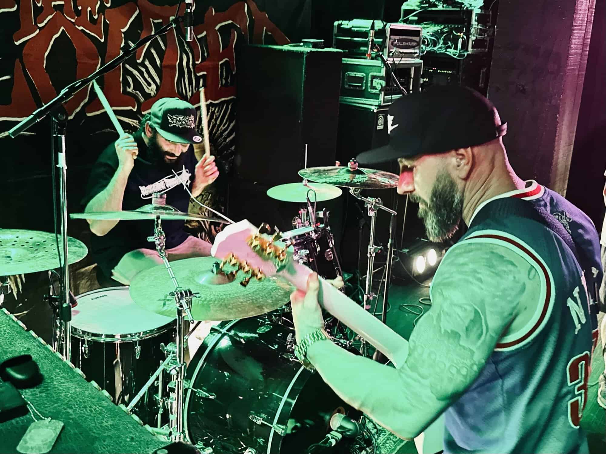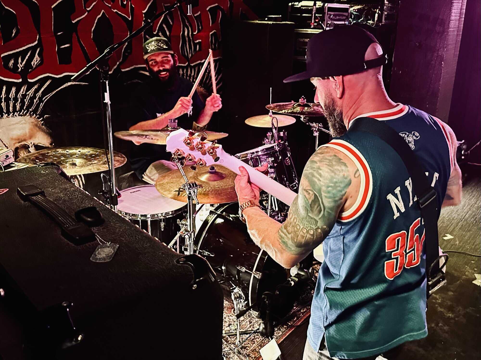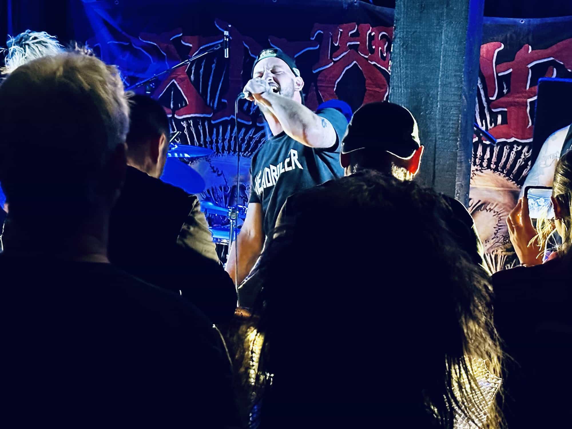 previously opened for The Exploited on the 2020 NZ tour. Much more metal than D.O.P., the drawl(ing) vocals and unrelenting sound bed at times made me feel like I was bashing my head against a brick wall continuously. Very much focused around vocals and guitar, their skills are obvious, but the lack of harmonic contrast did create a feeling of being battered by a monolithic sledgehammer. Their faithful fans were vocal in their support, but with their drummer supporting a bigger beard than the sound guy, being much, much, much more metal than D.O.P……..they could’ve (should’ve) been opening for Behemoth up the road.