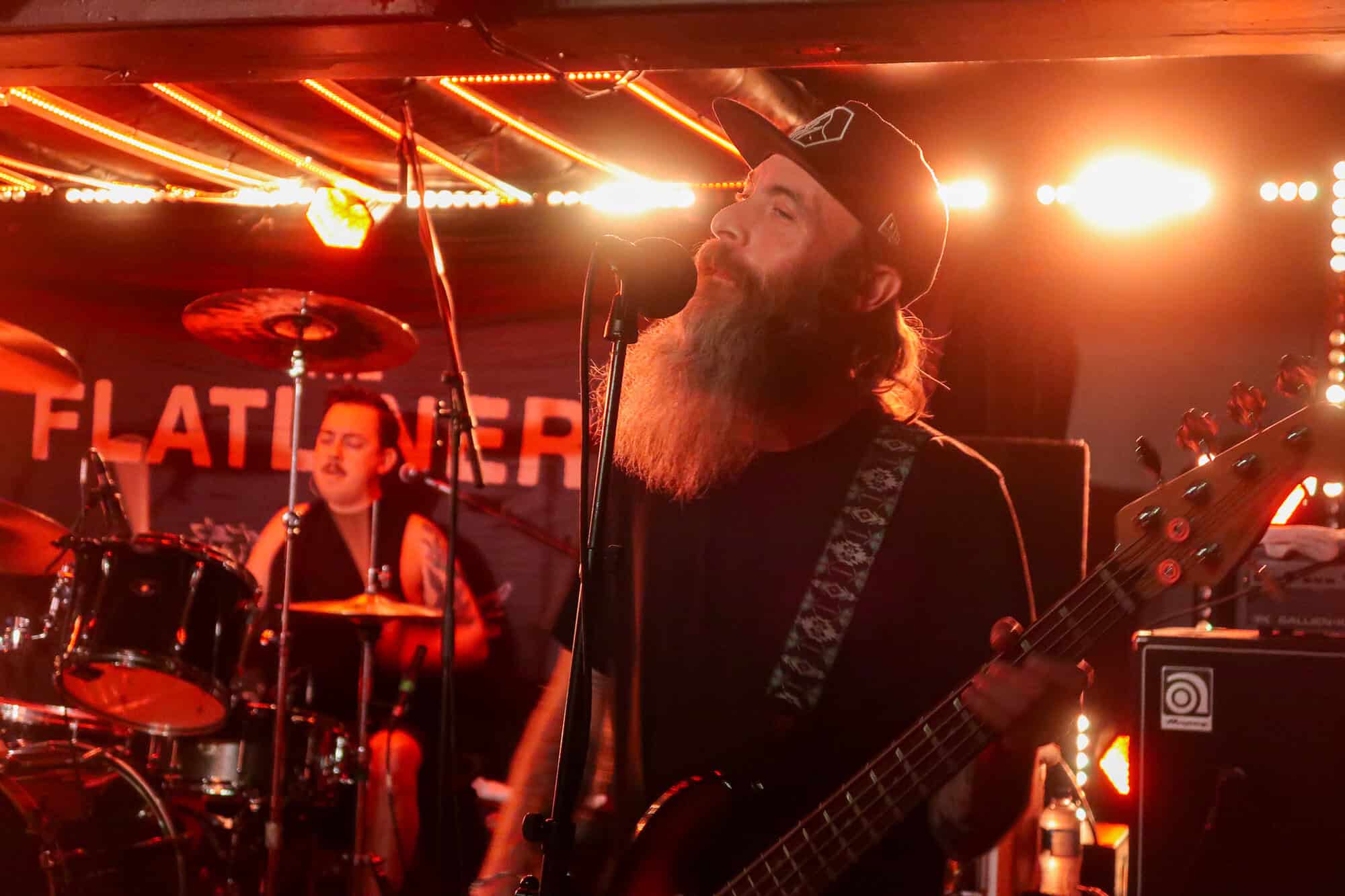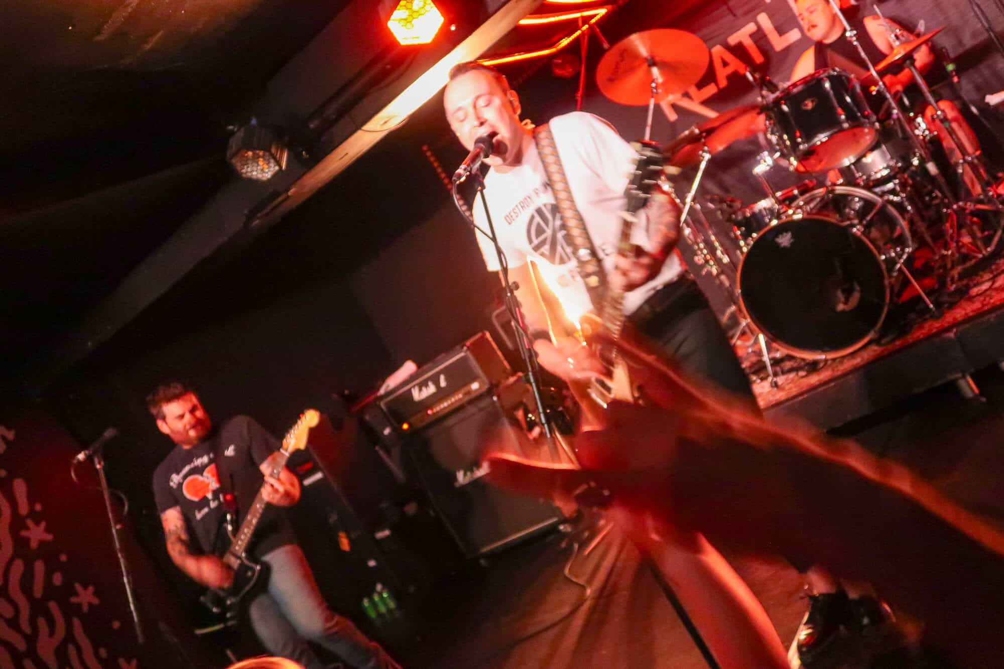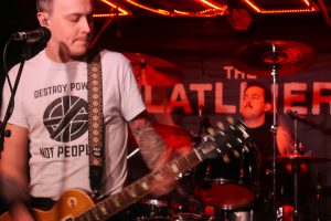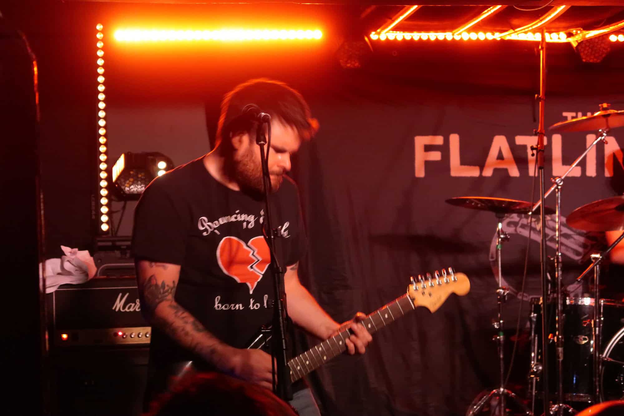 The energy level rises back up at 10:45…a late start for a Wednesday night…as the four Flatliners take the stage.