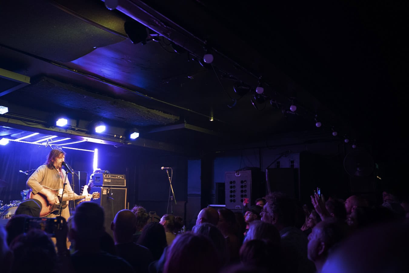 There was a buzz, and the crowd up front were reluctant to abandon prime real estate, with little aplomb, Evan Dando is onstage launching into Rockin’ Stroll. And then thundering through (the album) It’s A Shame About Ray with stern sprite, occasionally his vocals waver, but with a bassist and drummer delivering the rhythms tightly, and their soundtech managing the room’s vagaries with skills it sounds earthy. The album’s title track elicited much crowd sing-along as did Drug Buddy. Alison’s Starting To Happen got a right-royal-roofing as Dando switched into the the lyrics to Bodies (Sex Pistols) but throughout the album he was solely focused on his music, not a word was uttered, the audience merely receptors (of punk rock show)